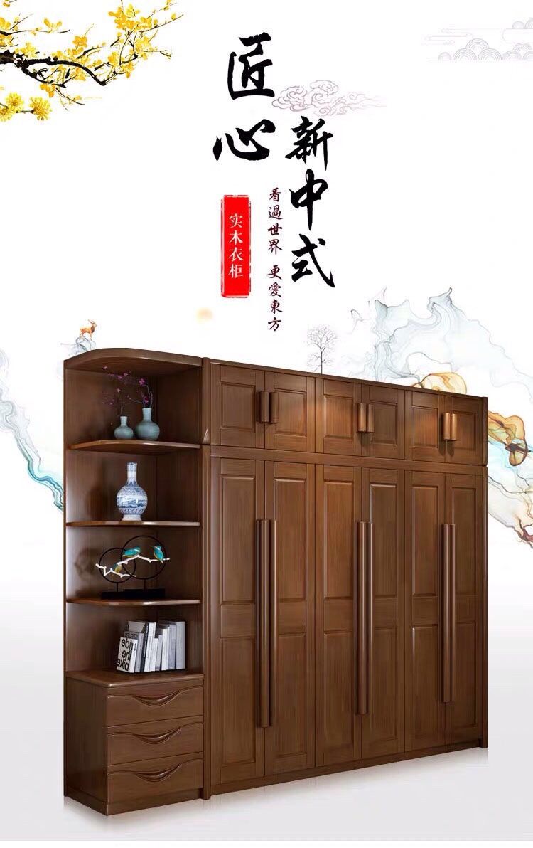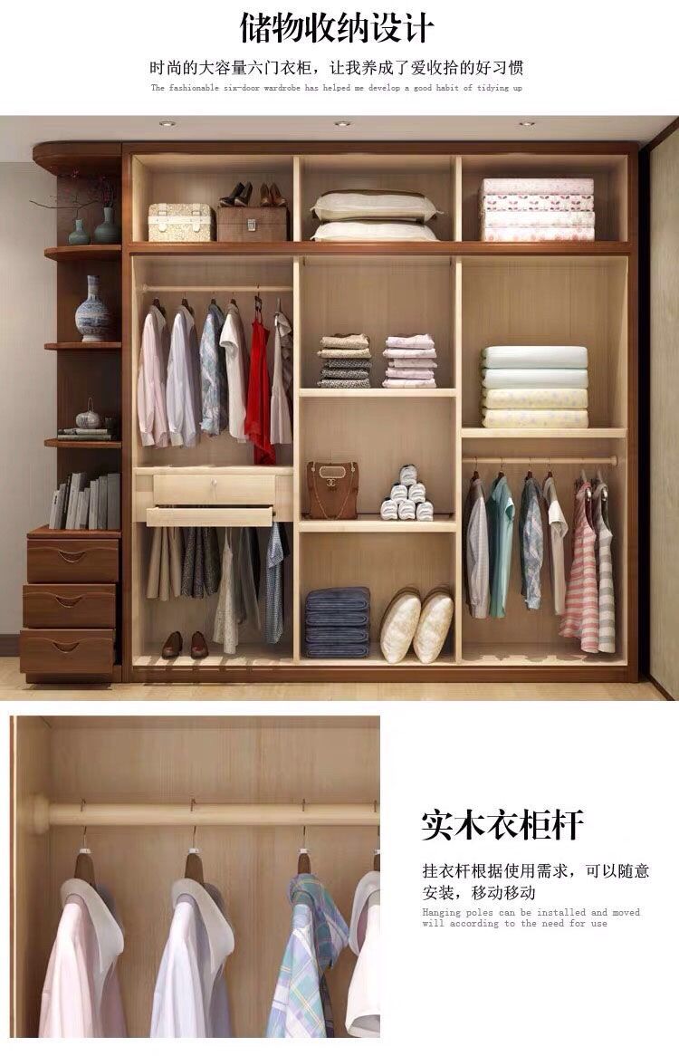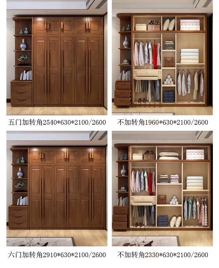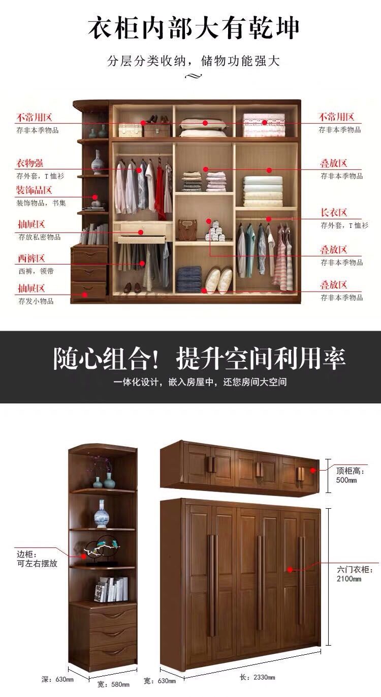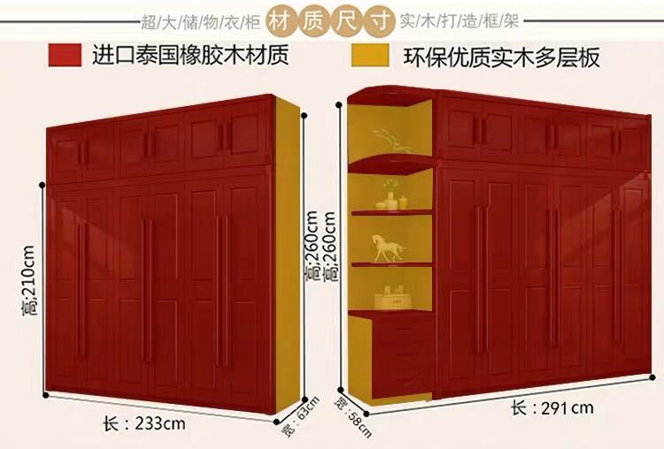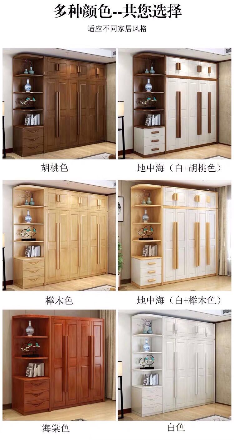 中式全实木衣柜简约现代3456组装橡胶木大衣橱经济型组装卧室