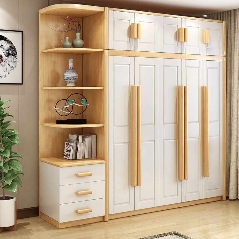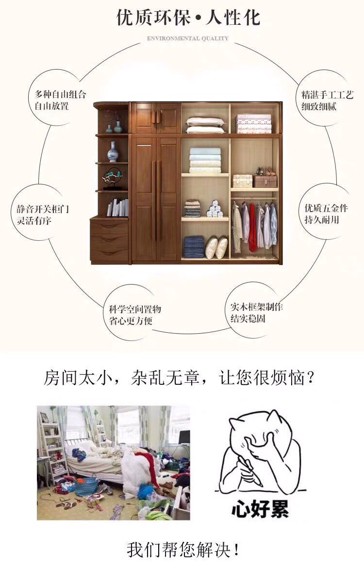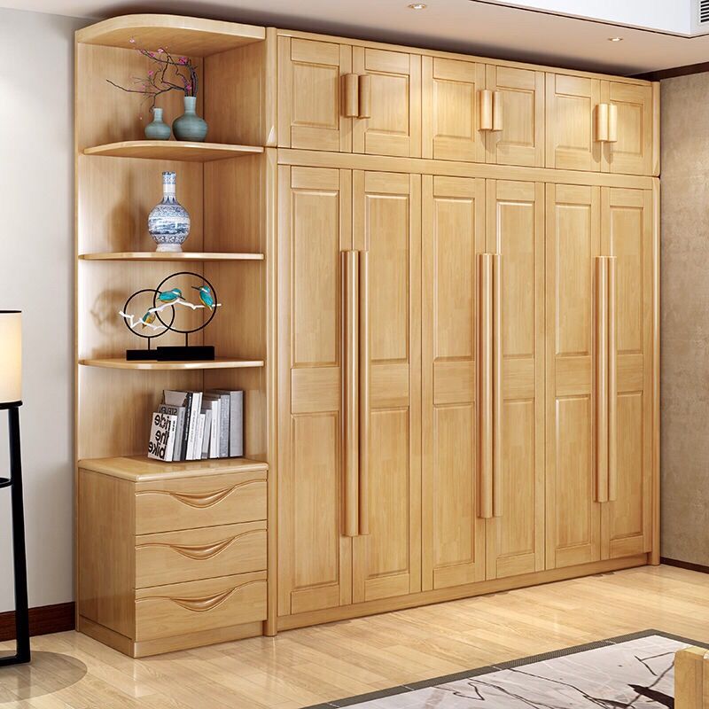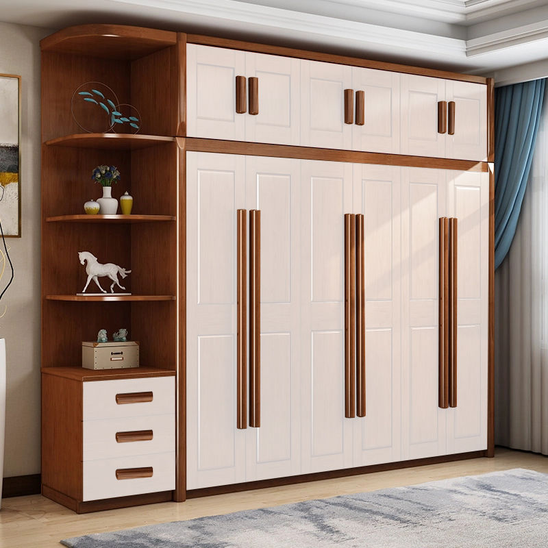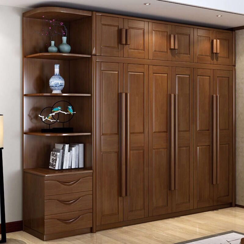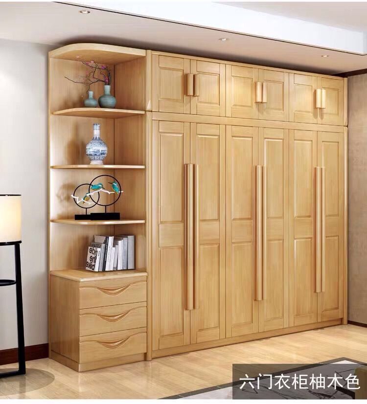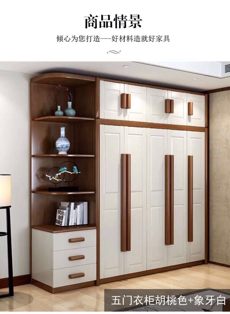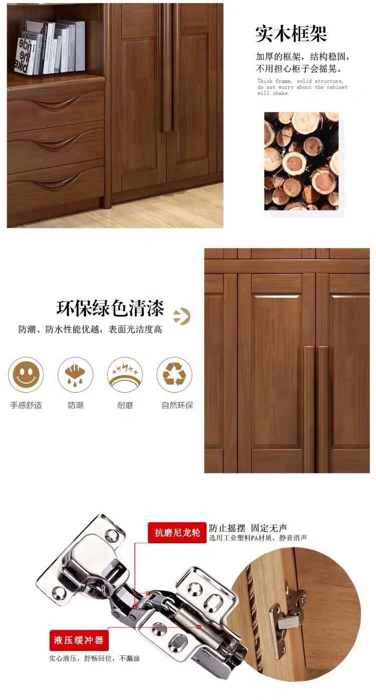 中式全实木衣柜简约现代3456组装橡胶木大衣橱经济型组装卧室