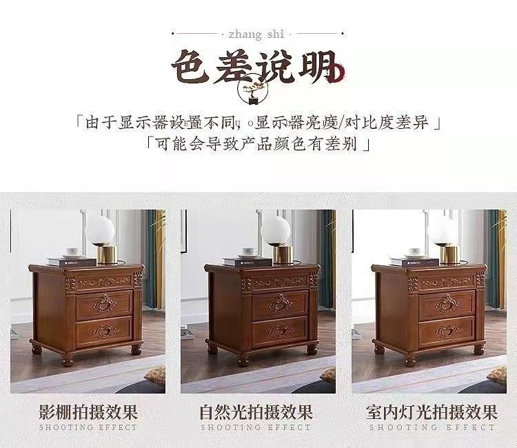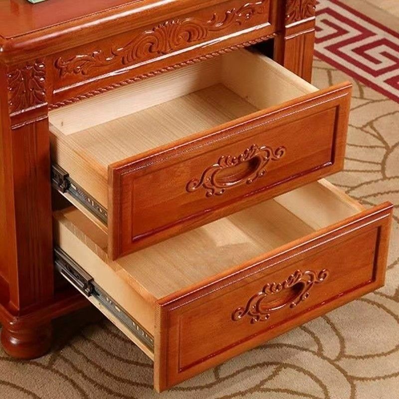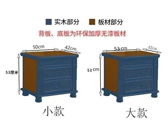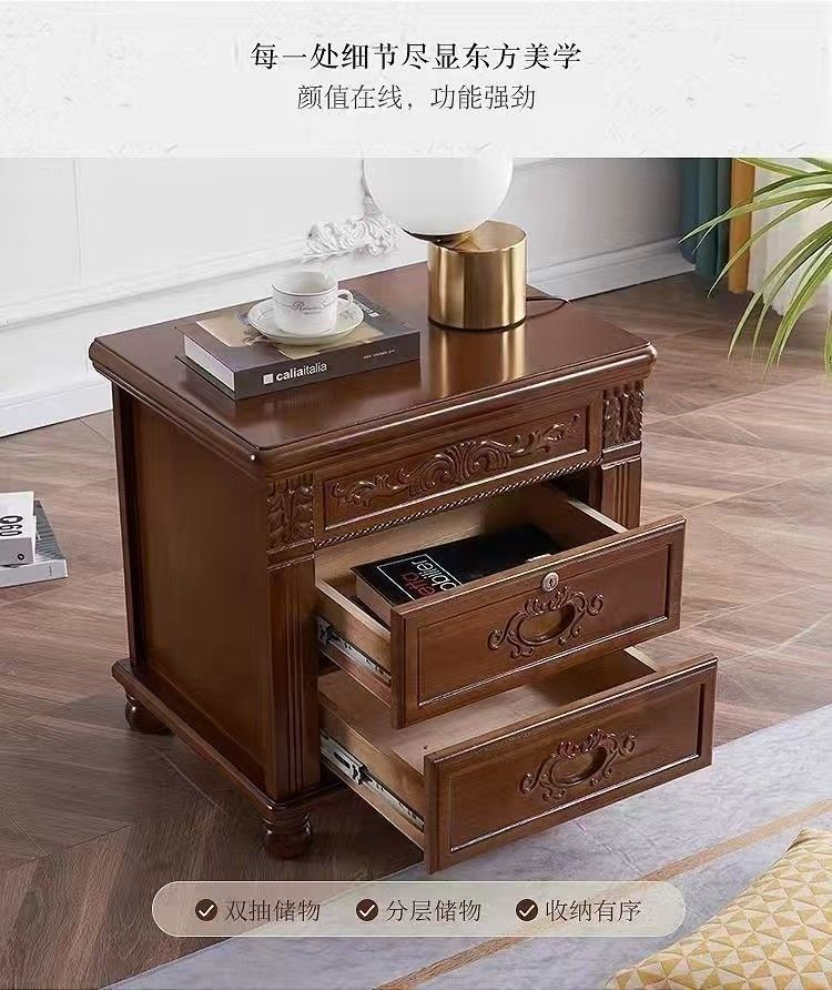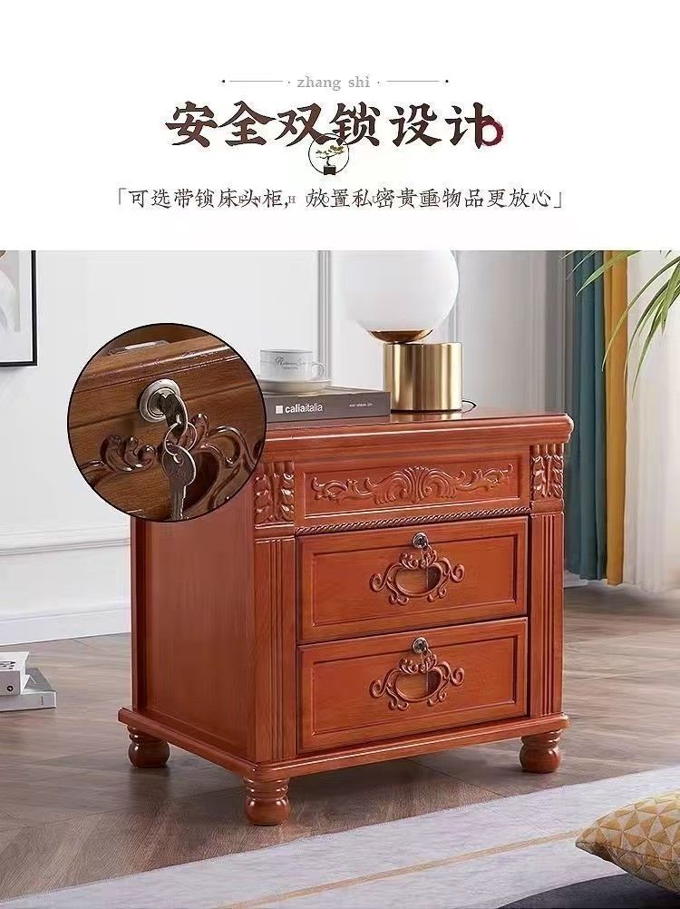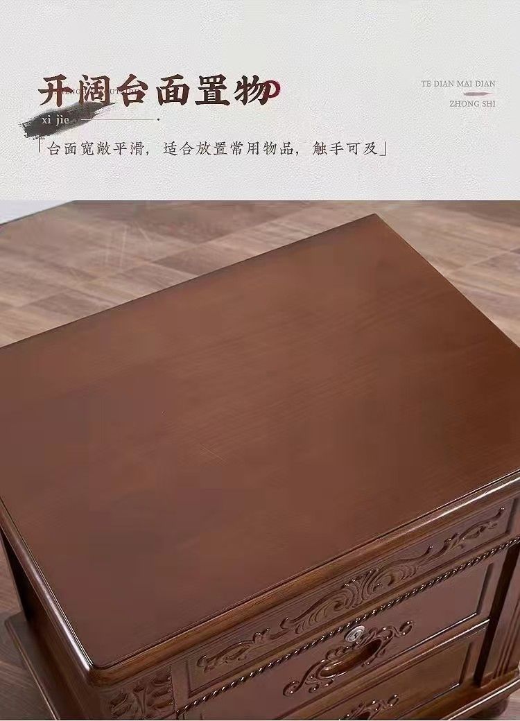 中式復古整裝帶鎖雕花實木新款牀頭櫃簡約臥室牀邊儲物櫃家用收納