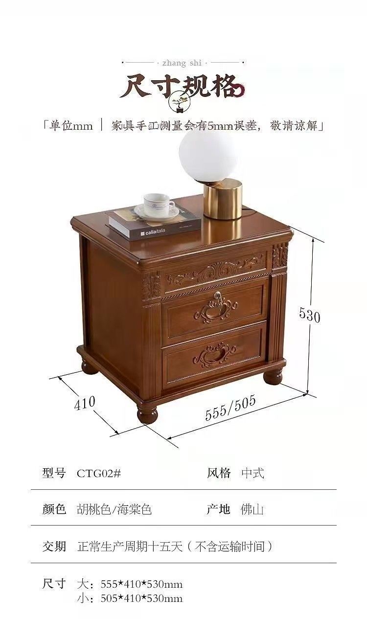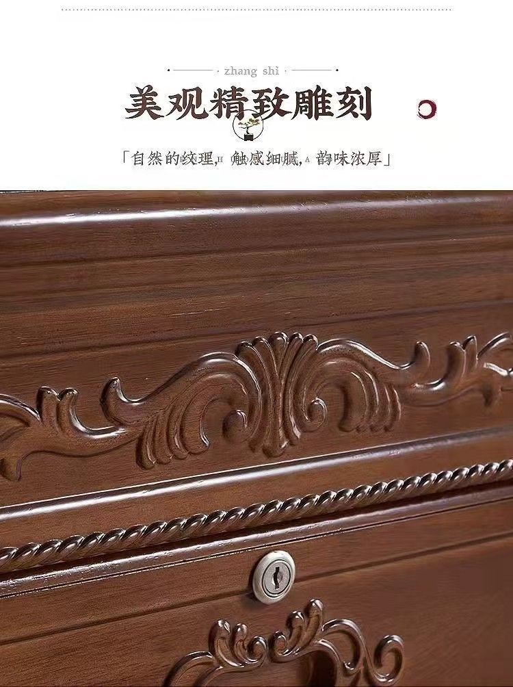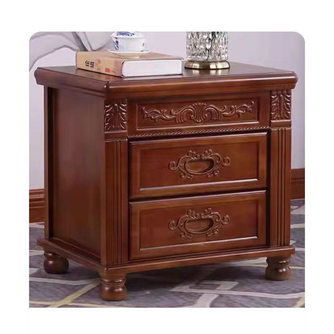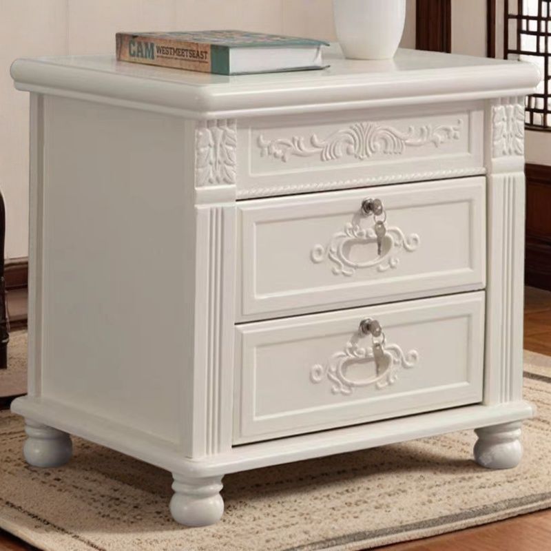 中式復古整裝帶鎖雕花實木新款牀頭櫃簡約臥室牀邊儲物櫃家用收納