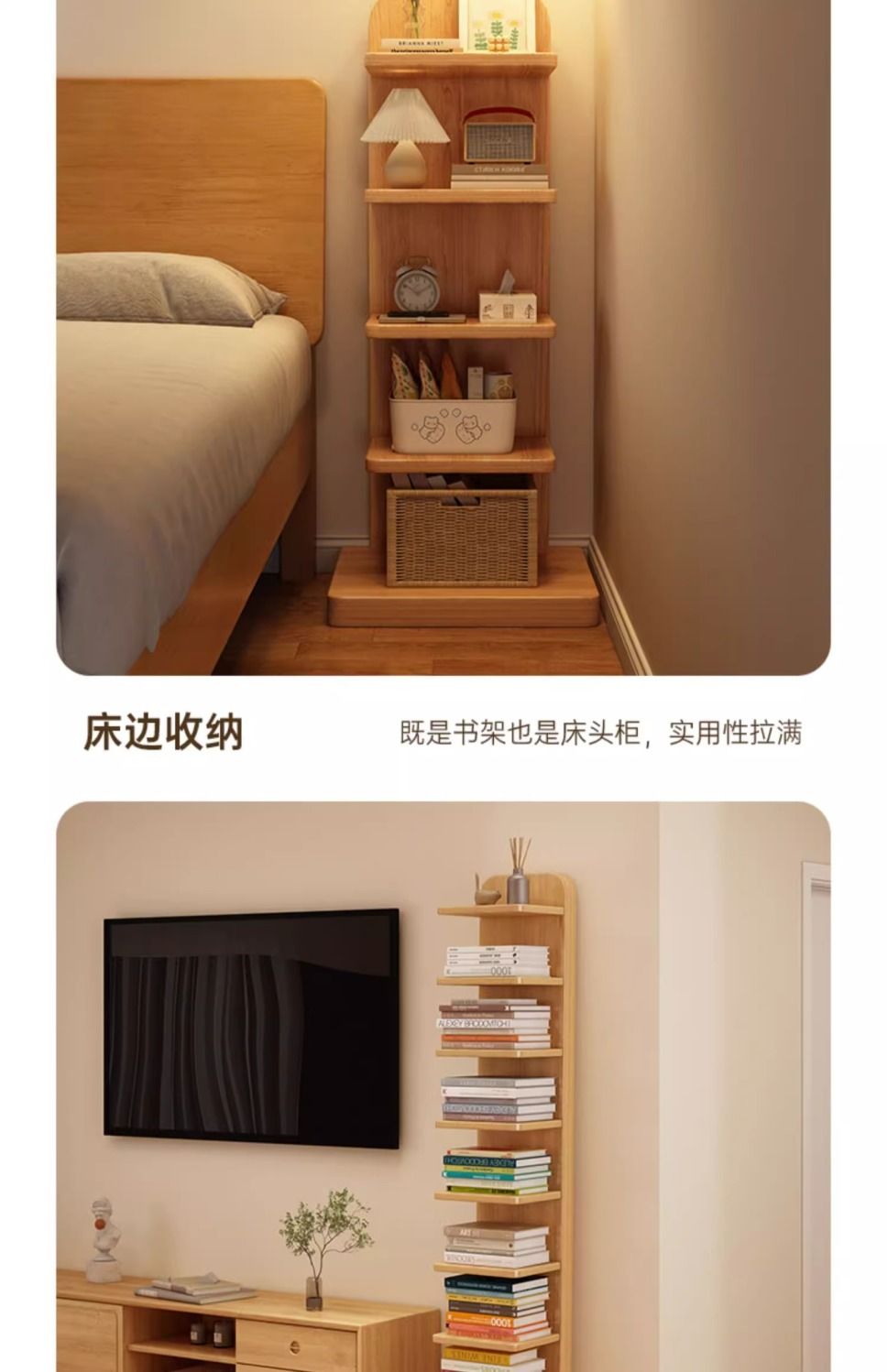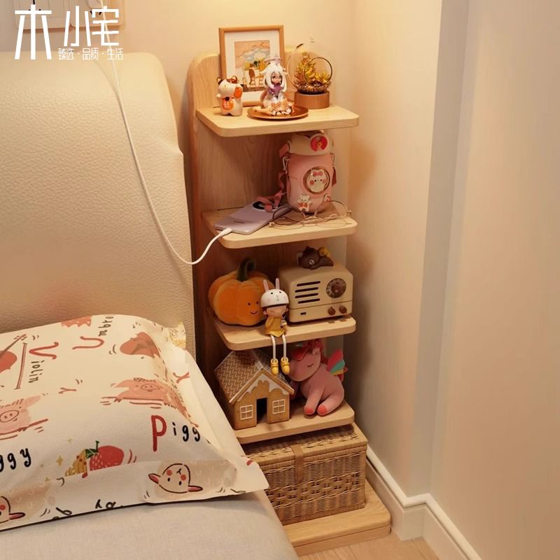 全實木牀頭櫃小型多層書架收納臥室牀邊極窄夾縫小櫃子簡易置物架