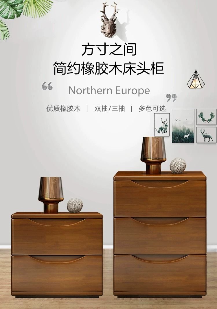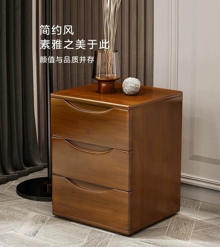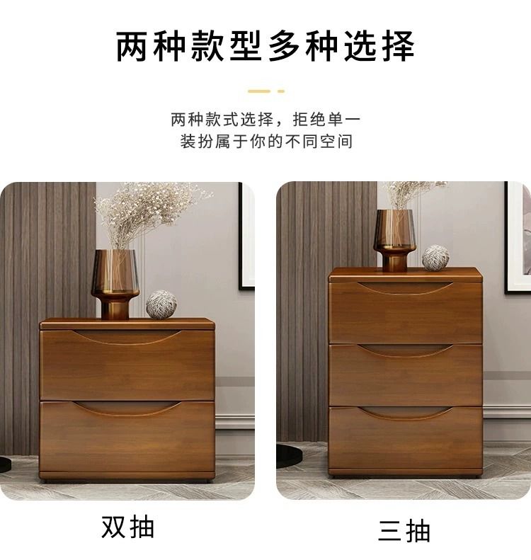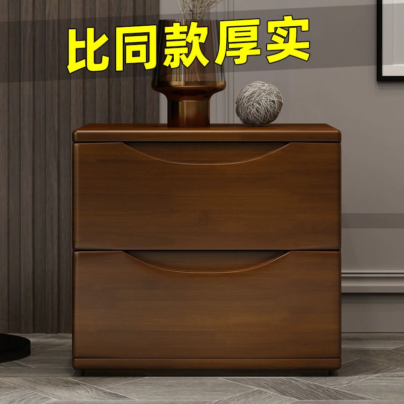 全實木牀頭櫃簡約現代胡桃色整裝收納儲物迷你北歐牀邊兩三抽矮櫃