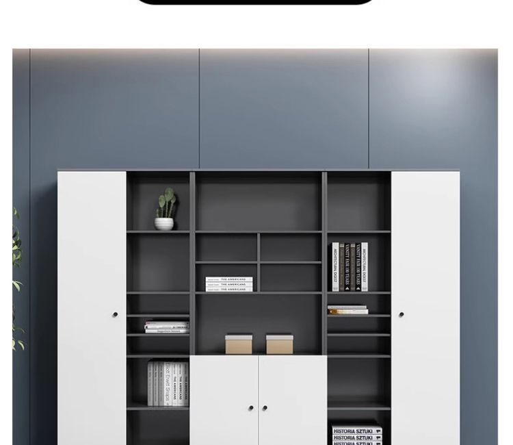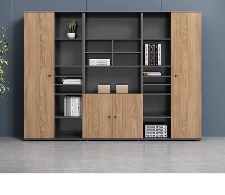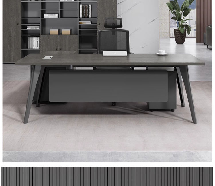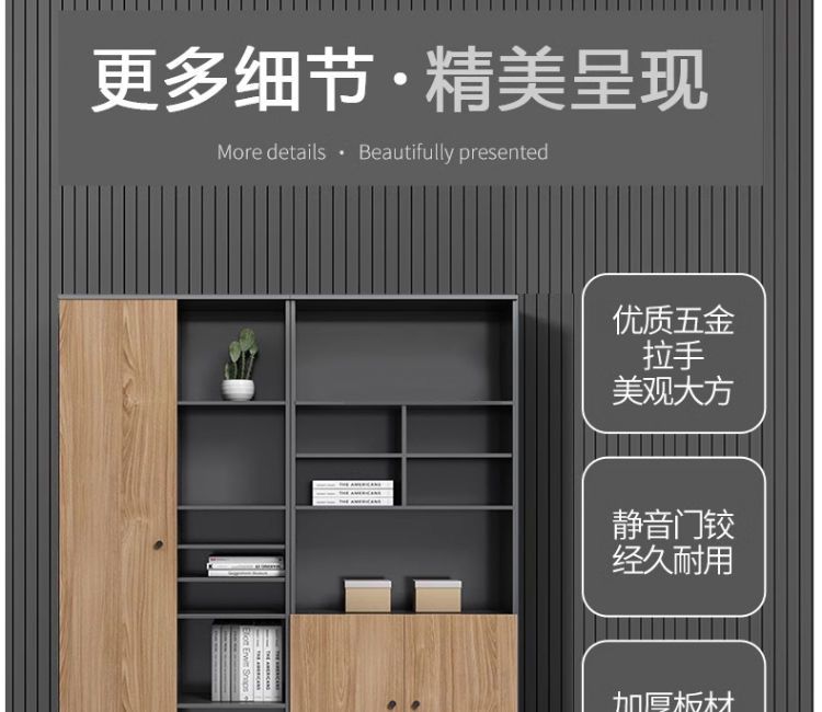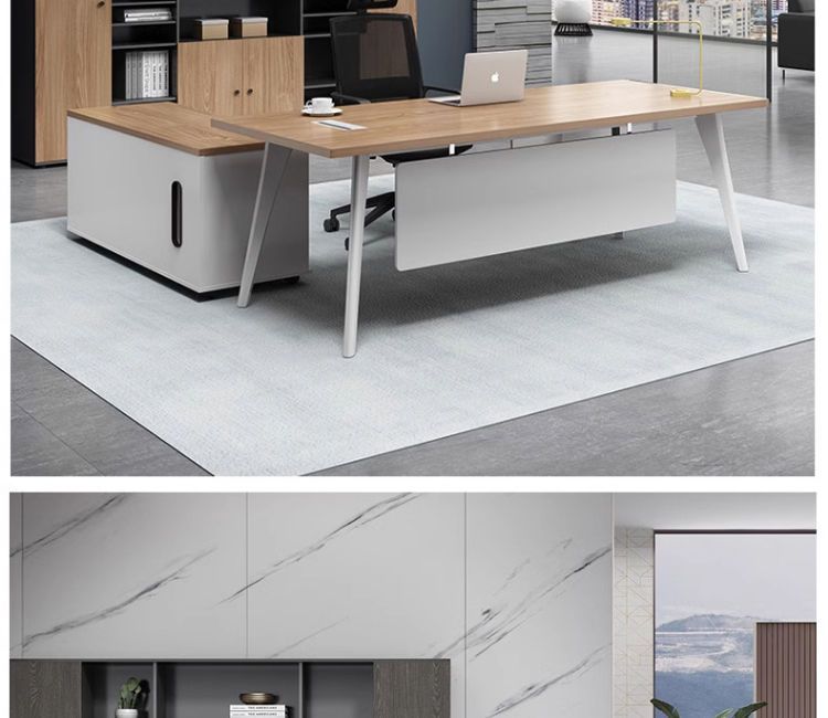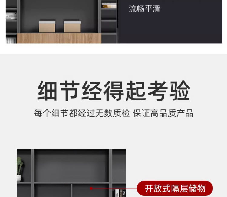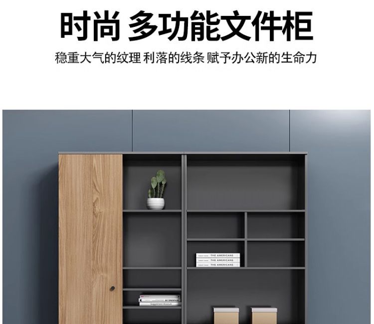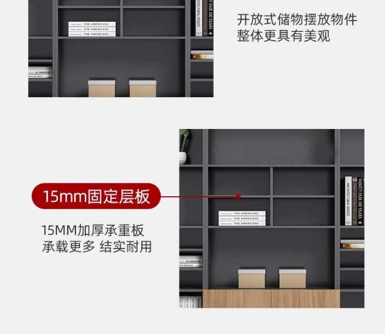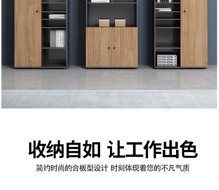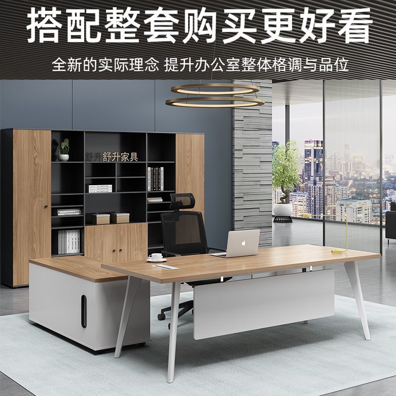 办公室老板柜办公桌一体新中式现代可伸缩书柜一体靠墙储物简约