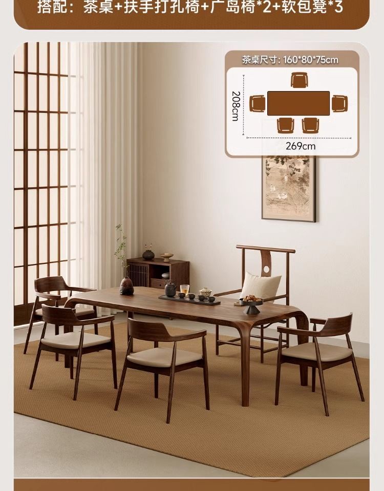南美胡桃木榫卯全实木新中式茶桌2025新款高端新型茶台办公室接待
