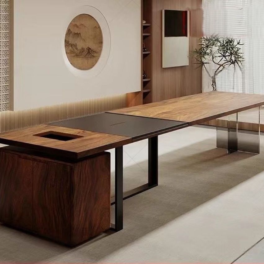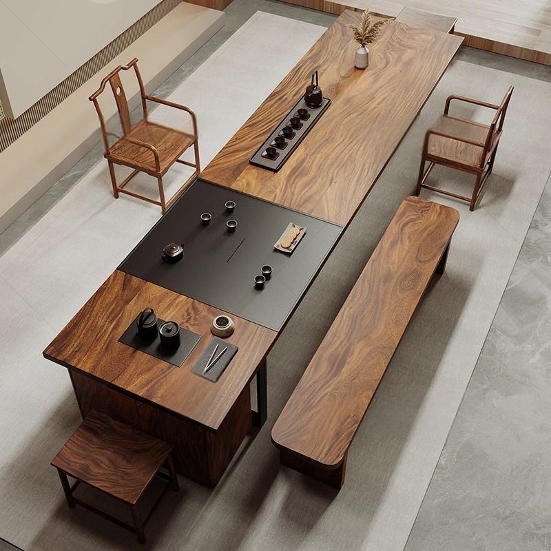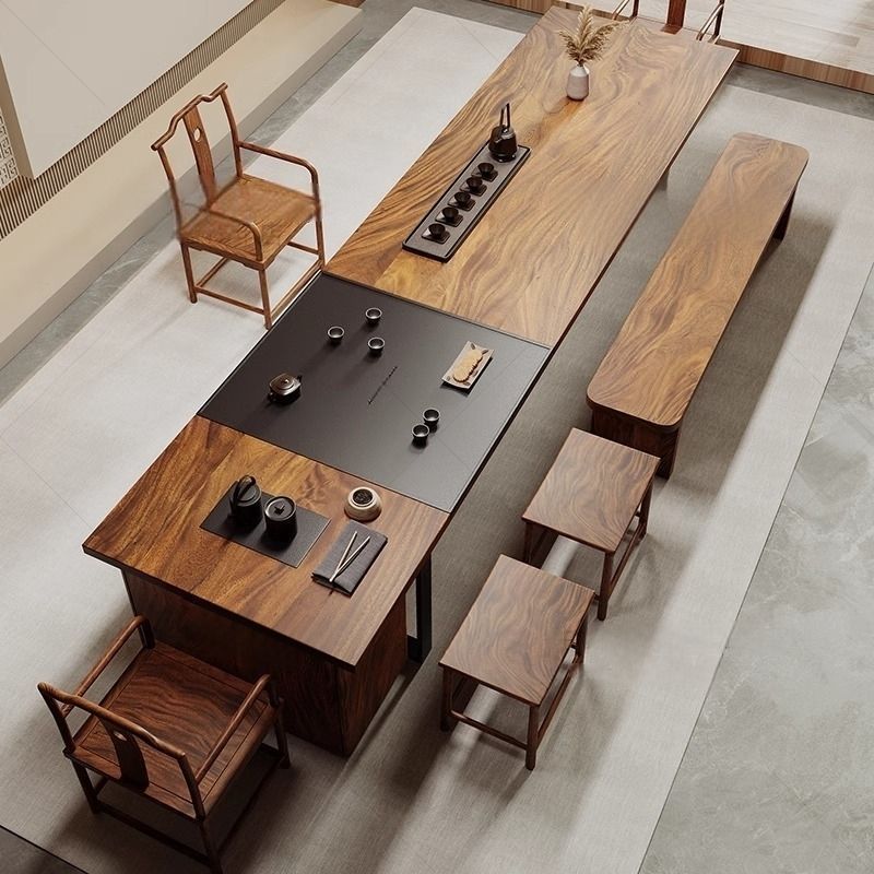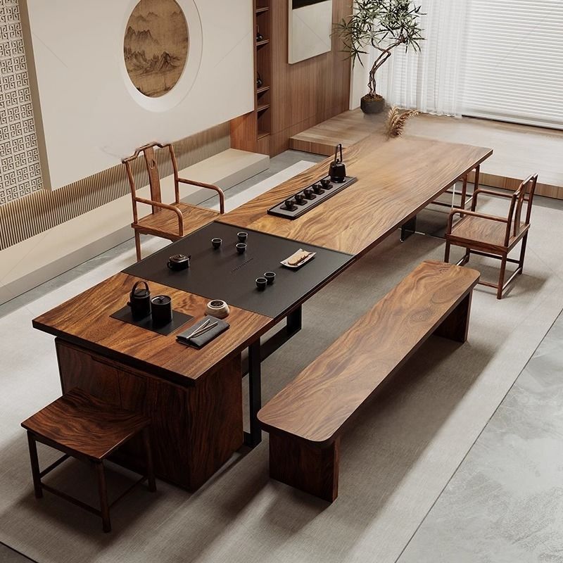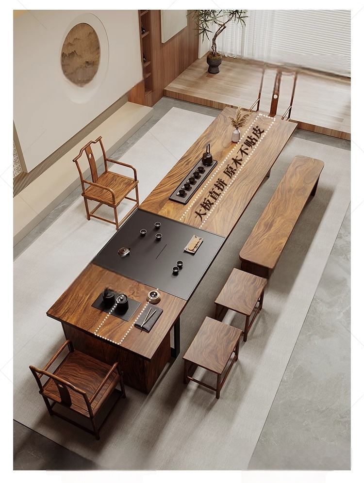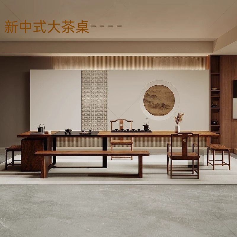 南美胡桃木茶桌新中式豪华实木茶台一整套黑胡桃木意式轻奢茶桌椅