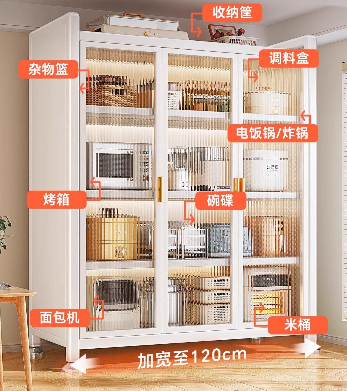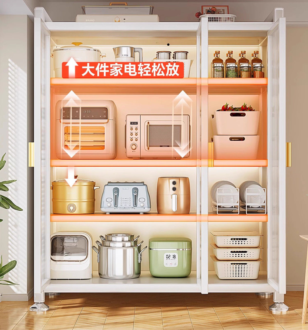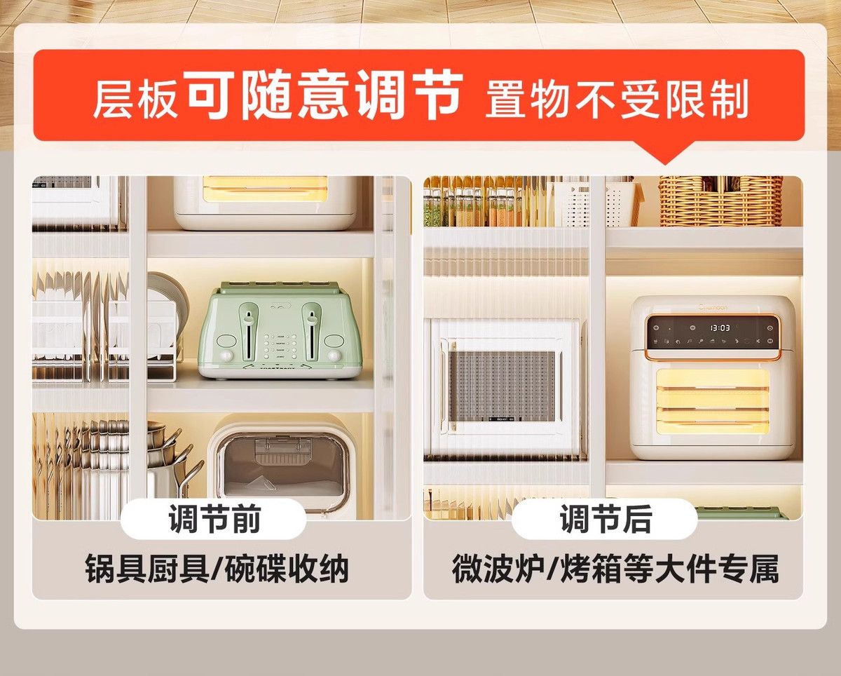 厨房置物架阳台落地多层微波炉锅具收纳家用防尘橱柜多功能储物柜