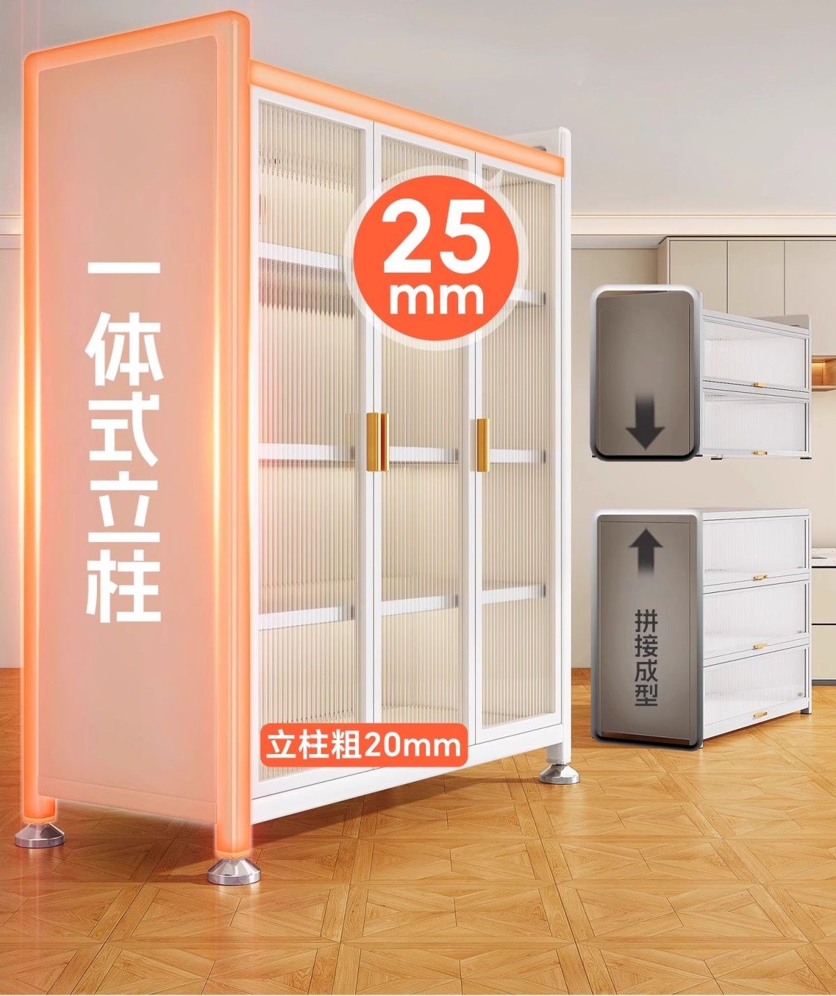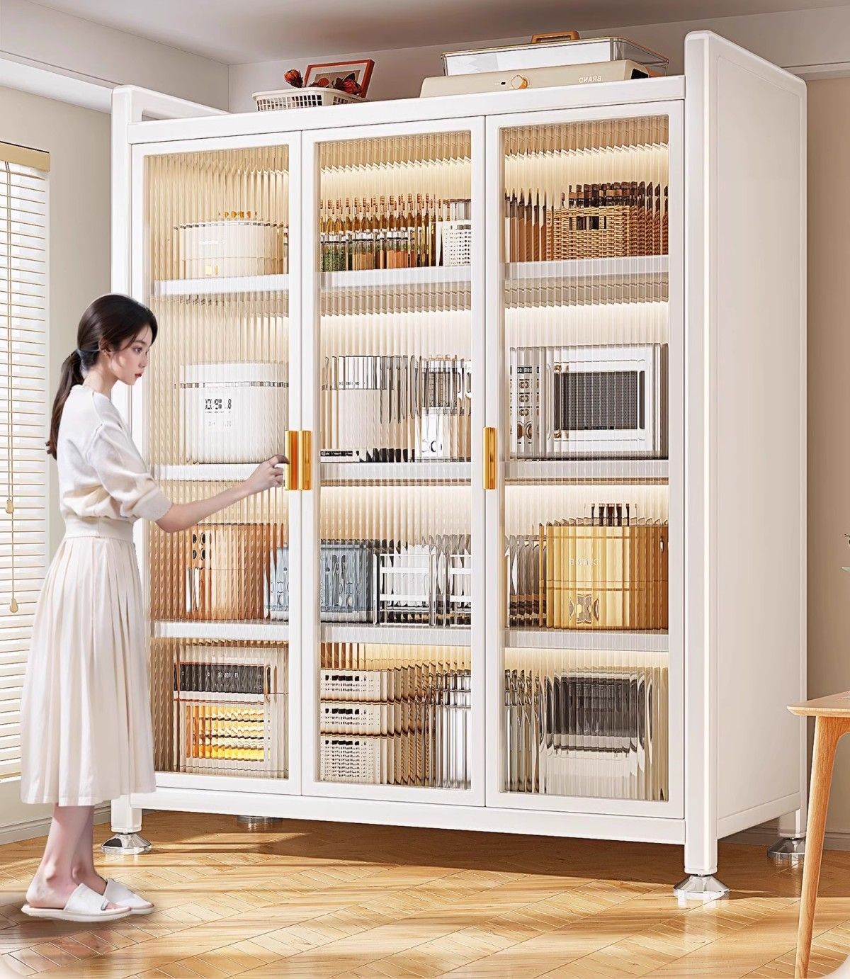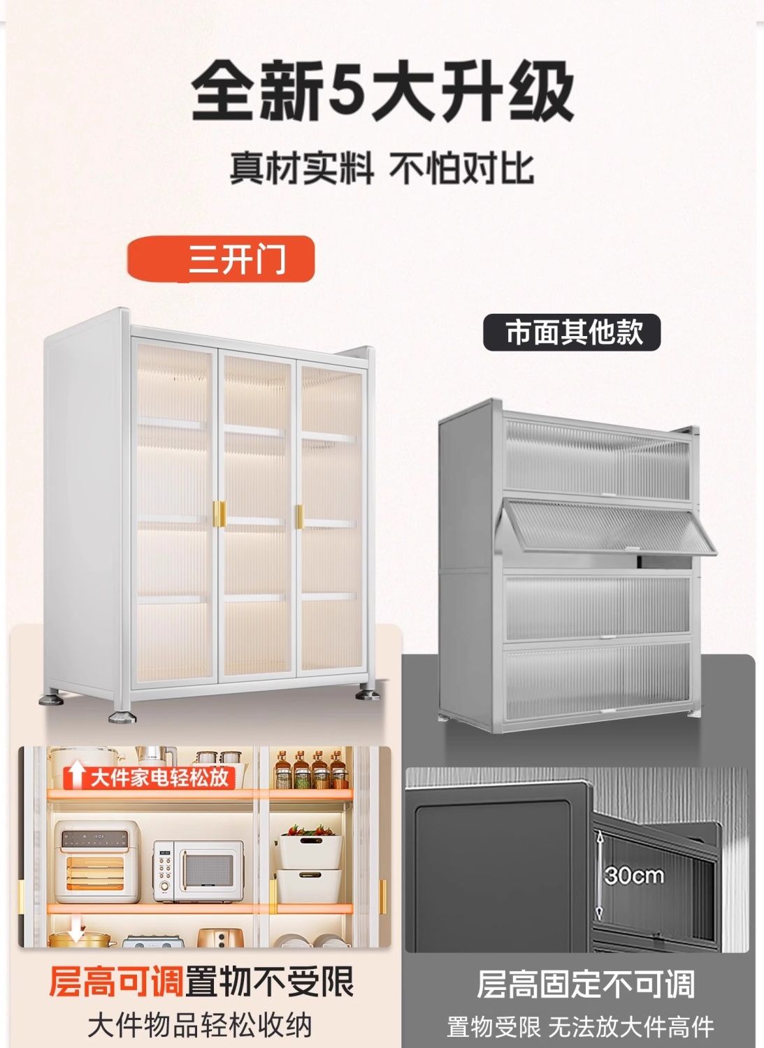 厨房置物架阳台落地多层微波炉锅具收纳家用防尘橱柜多功能储物柜