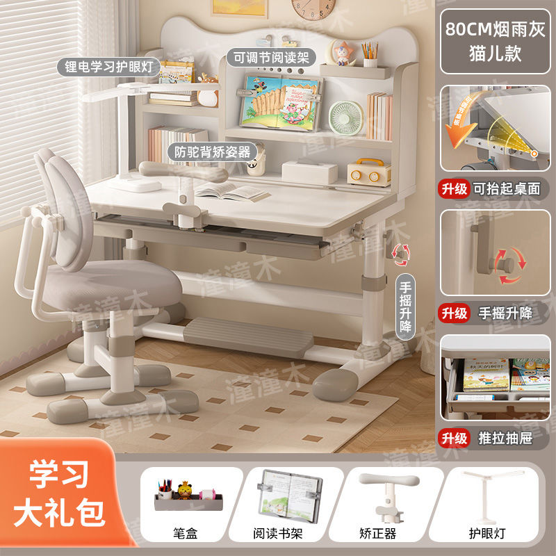 学生家用电脑桌简易书桌一体书柜组合简约现代卧室学习写字桌套装