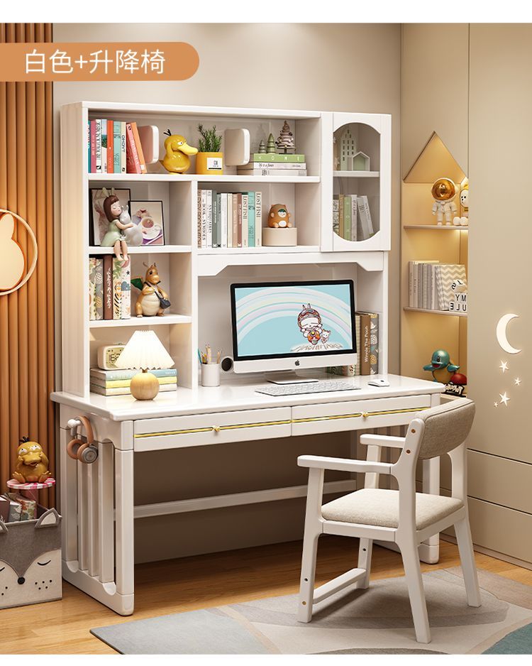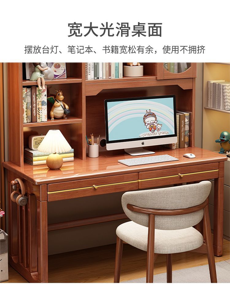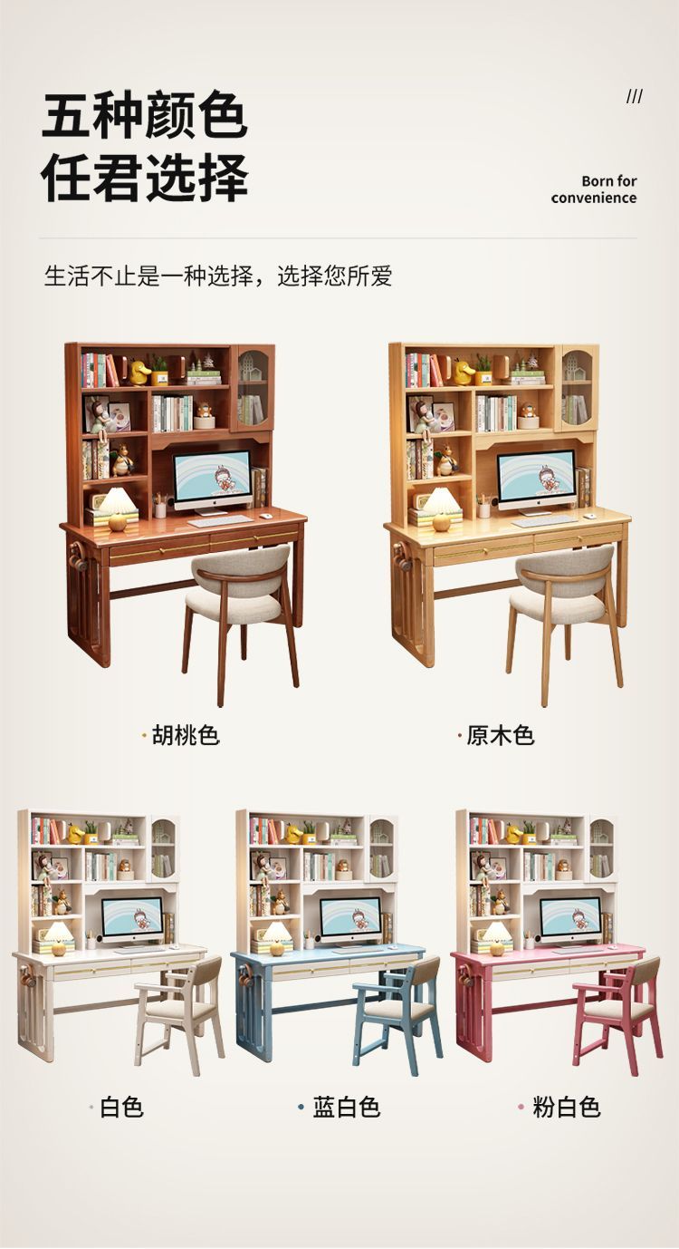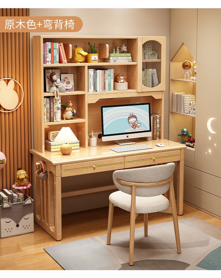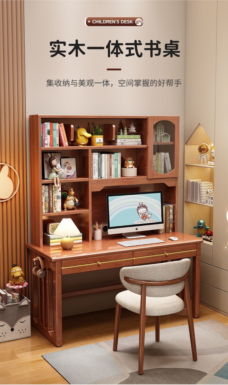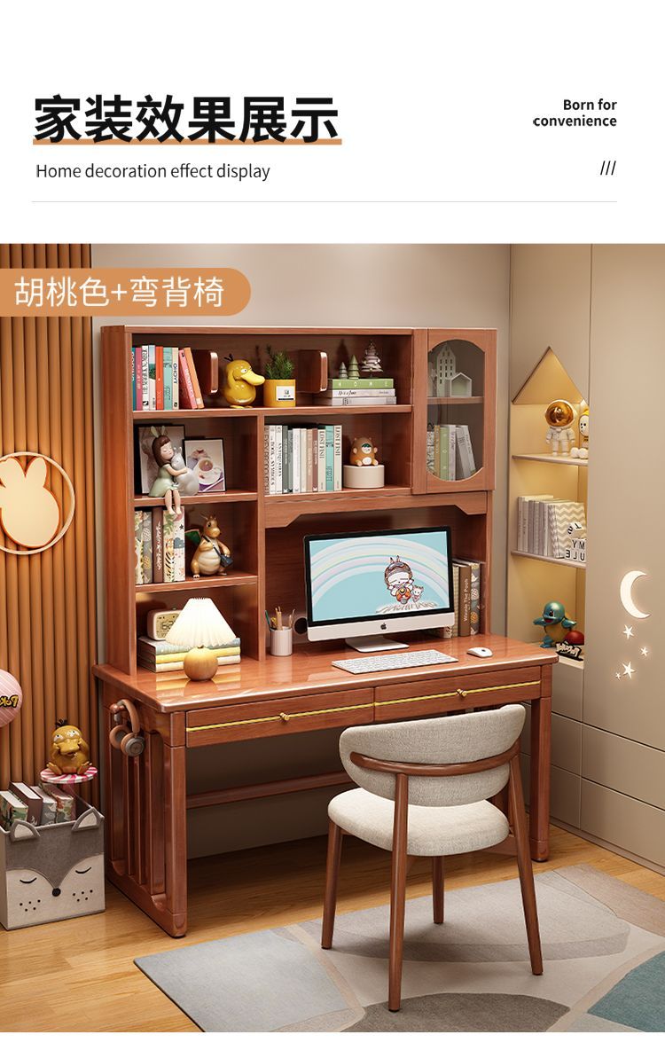 实木书桌家用书柜组合一体写字桌书房卧室轻奢电脑桌学生学习桌