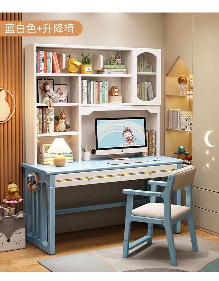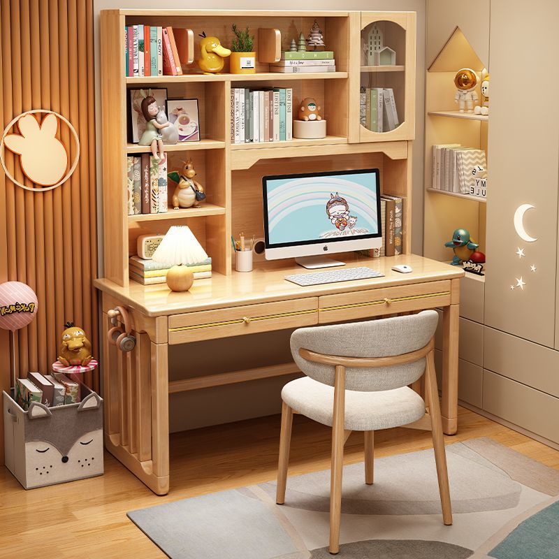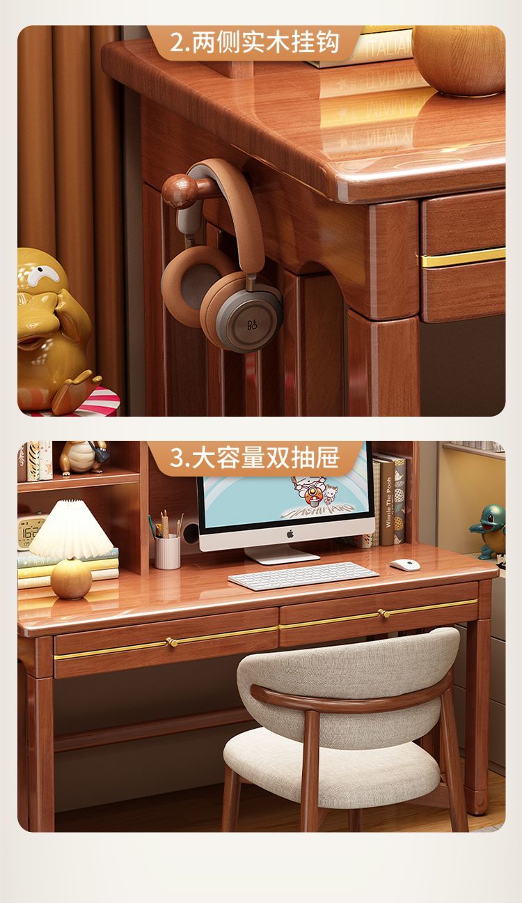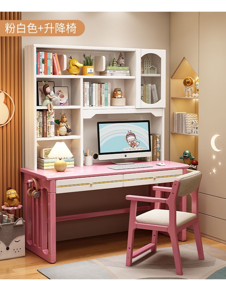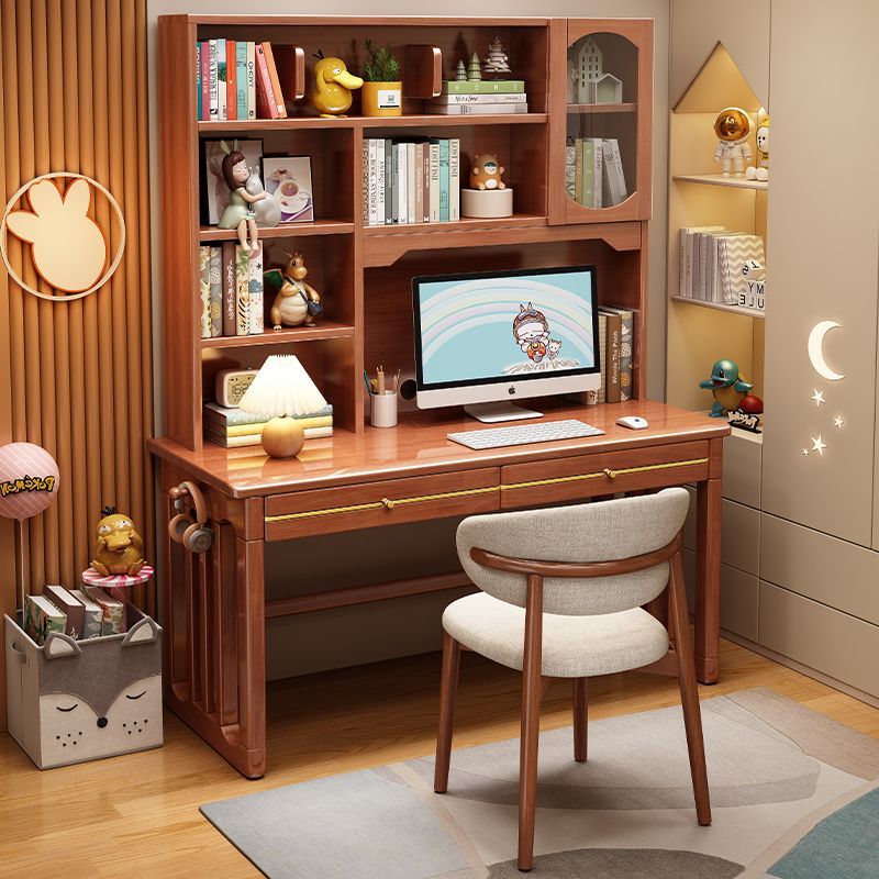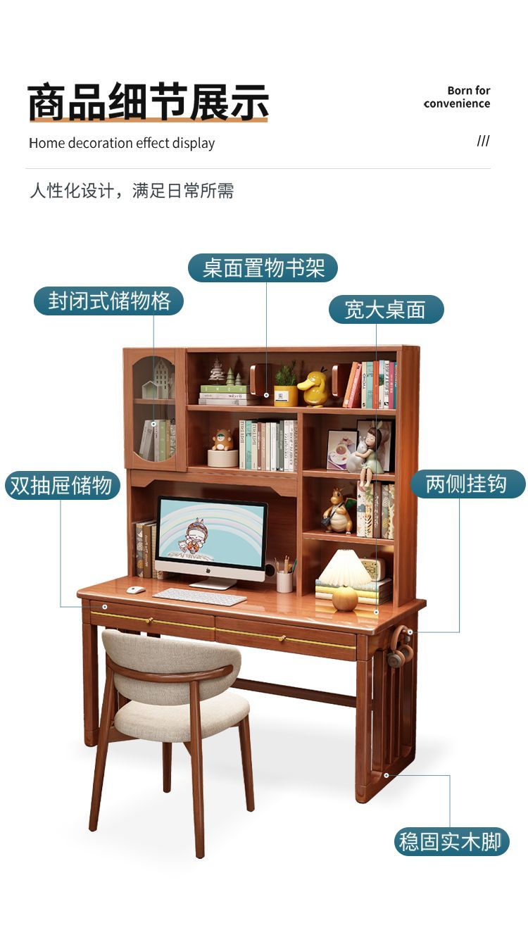 实木书桌家用书柜组合一体写字桌书房卧室轻奢电脑桌学生学习桌