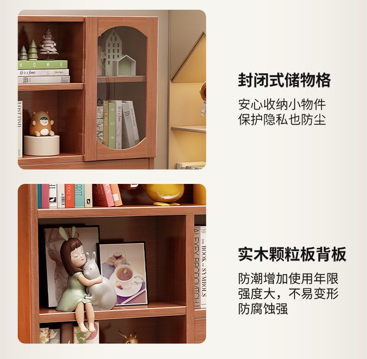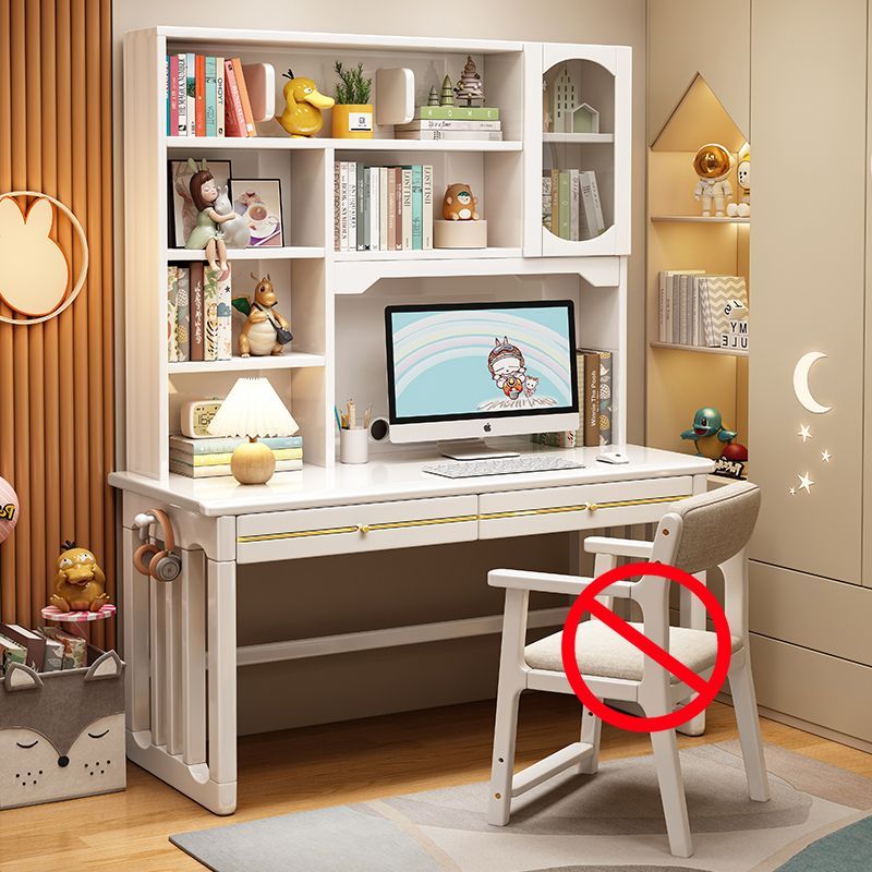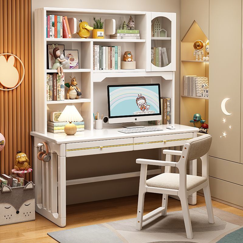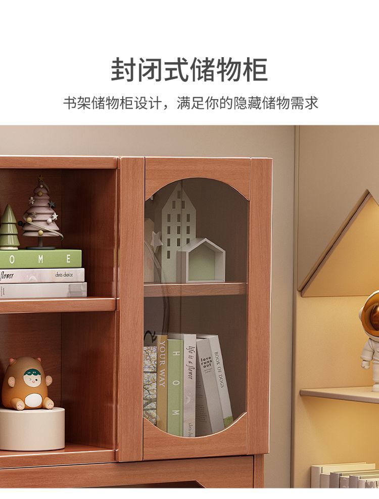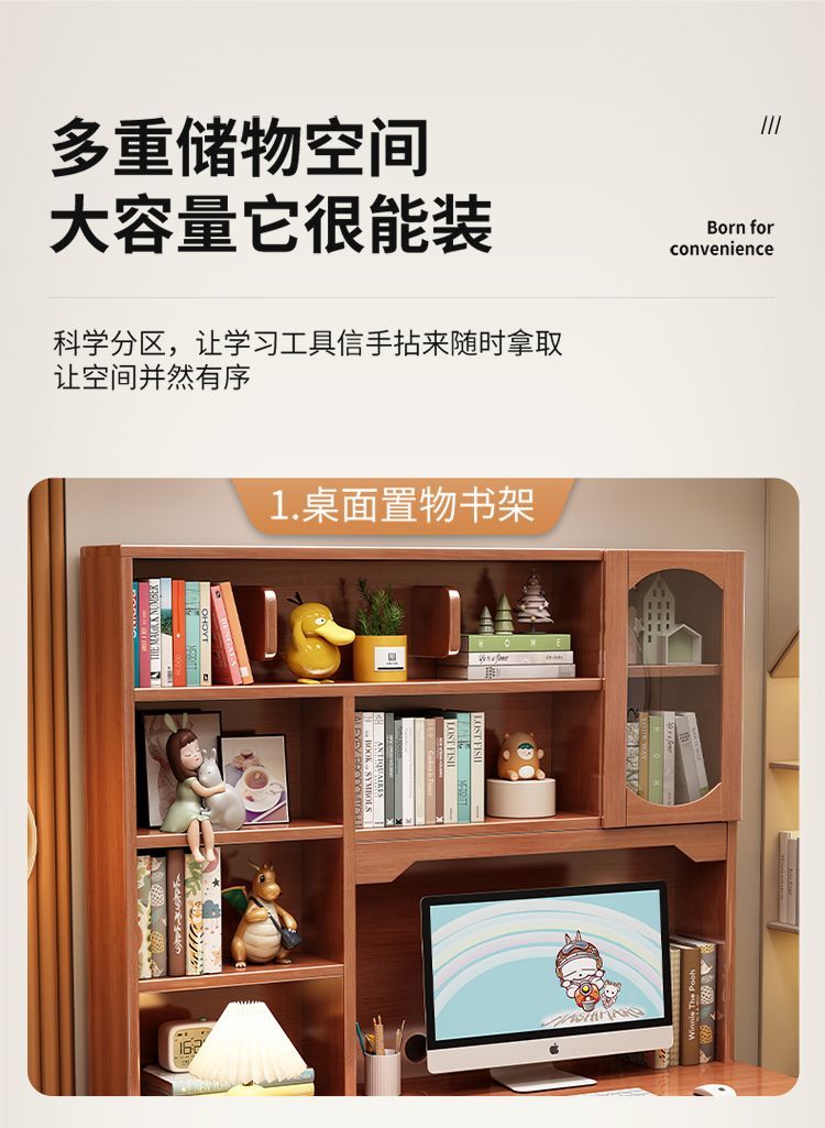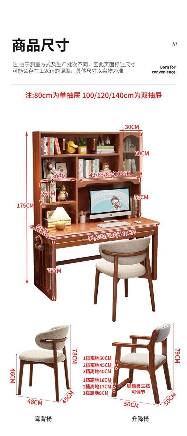 实木书桌家用书柜组合一体写字桌书房卧室轻奢电脑桌学生学习桌