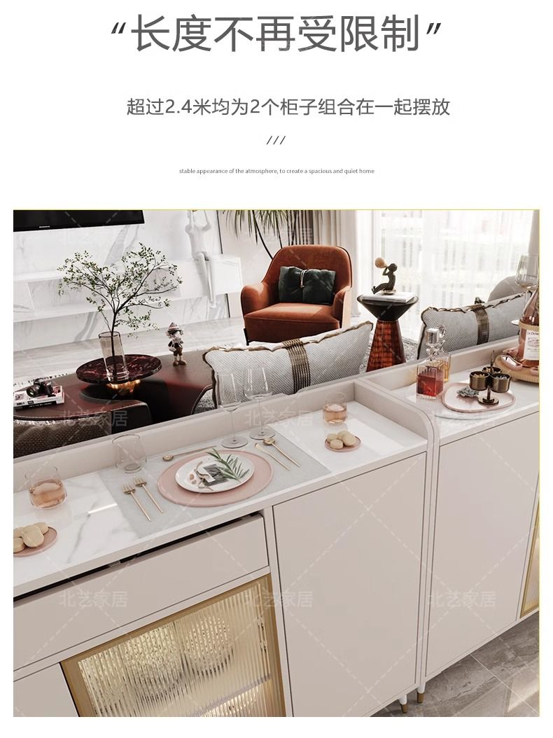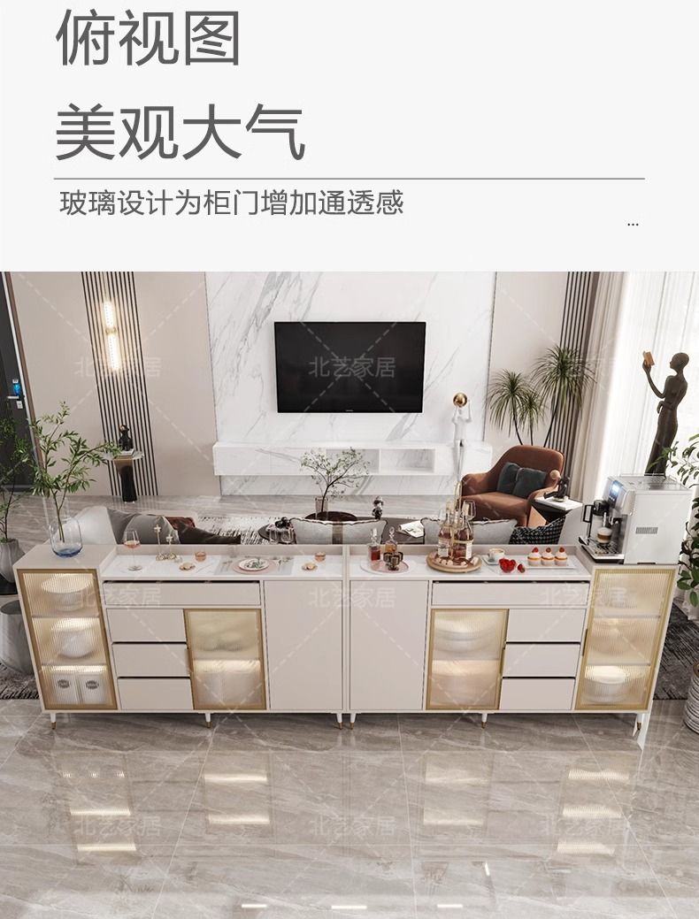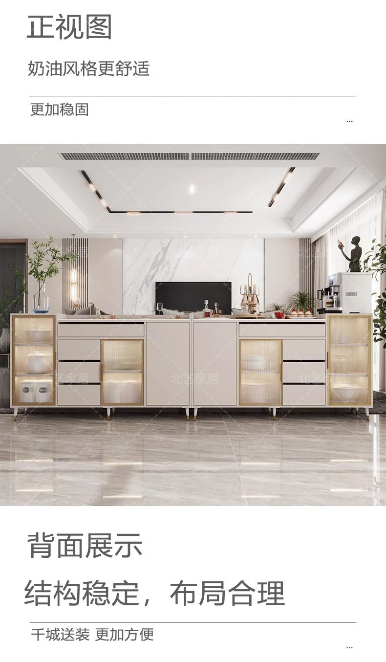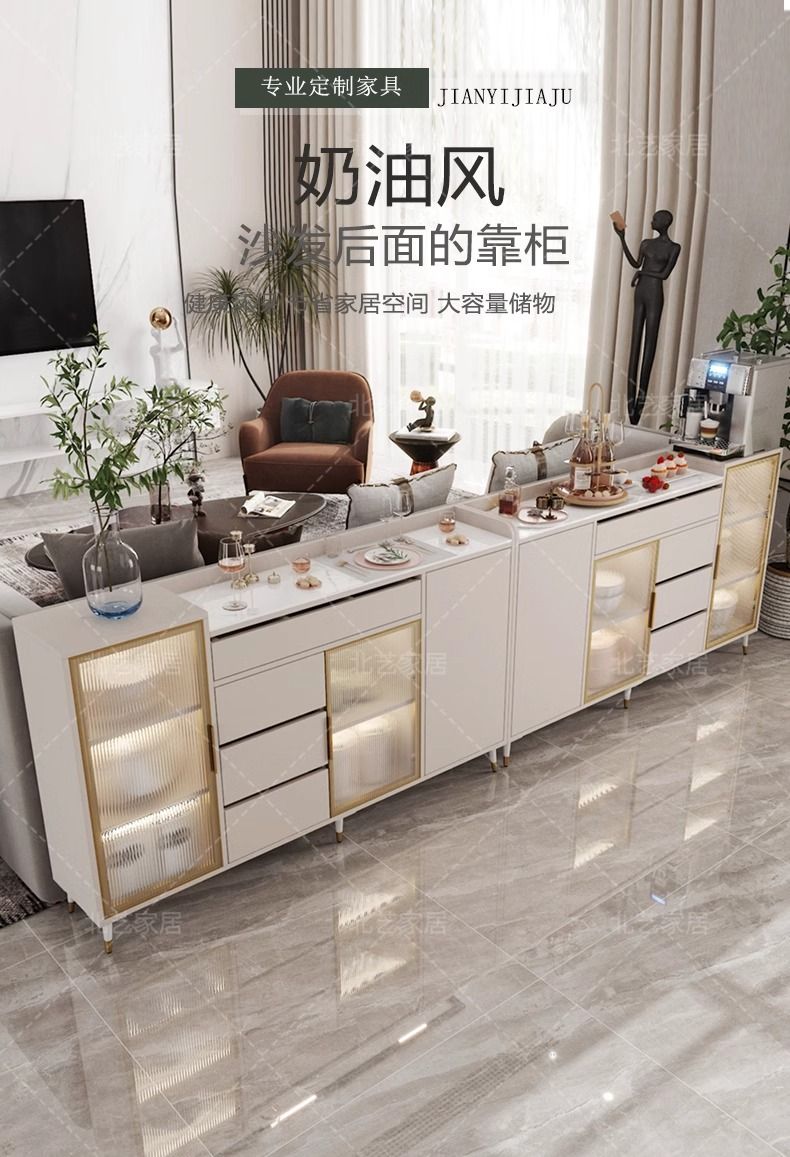 客厅沙发背柜奶油风岩板餐边柜实木多层板横厅隔断柜后靠背柜矮柜
