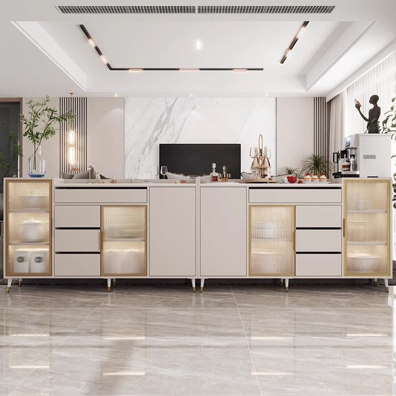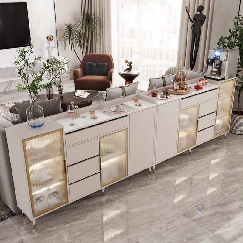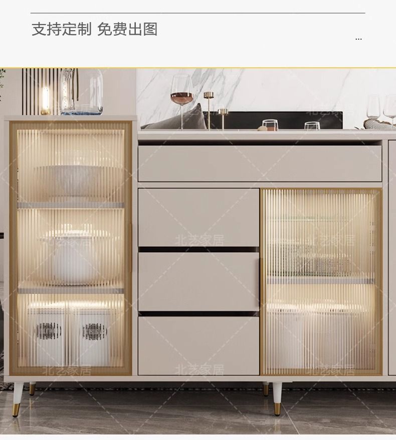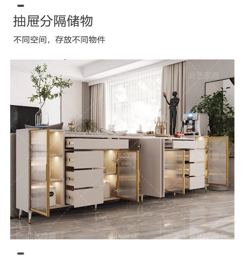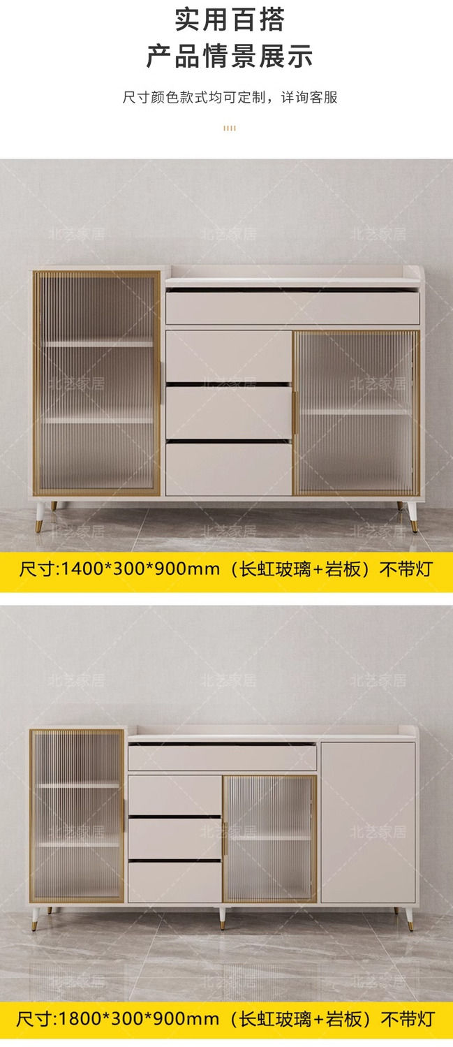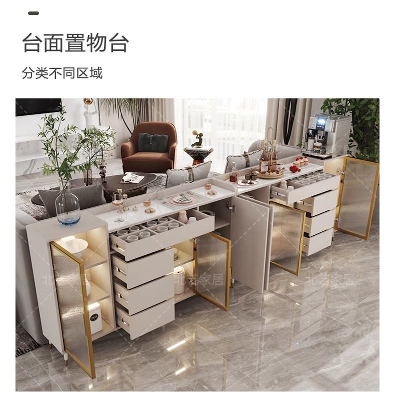 客厅沙发背柜奶油风岩板餐边柜实木多层板横厅隔断柜后靠背柜矮柜