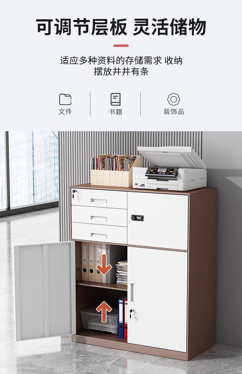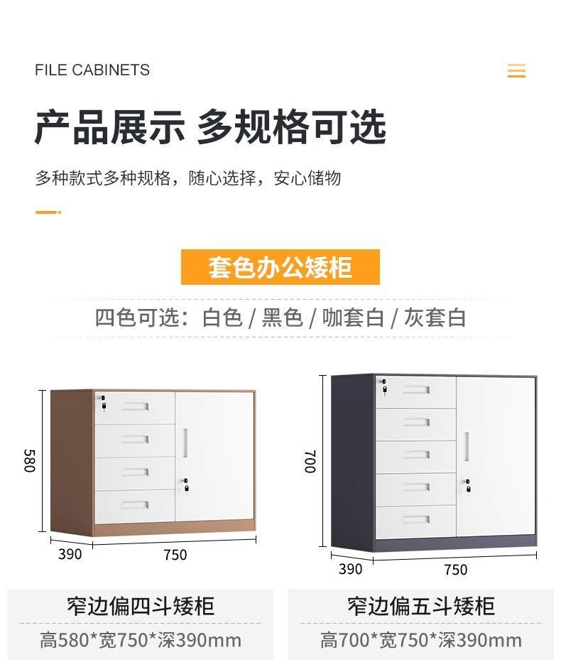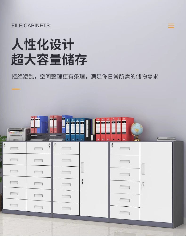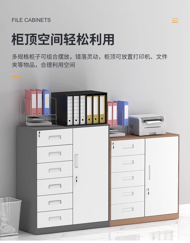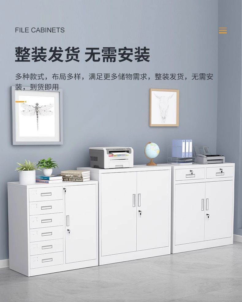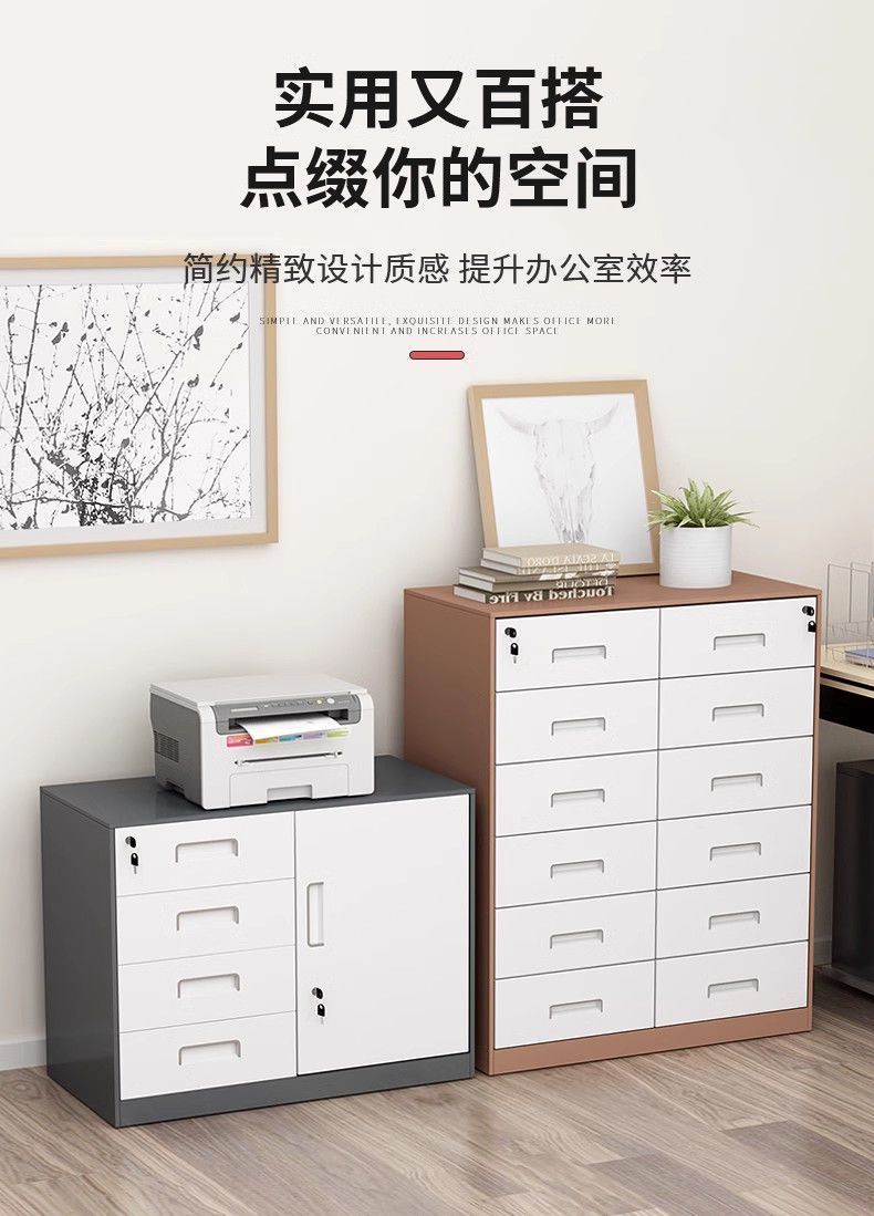 文件柜低价矮柜办公室办公铁皮柜抽屉带锁收纳资料储物柜打印机