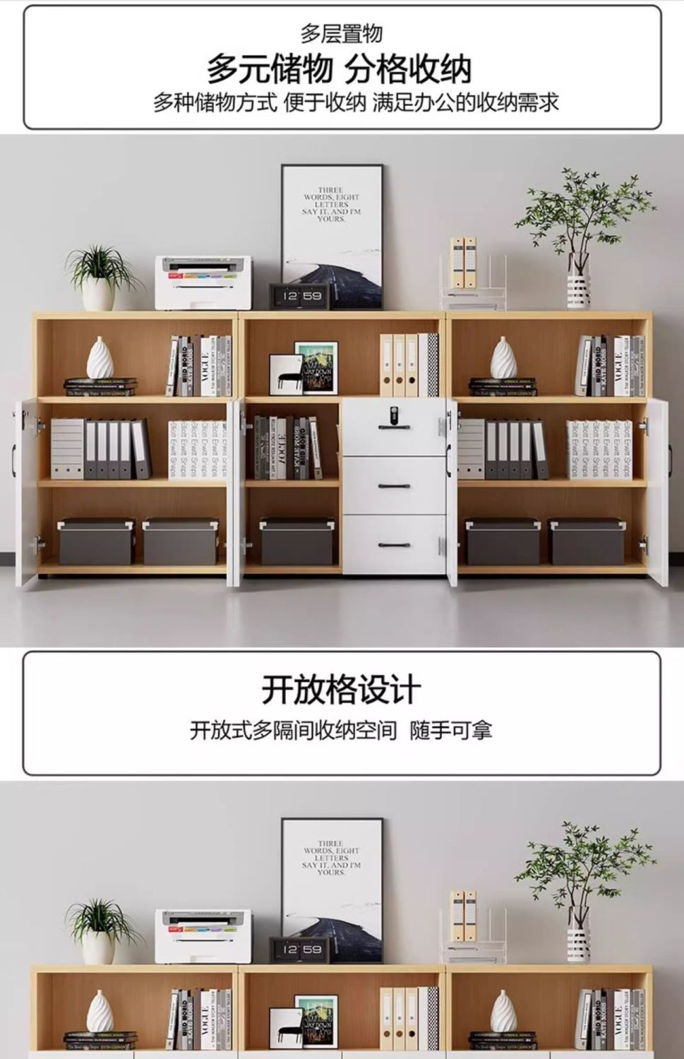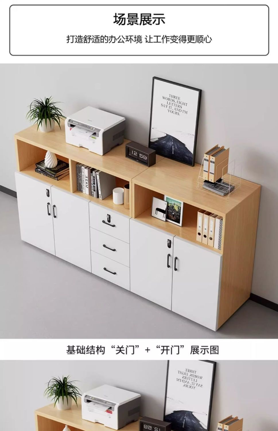 文件柜储物柜办公会议室落地柜密码抽屉柜置物资料储物柜花槽靠墙