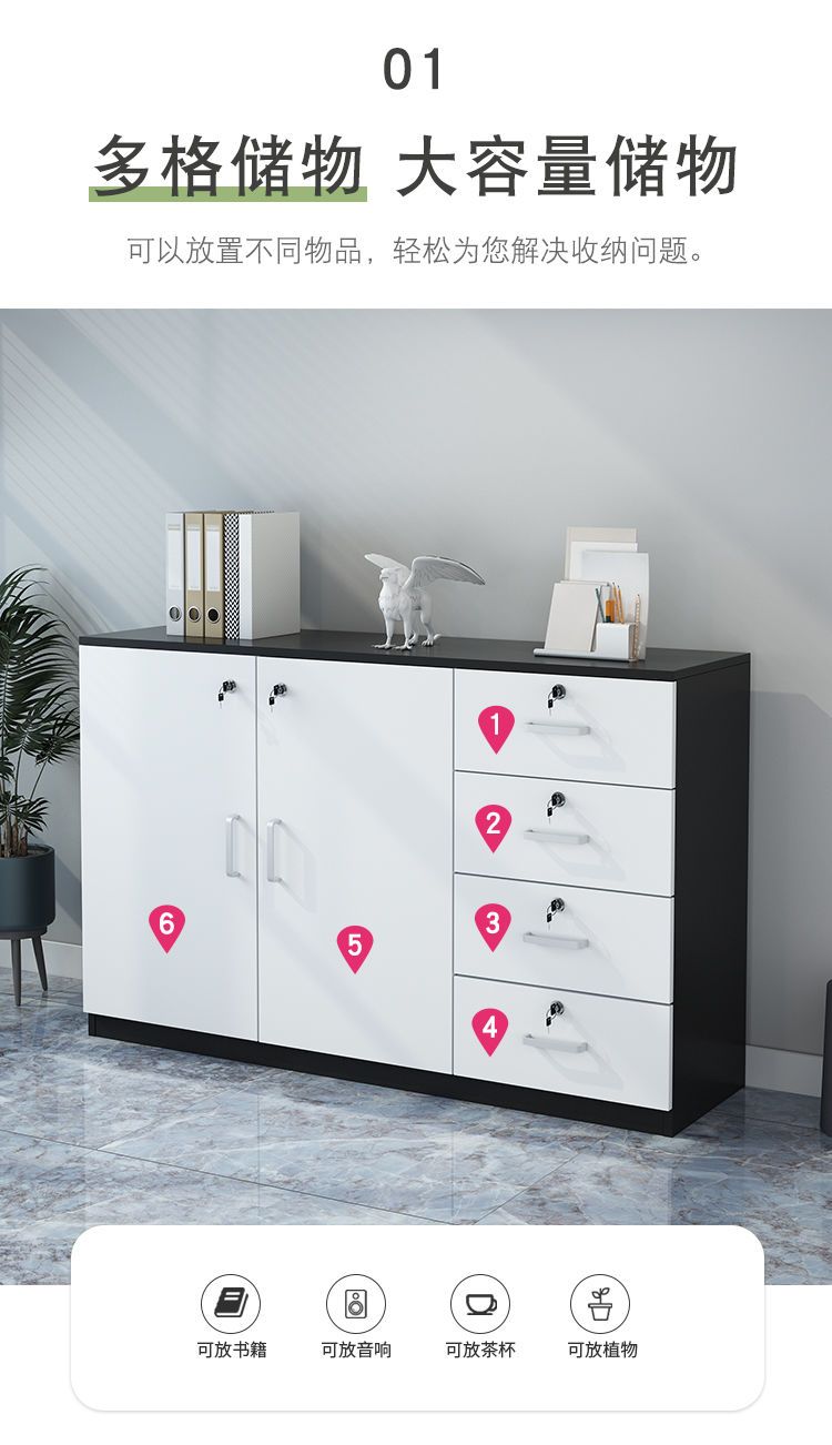 文件柜柜子办公资料抽屉带锁木质矮柜移动办公室收纳隔断储物柜