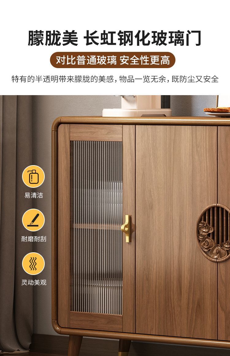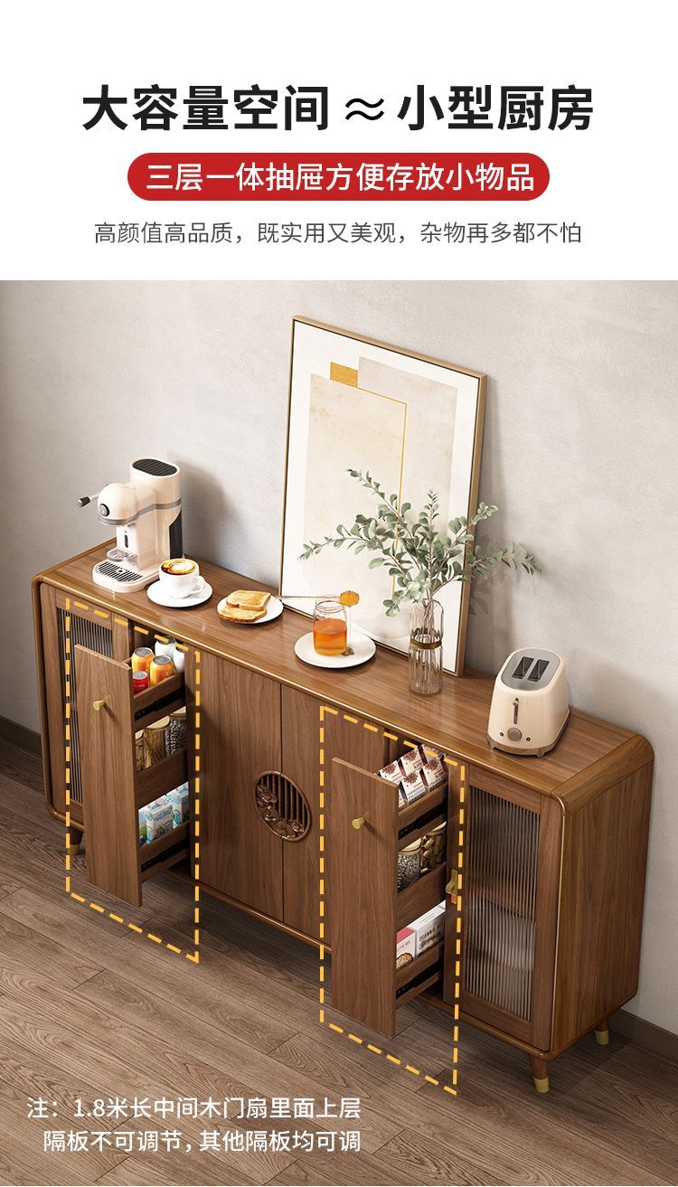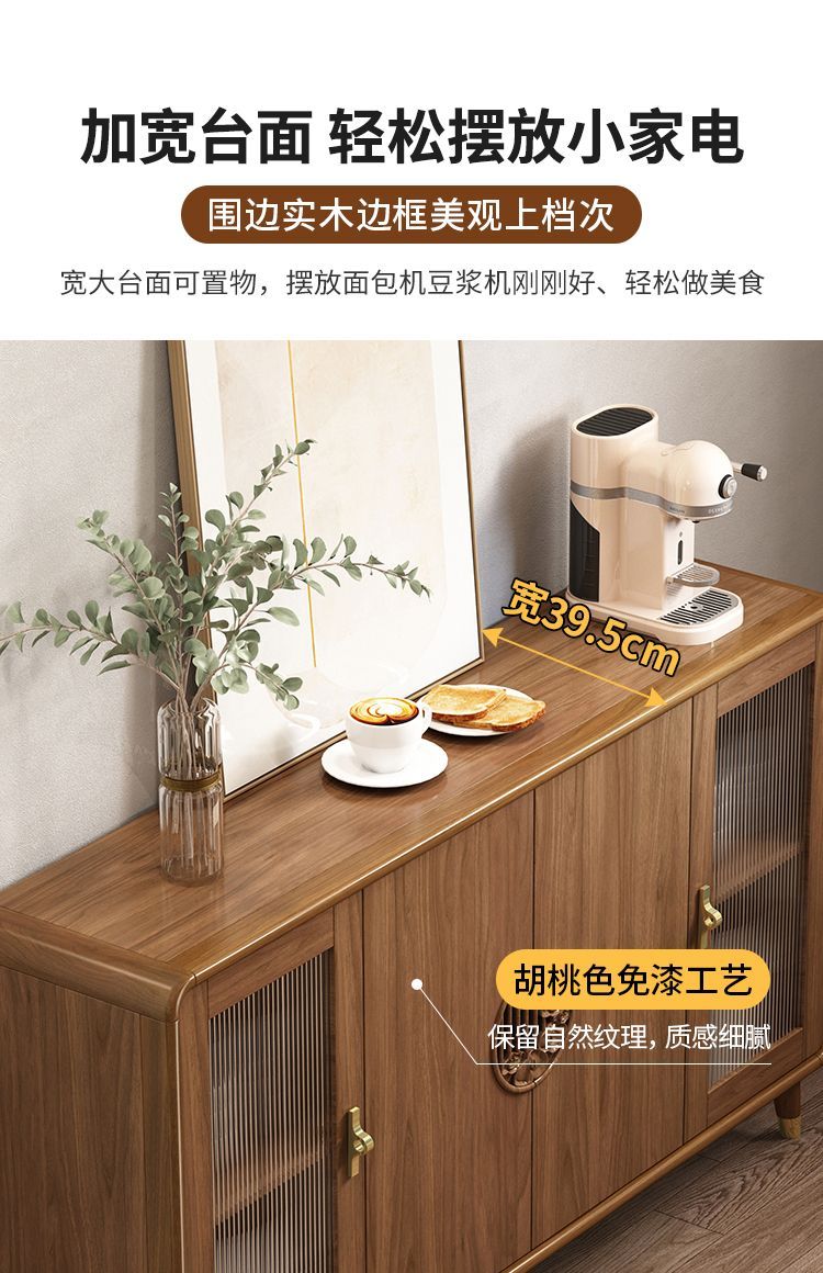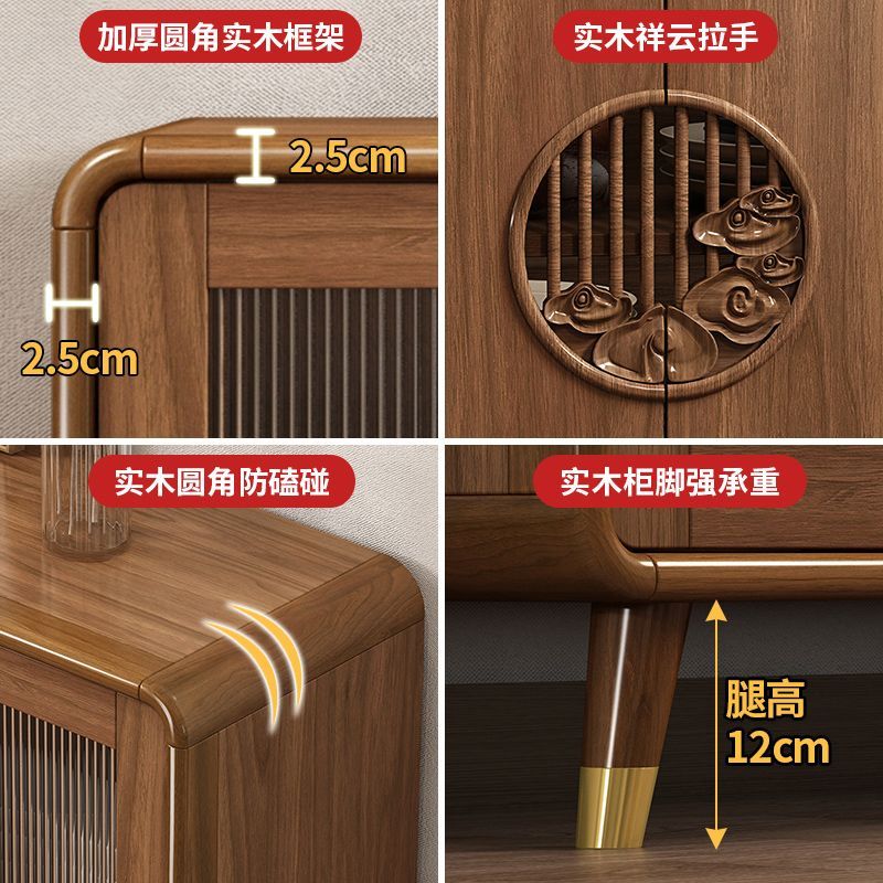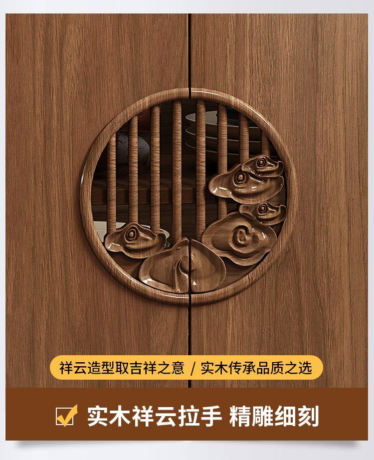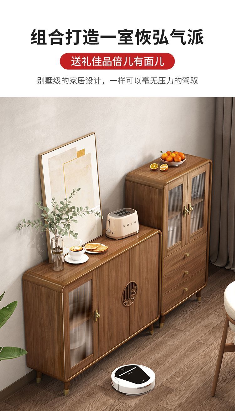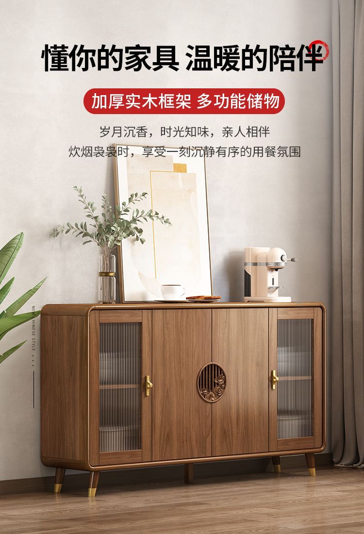 新中式餐边柜实木框柜子储物柜酒柜一体边柜客厅靠墙多功能茶水柜