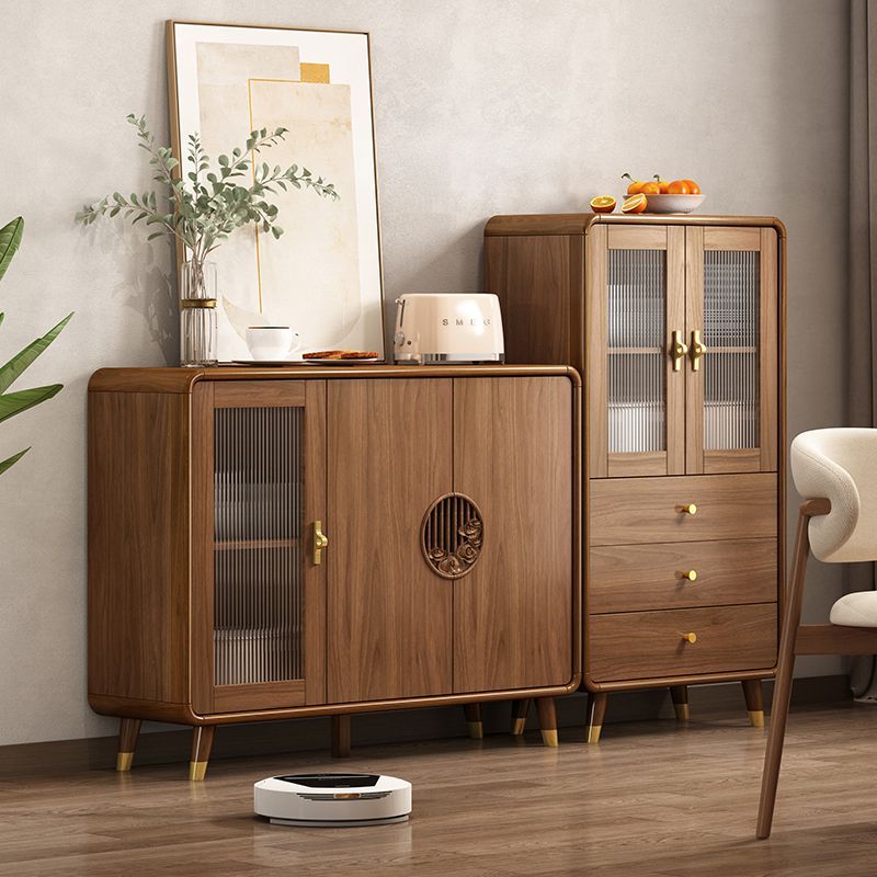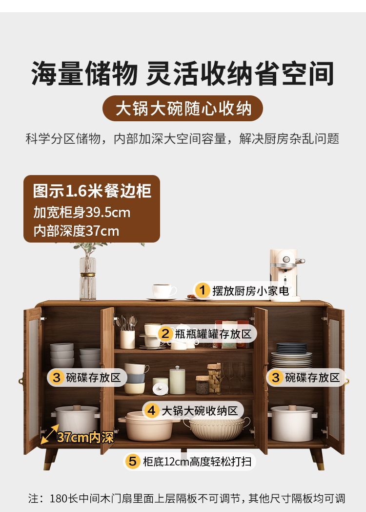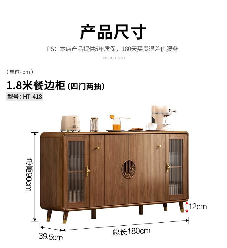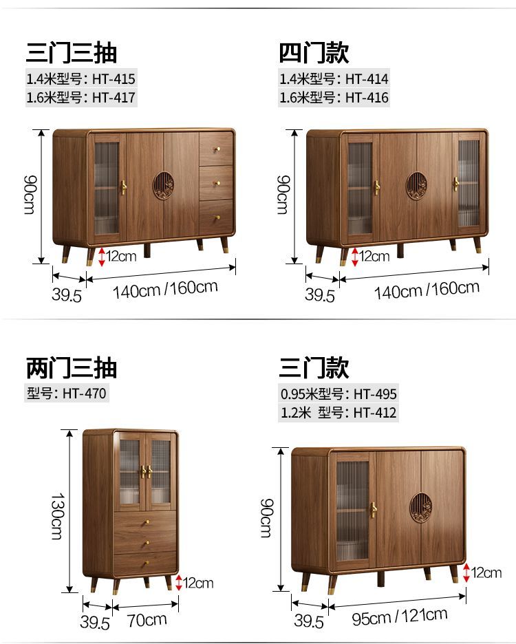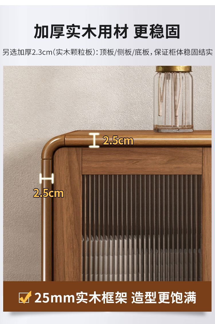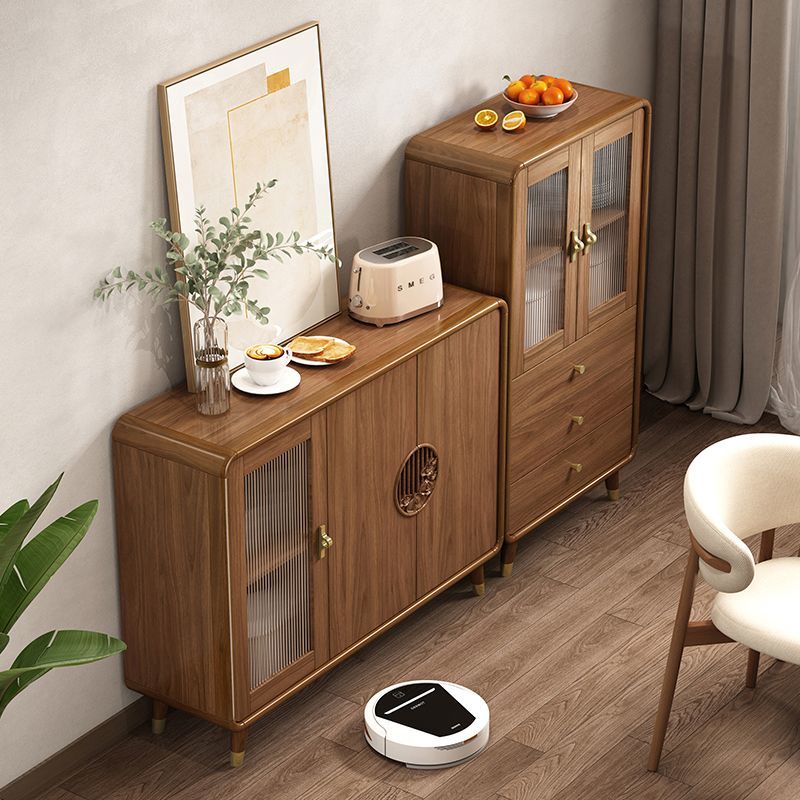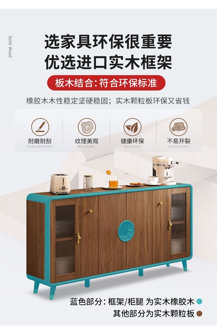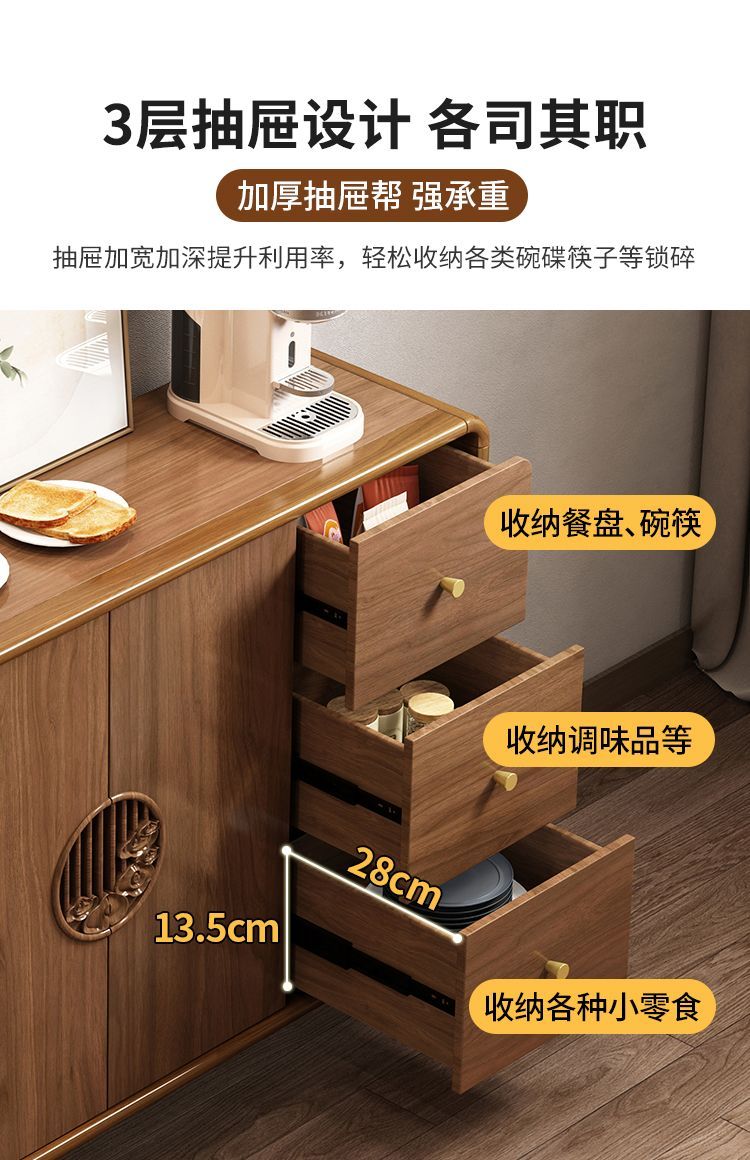 新中式餐边柜实木框柜子储物柜酒柜一体边柜客厅靠墙多功能茶水柜