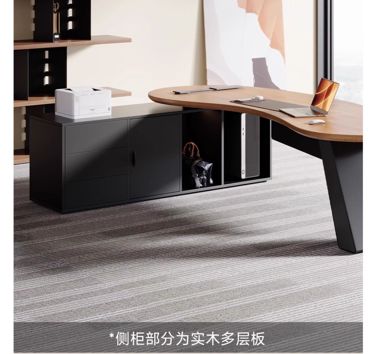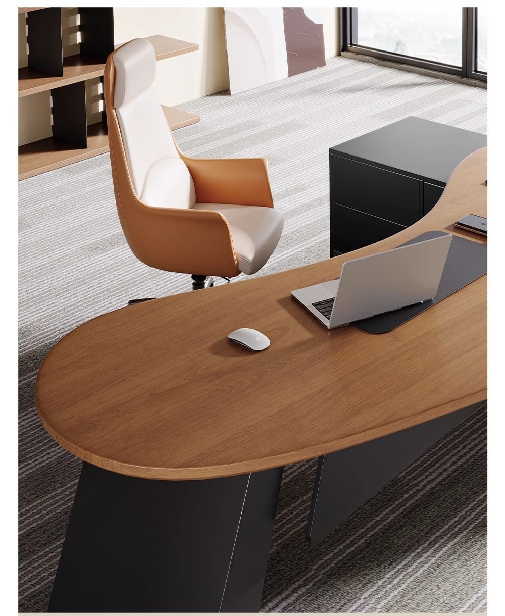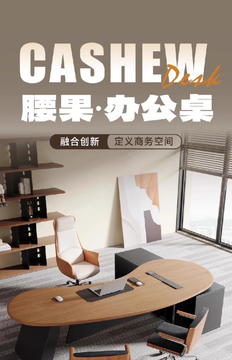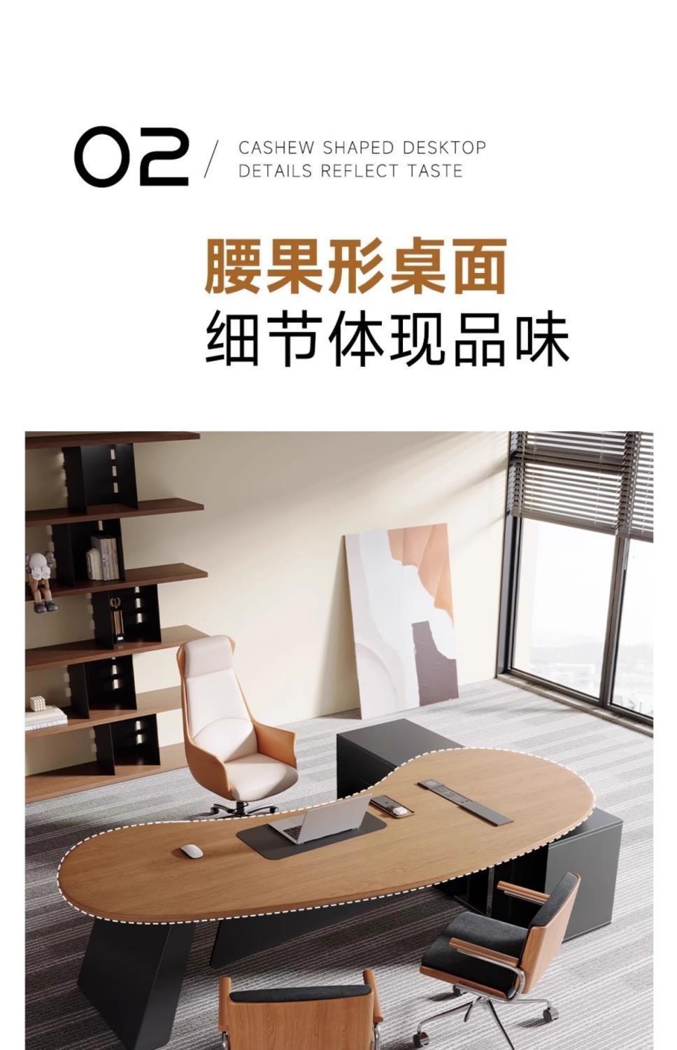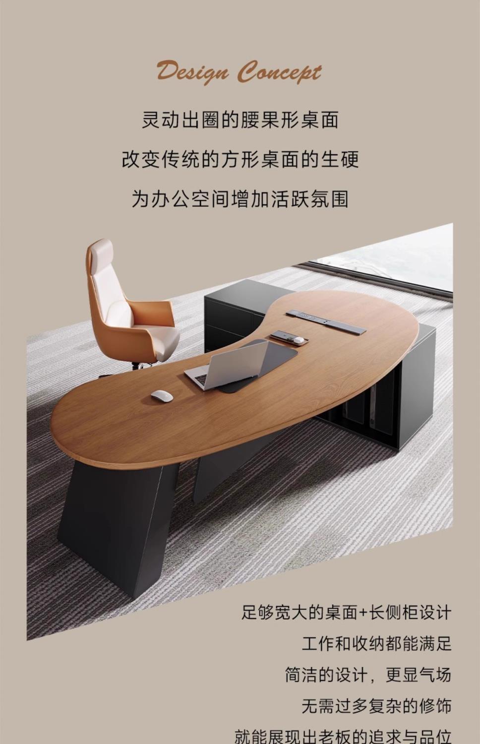 新款腰果型实木多层板办公桌老板桌女总裁办公室中古风现代高级感