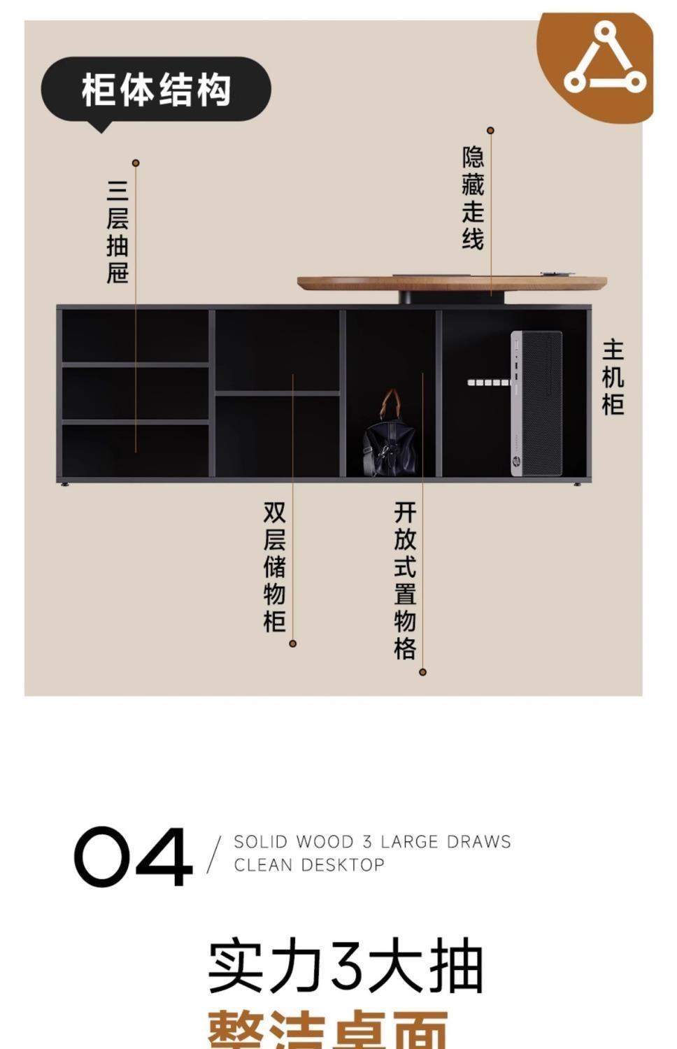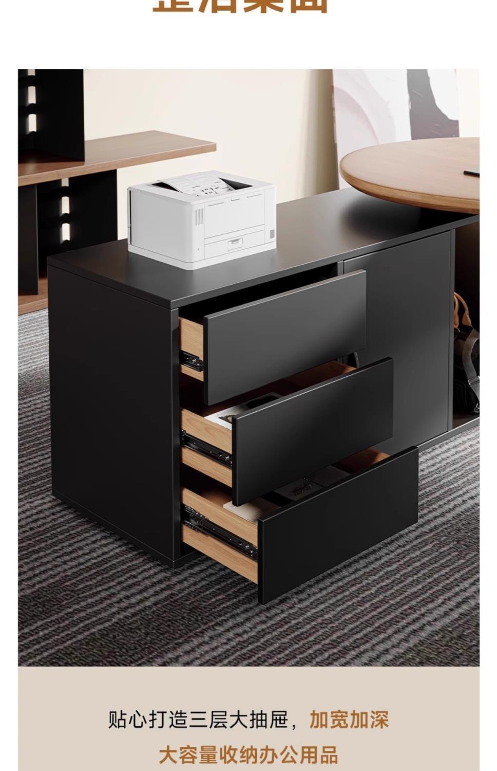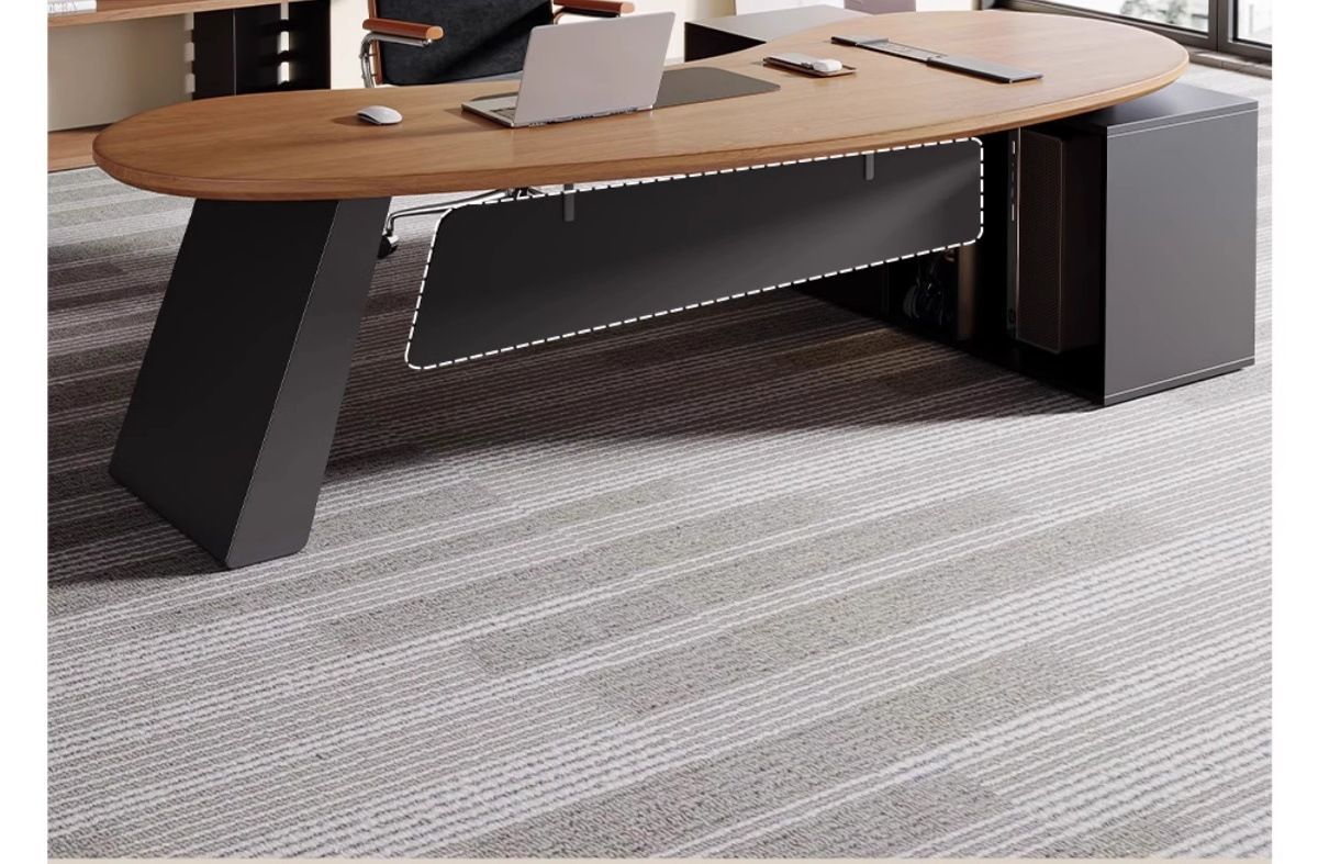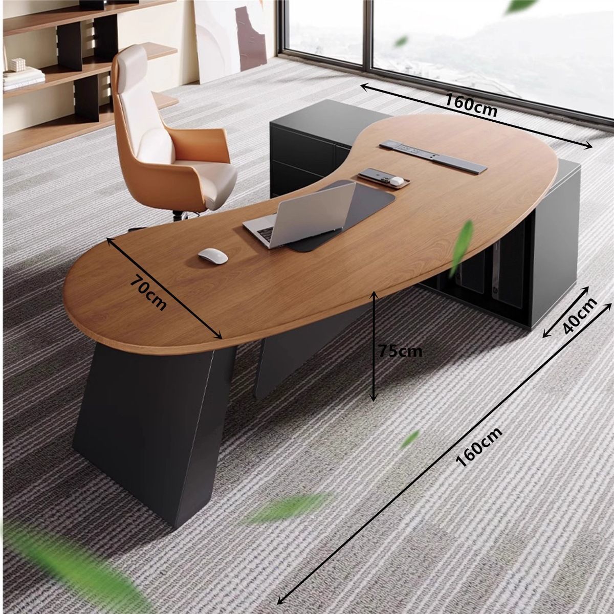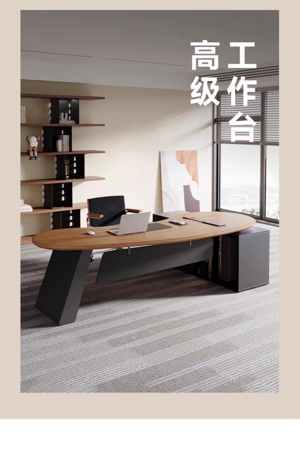 新款腰果型实木多层板办公桌老板桌女总裁办公室中古风现代高级感