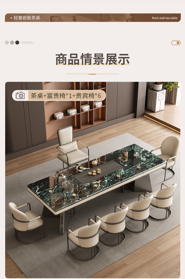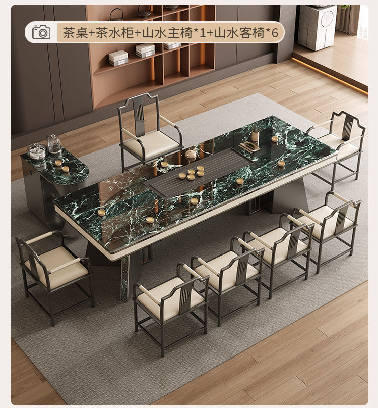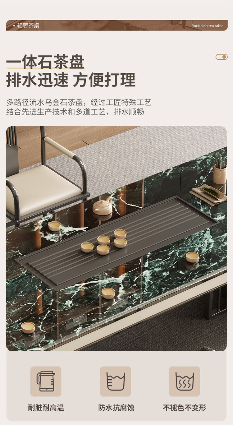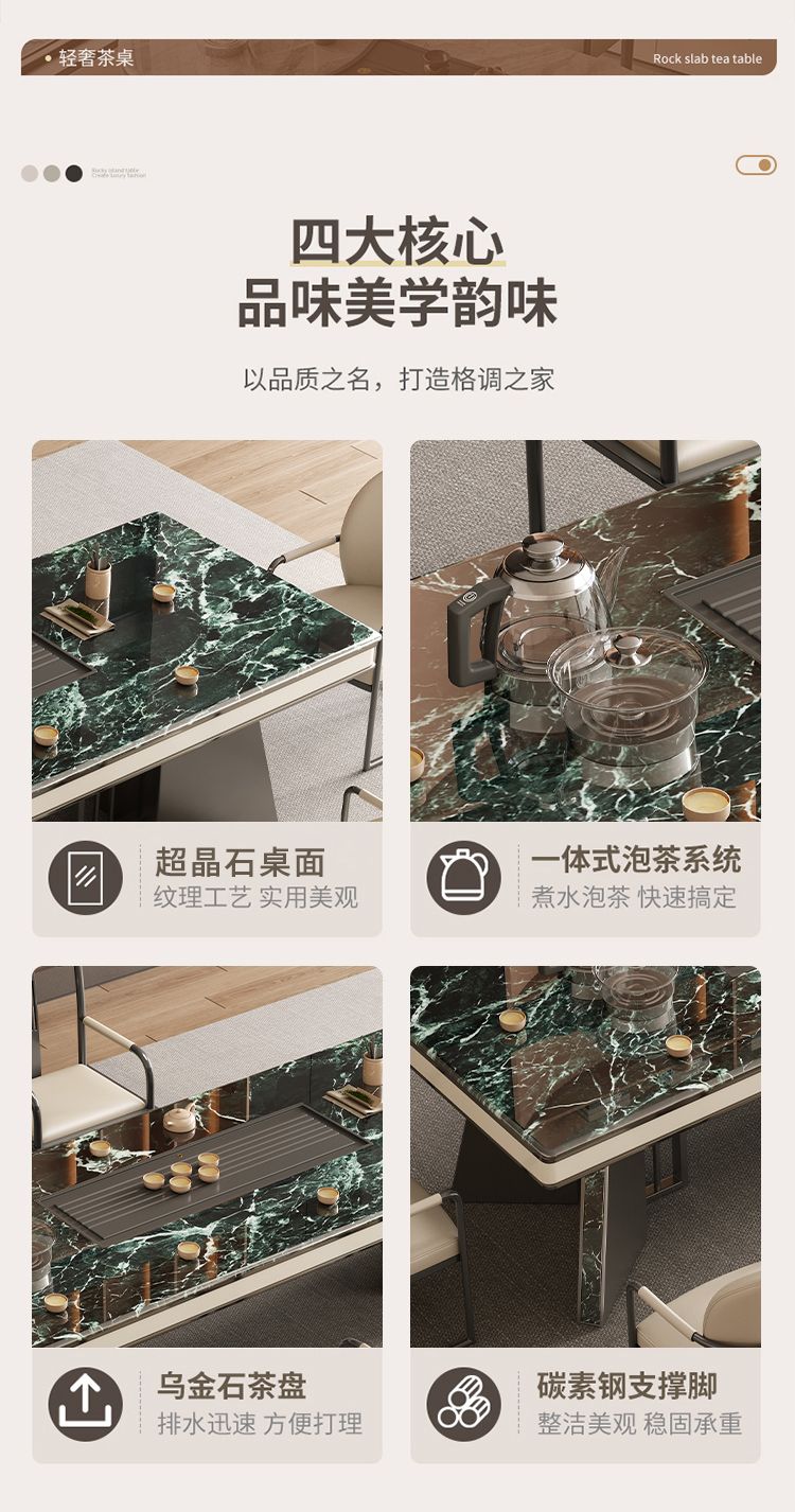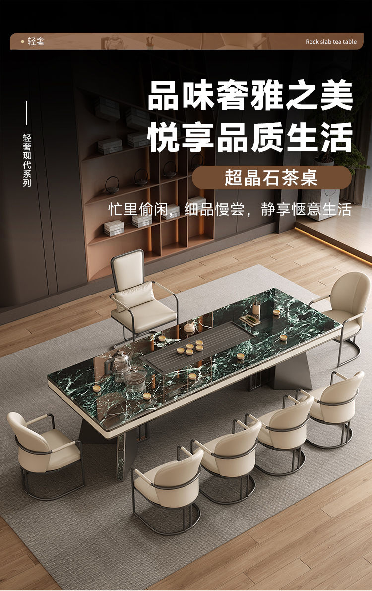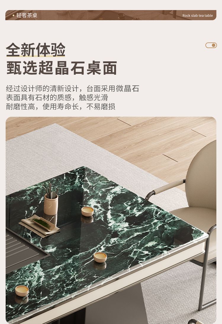本元佳品超晶石岩板茶桌椅组合现代简约别墅一体茶台设计师高级感