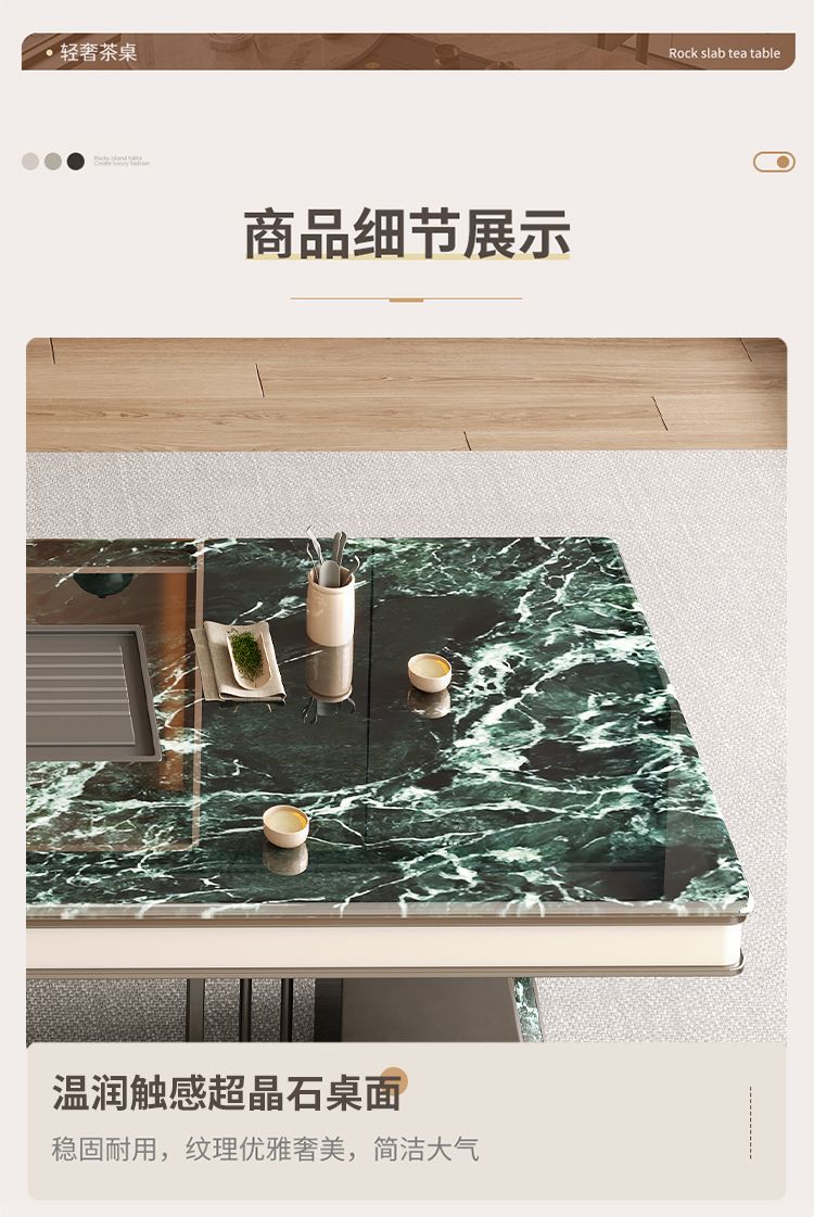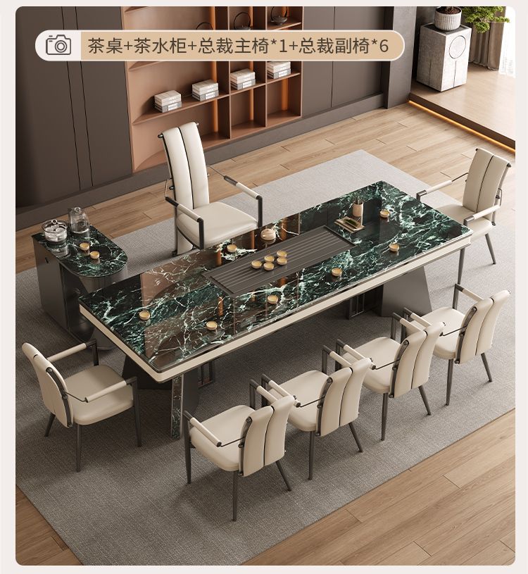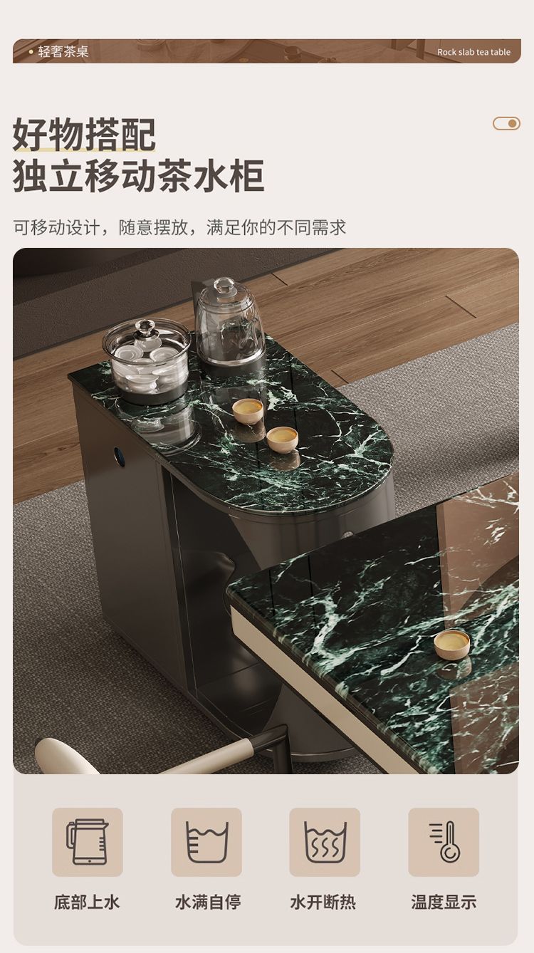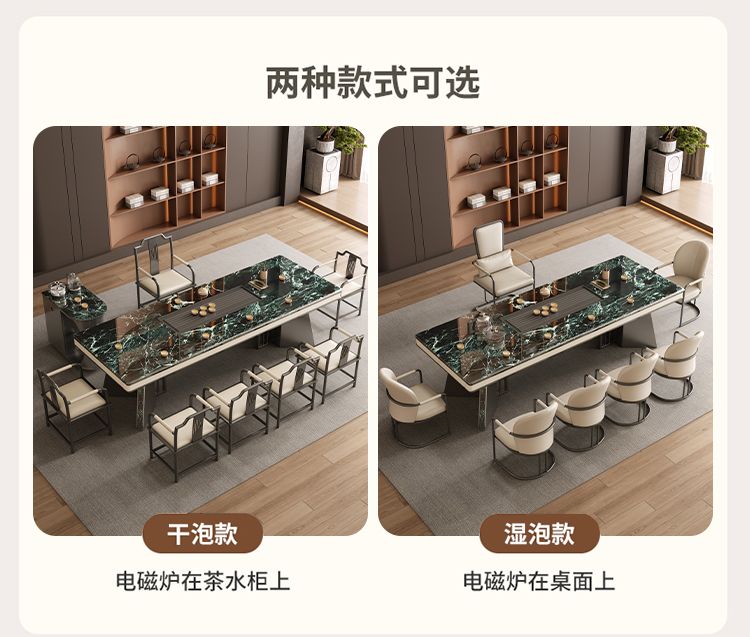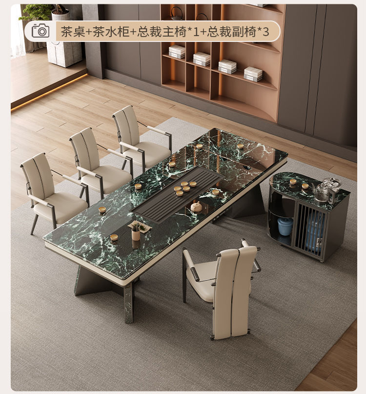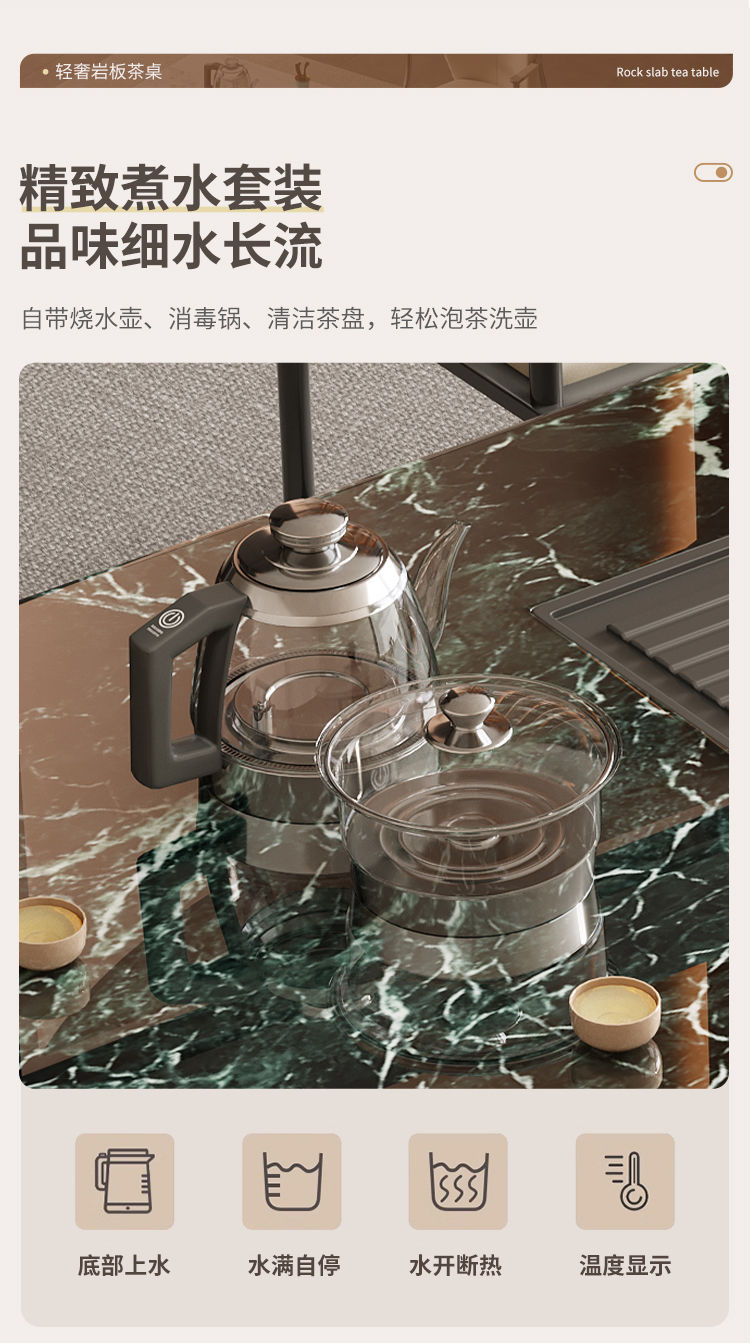 本元佳品超晶石岩板茶桌椅组合现代简约别墅一体茶台设计师高级感
