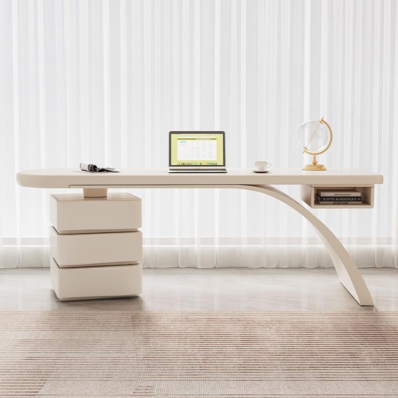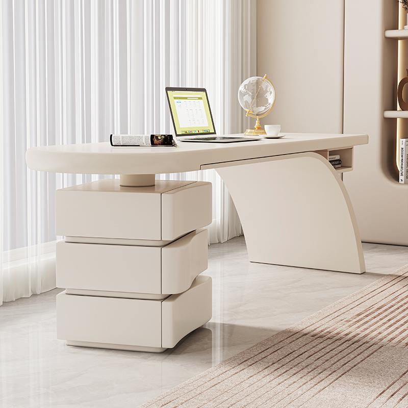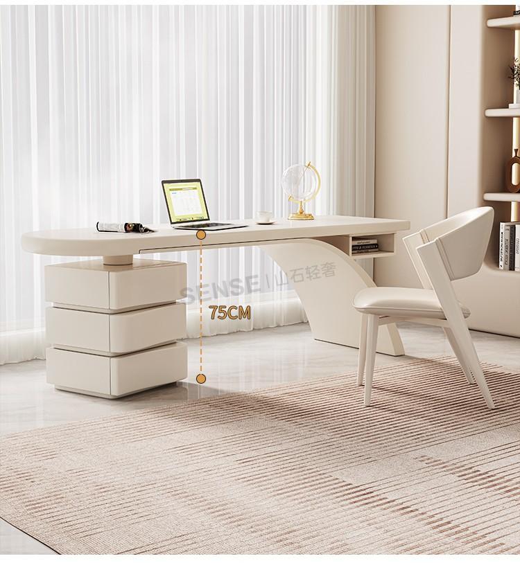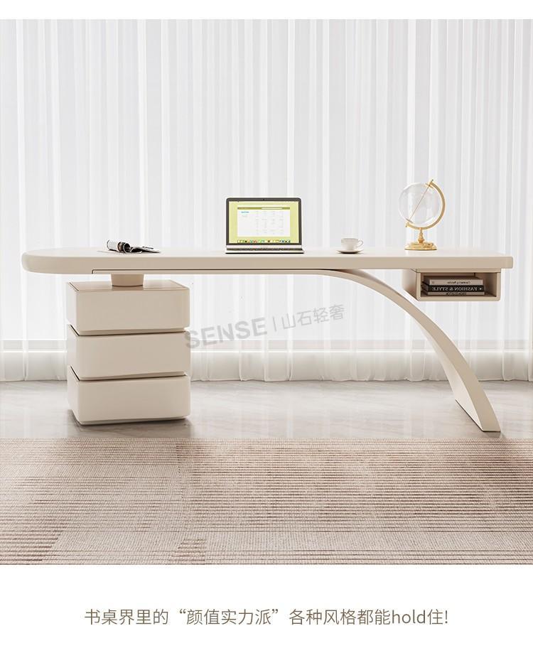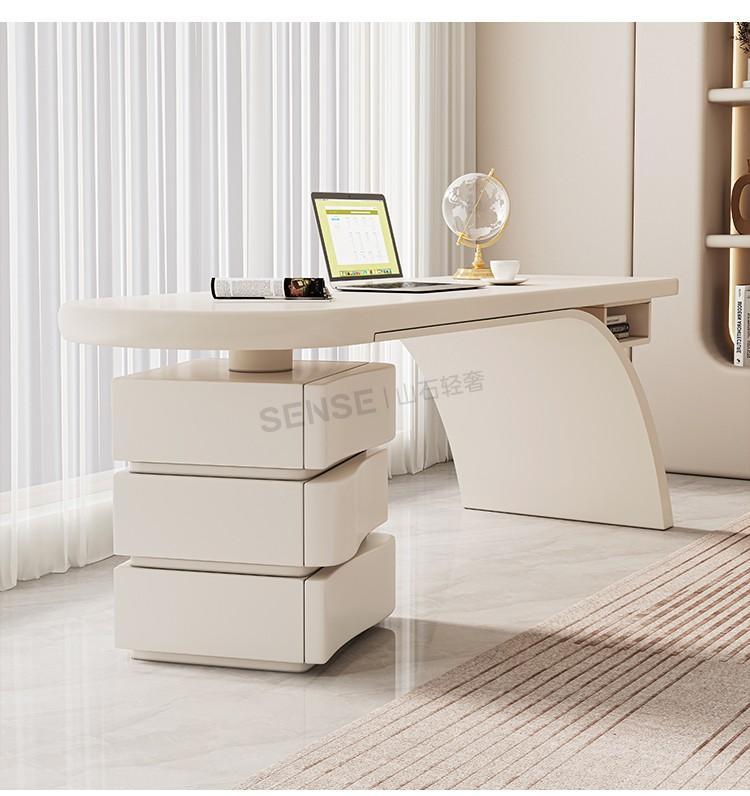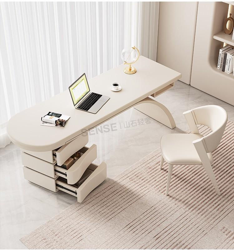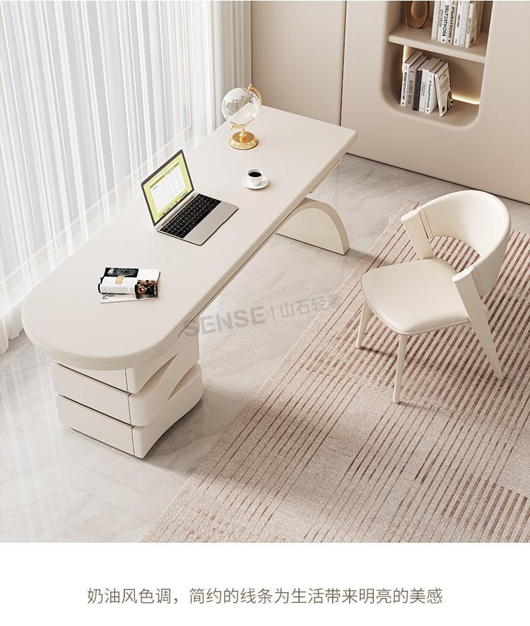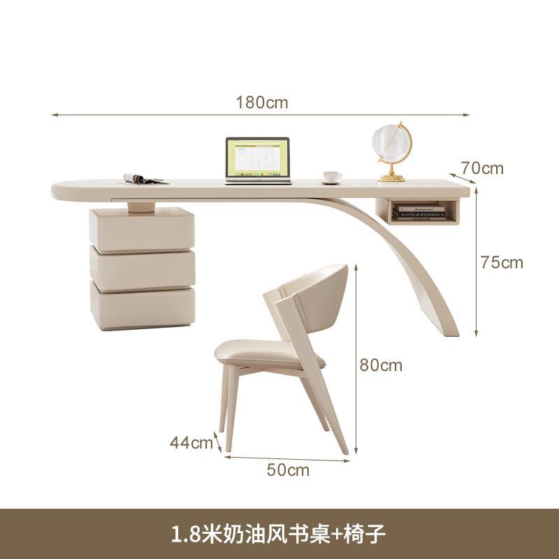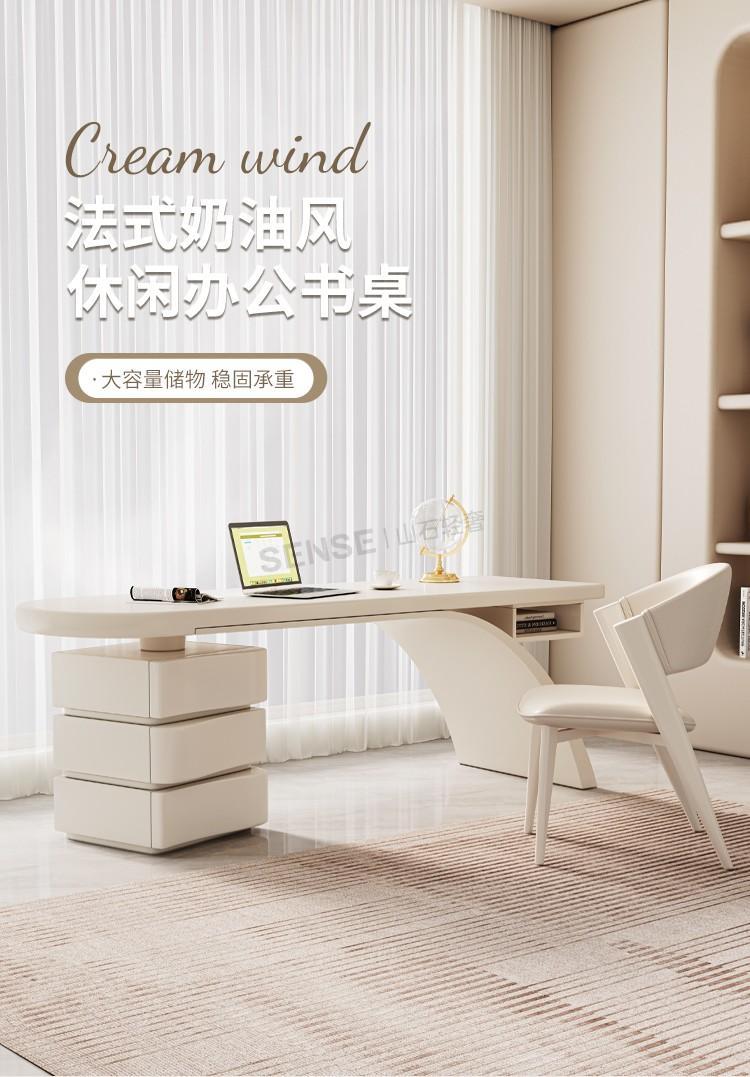 法式奶油风书桌家用设计师款轻奢现代简约写字女性实木网红办公桌