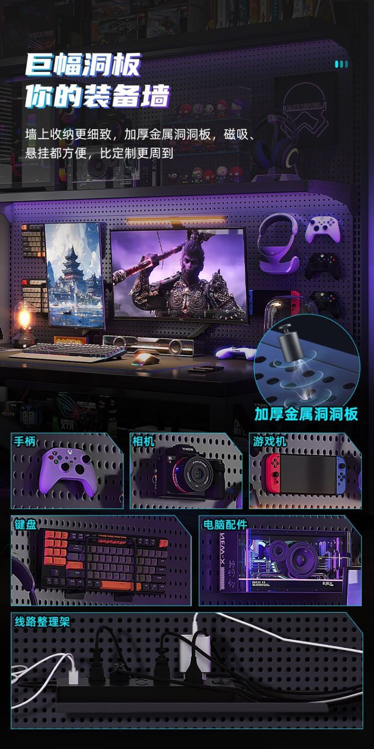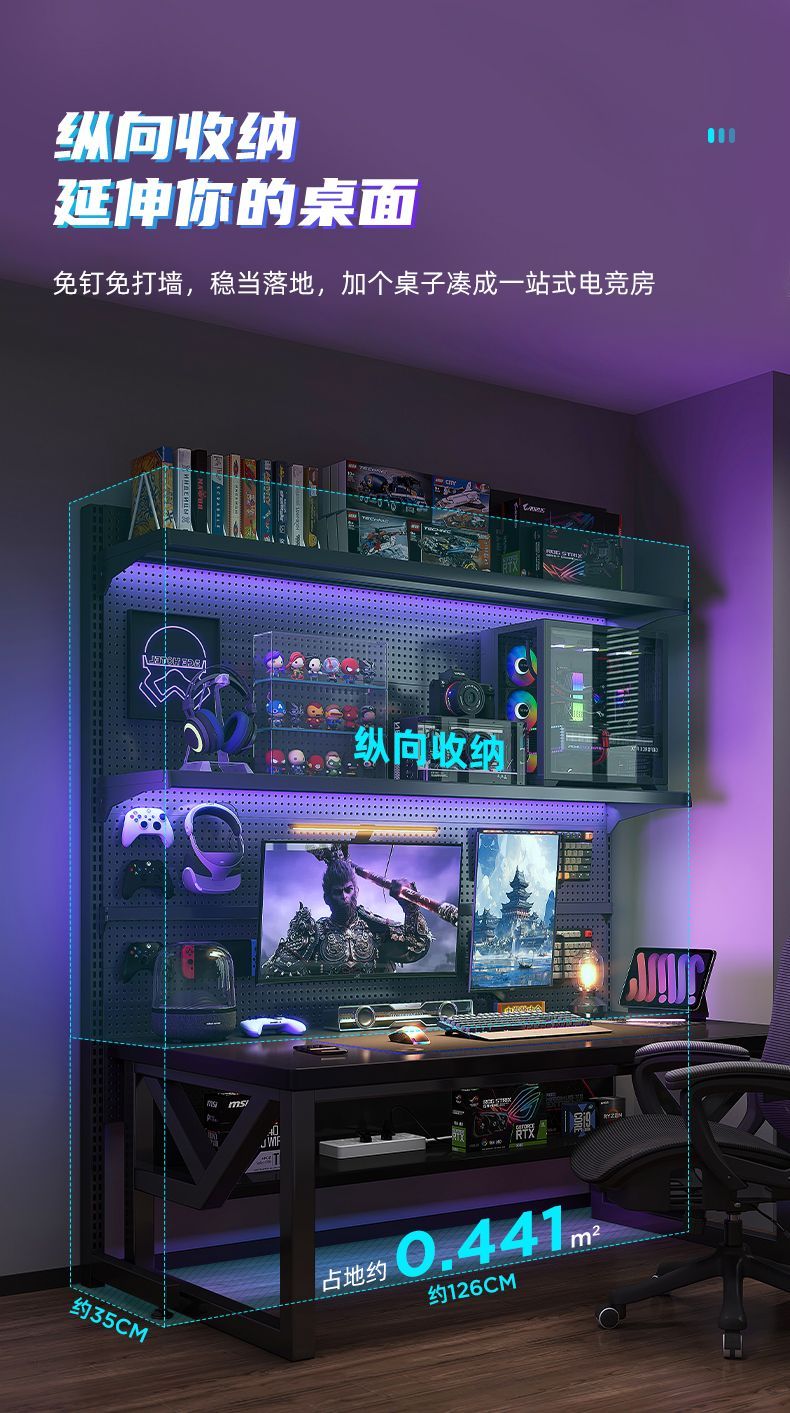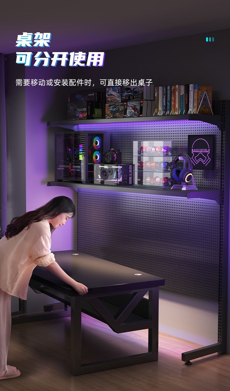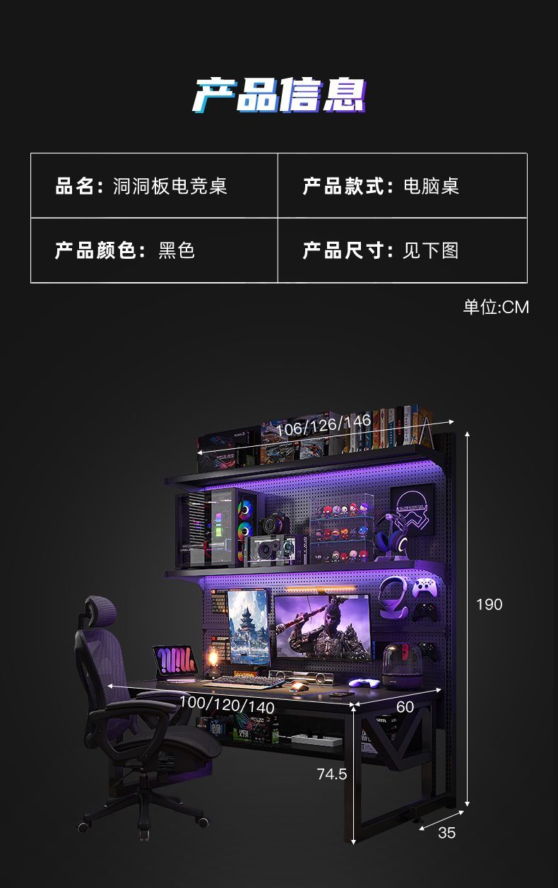 洞洞板电脑桌台式电竞桌子卧室家用落地置物架电竞房桌椅套装书房