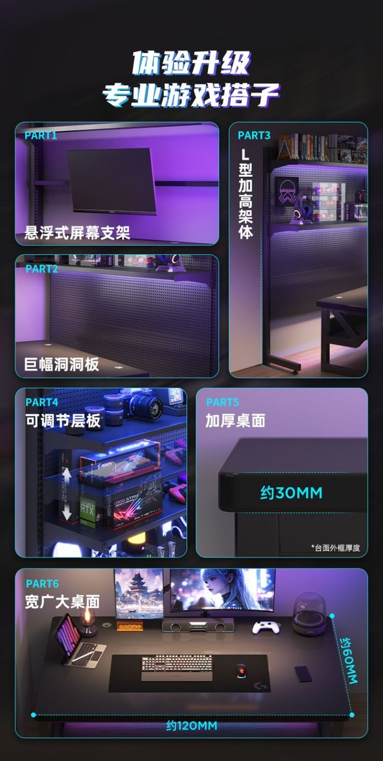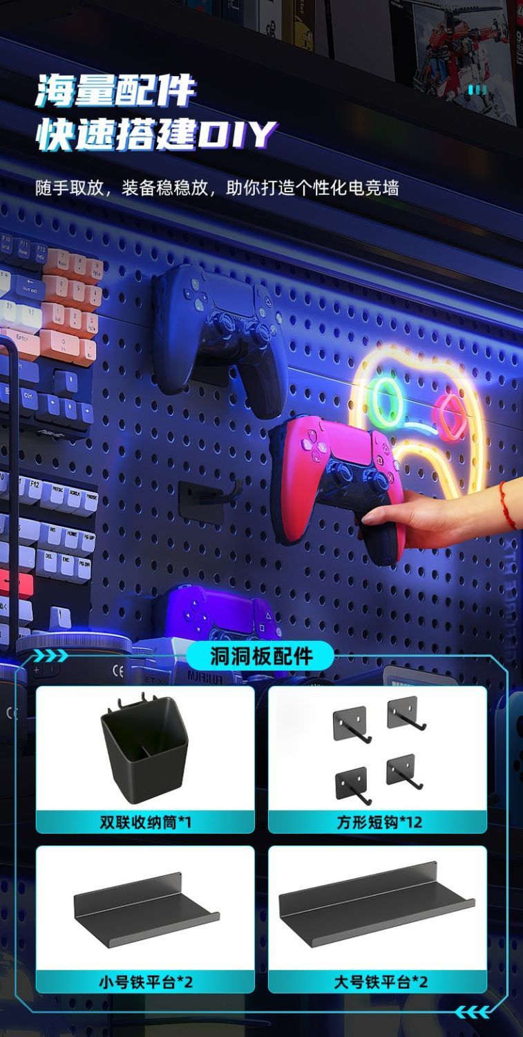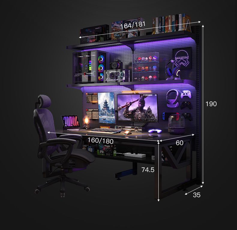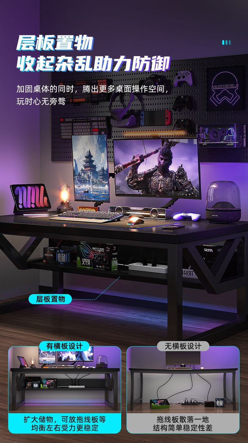 洞洞板电脑桌台式电竞桌子卧室家用落地置物架电竞房桌椅套装书房