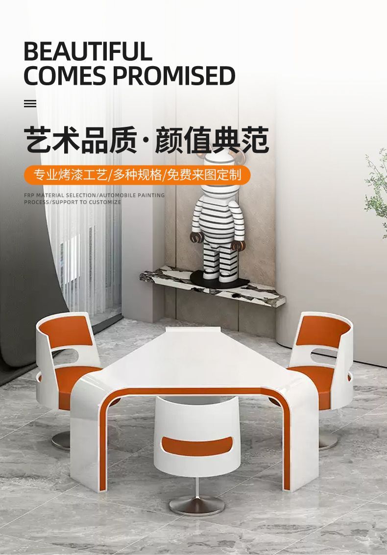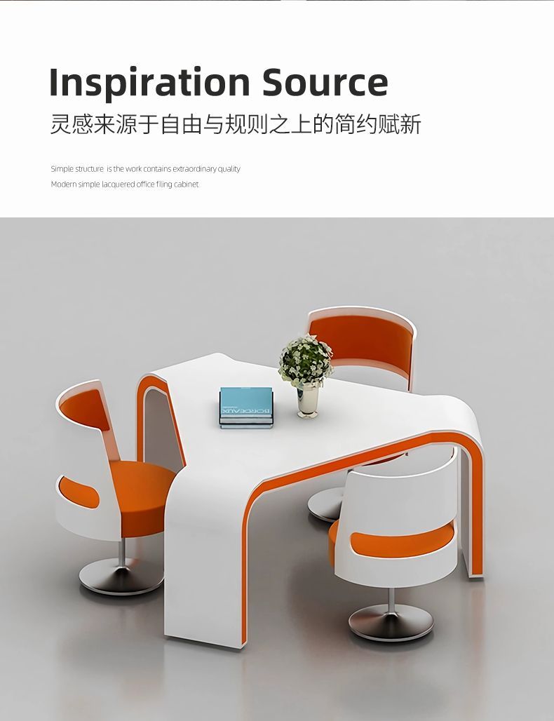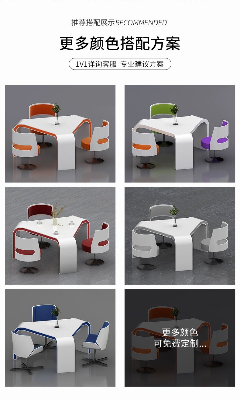 烤漆谈判桌小型休闲接待洽谈桌展厅售楼三角形办公室会议桌椅组合