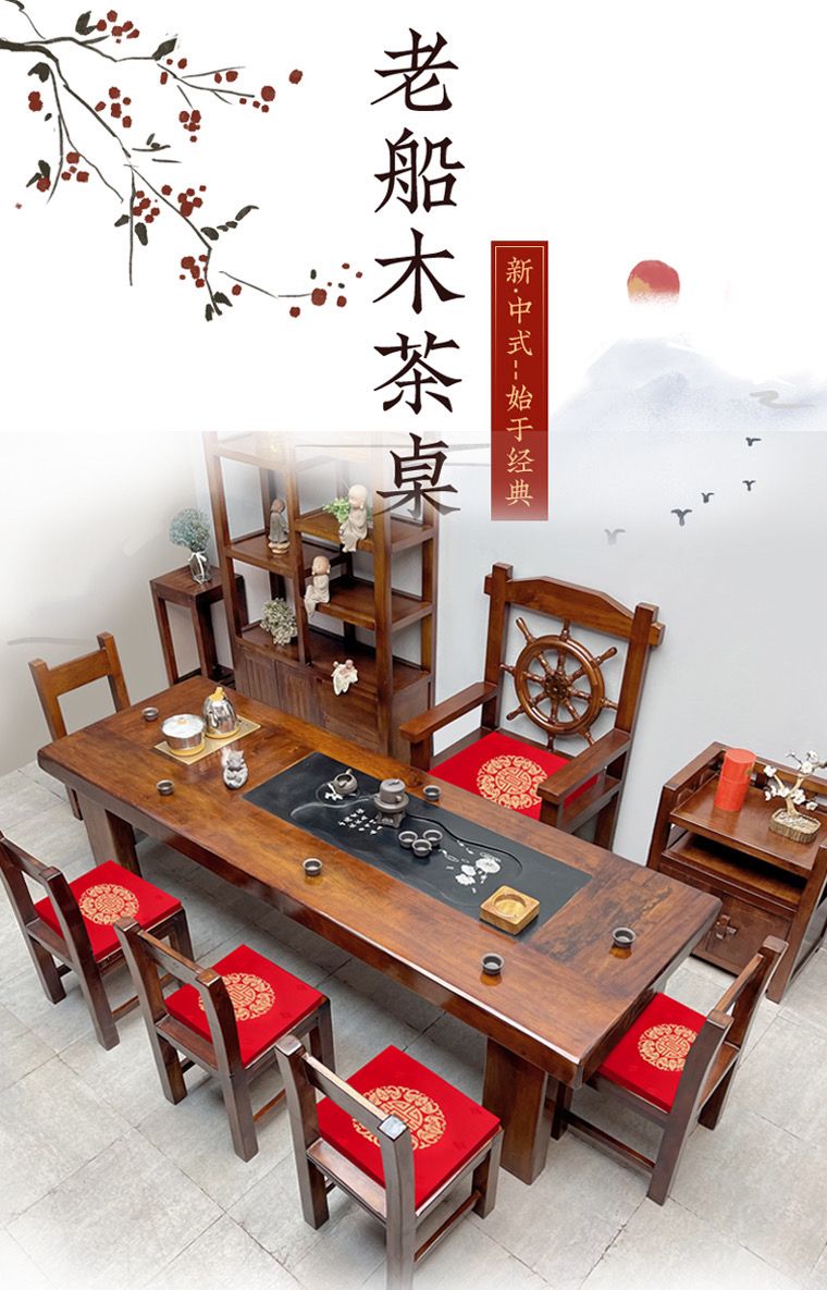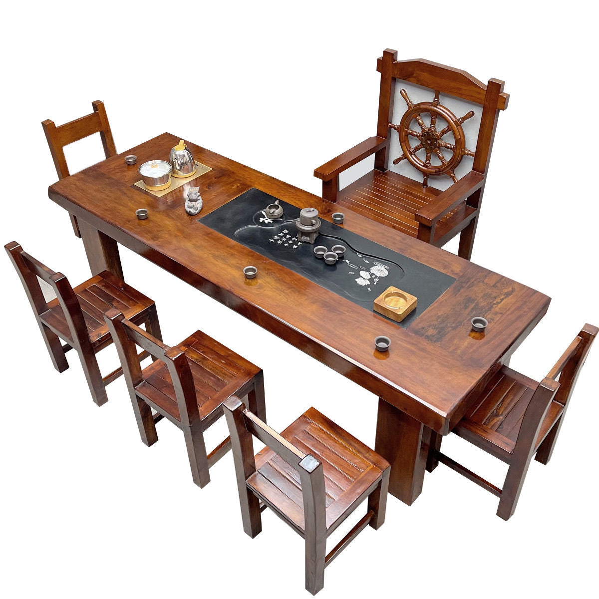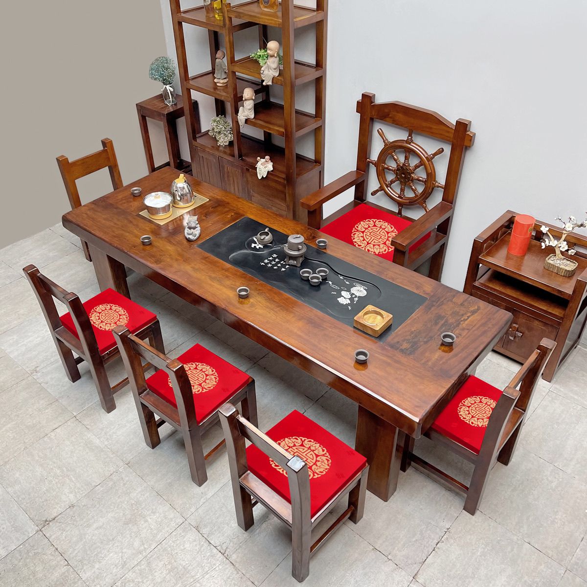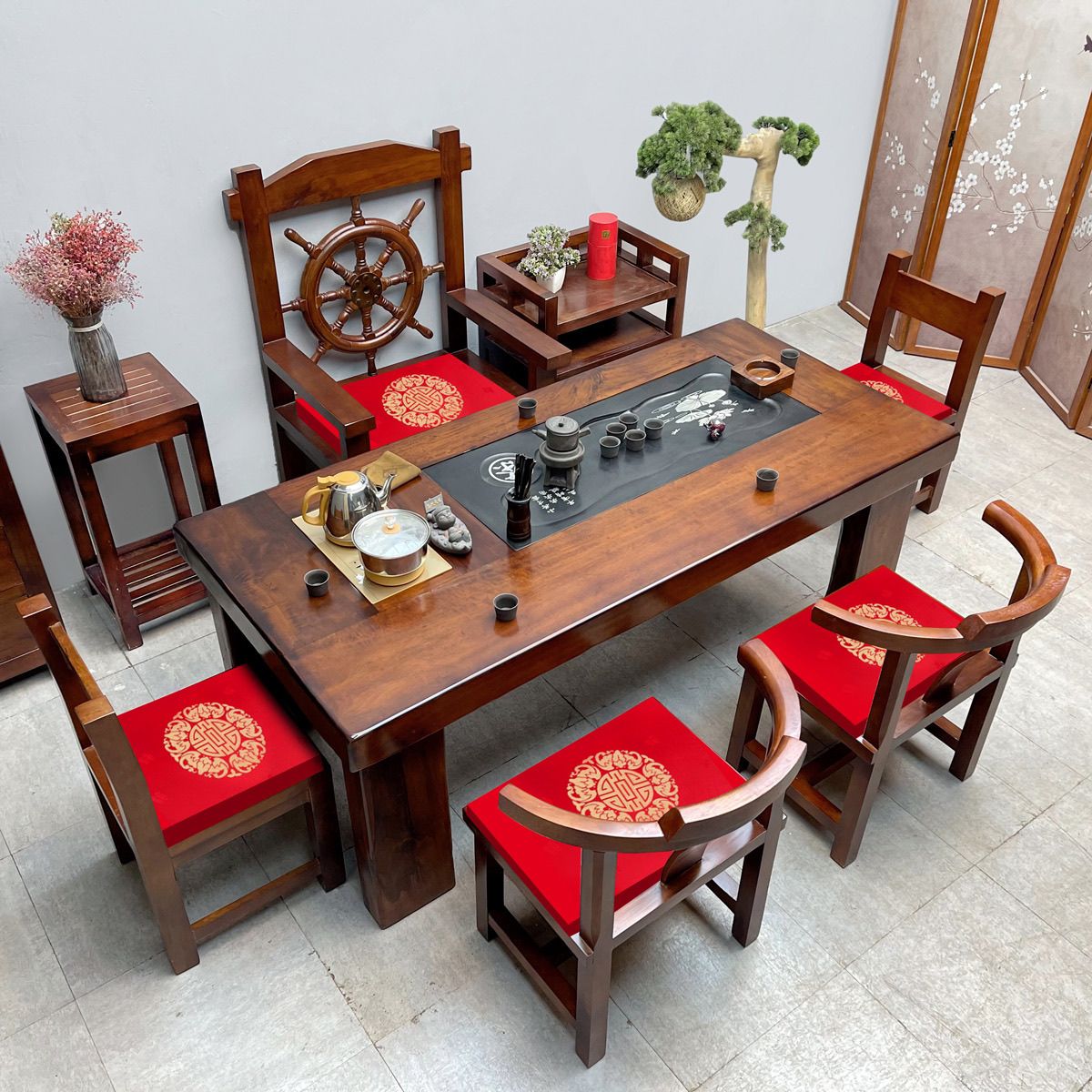 茶台实木老船木茶桌椅组合一桌五椅茶几泡茶桌子烧水壶一体办公室