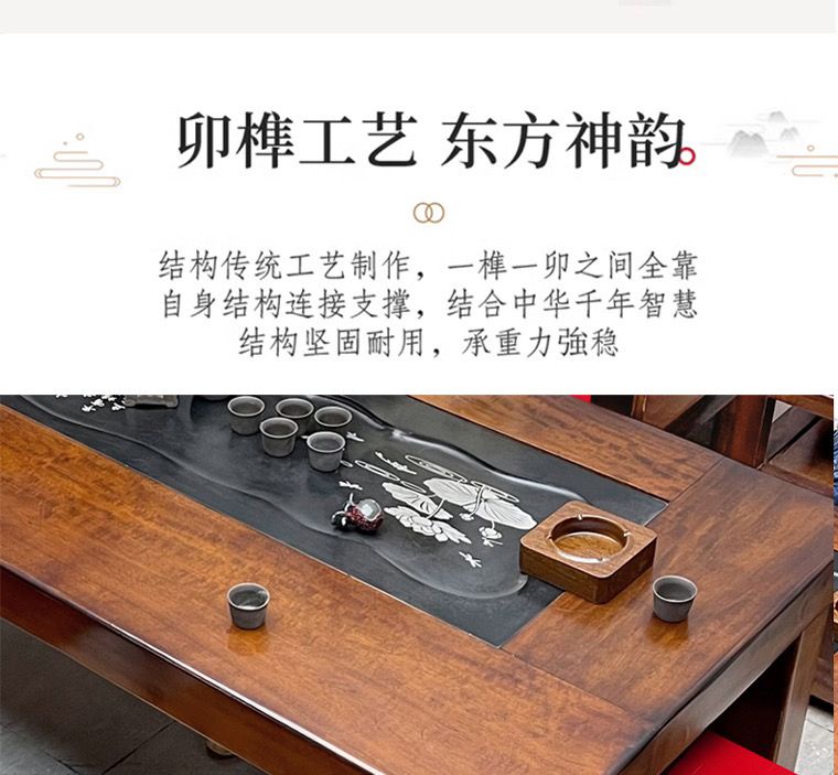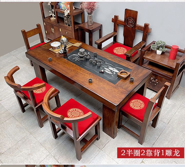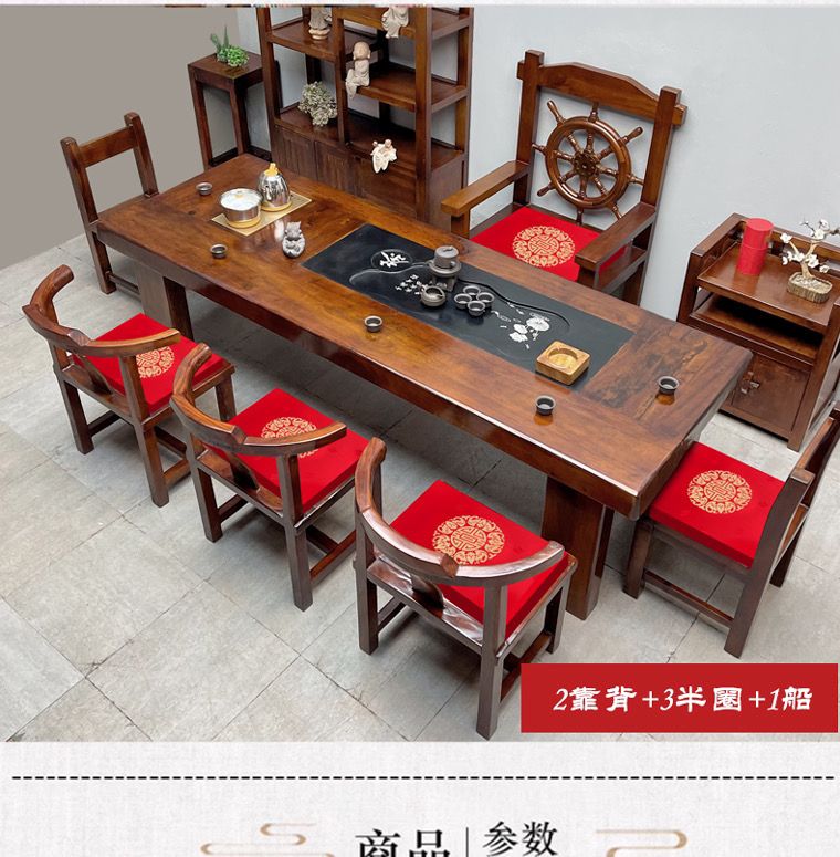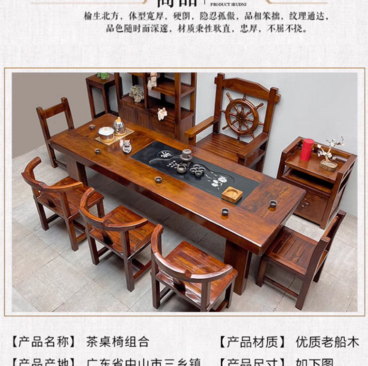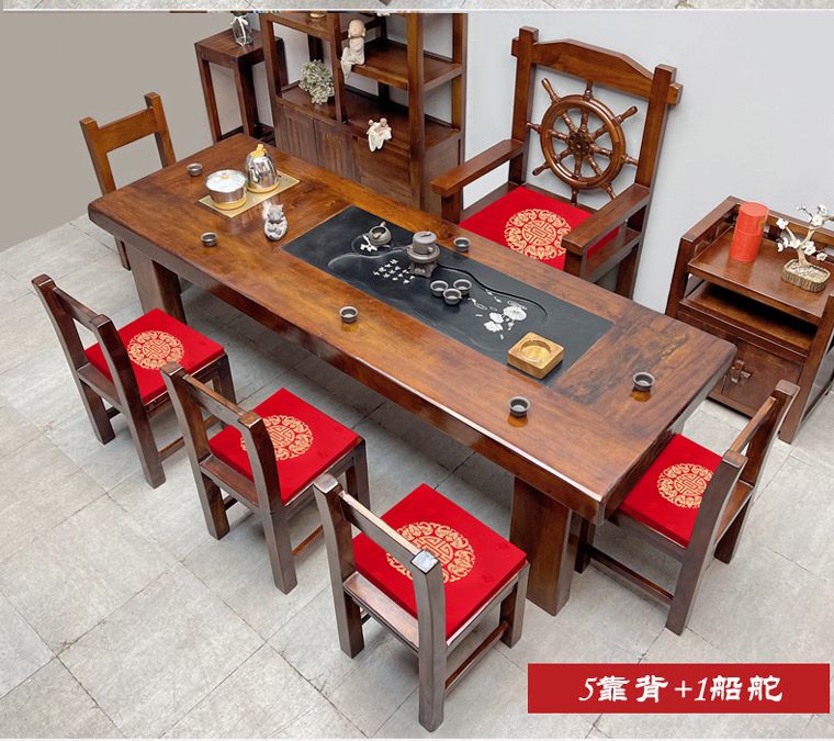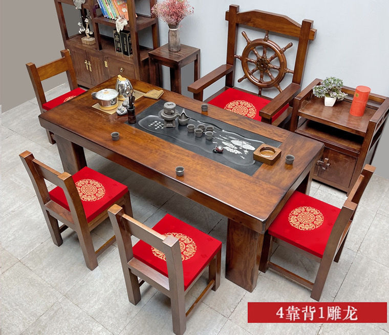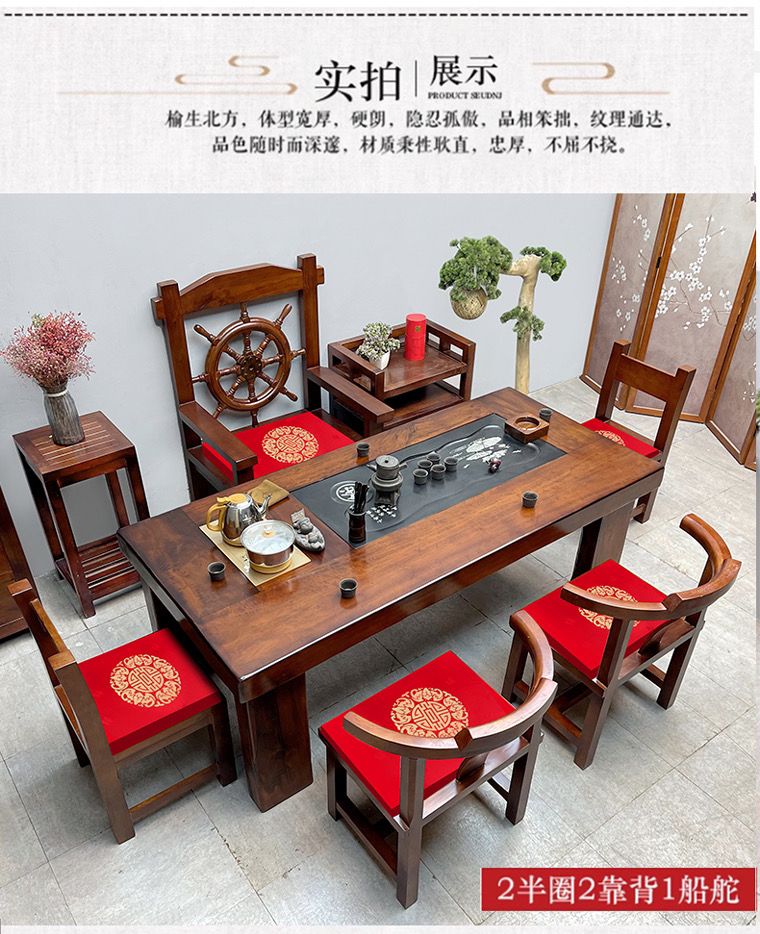 茶台实木老船木茶桌椅组合一桌五椅茶几泡茶桌子烧水壶一体办公室