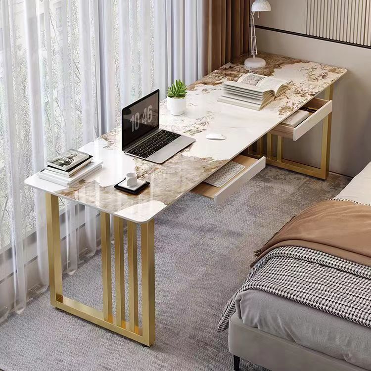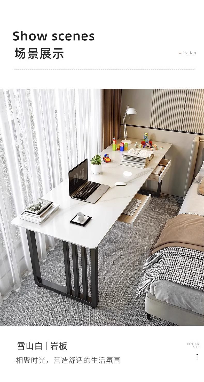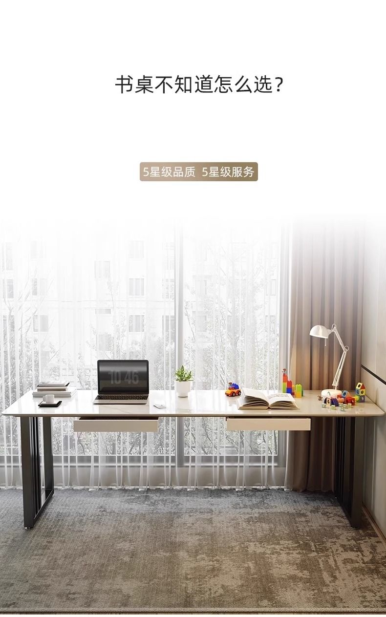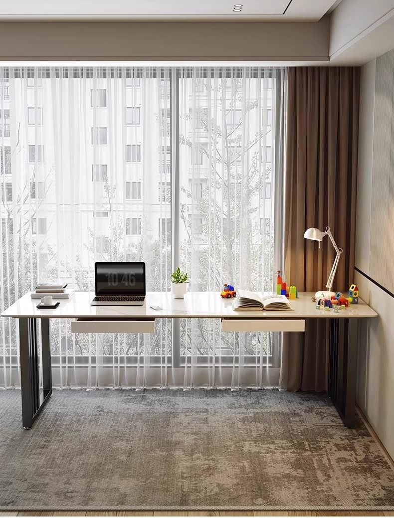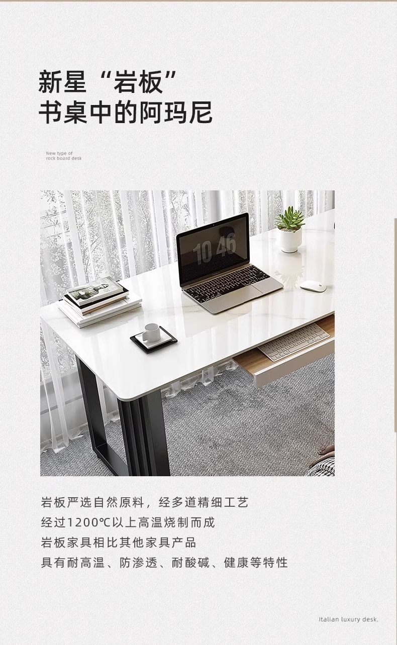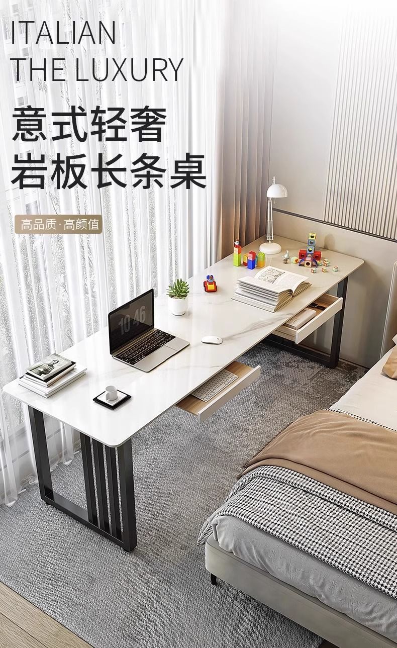 轻奢家用岩板书桌/简约酒店双人办公电脑桌阳台窄条桌床边工作台