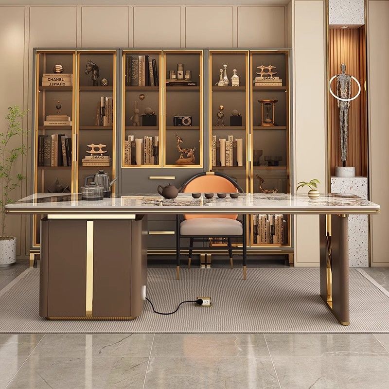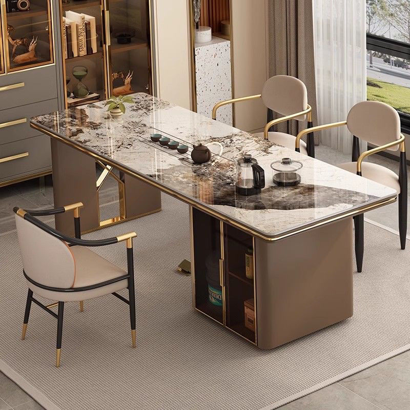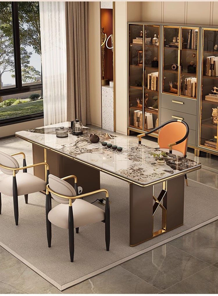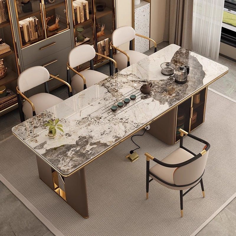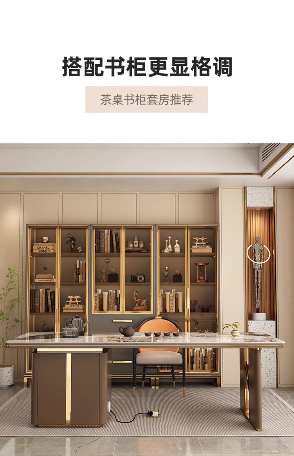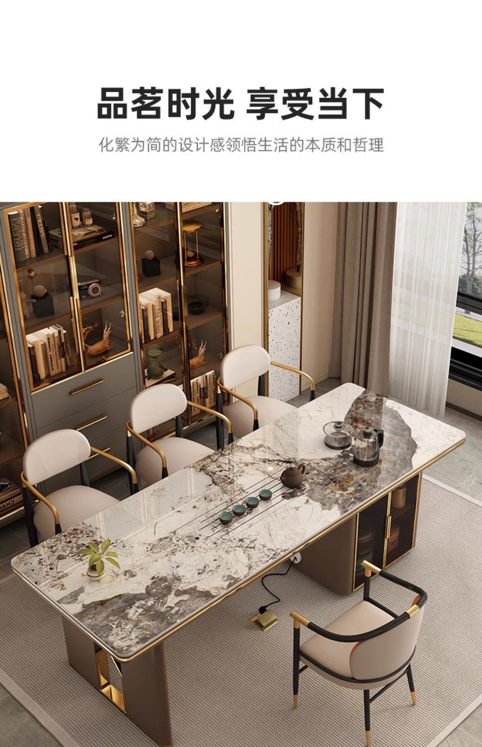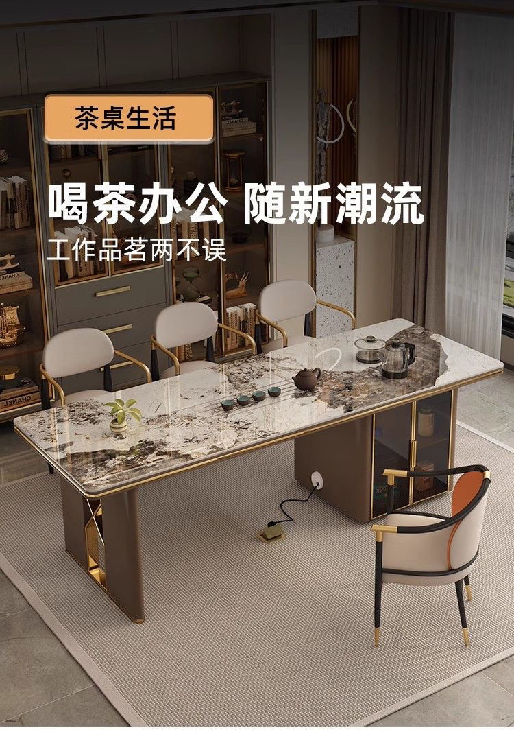 台灣公司魯班傢俱行歡迎您。註冊統編60015967 轻奢岩板茶台现代简约大板功夫泡茶桌套装一体办公室茶桌椅组合