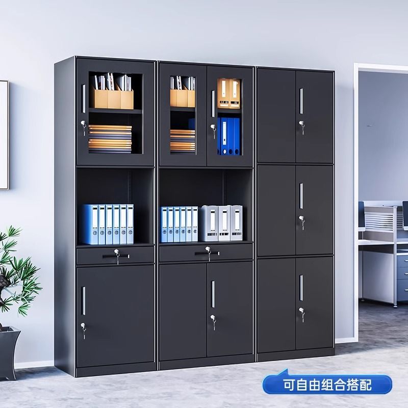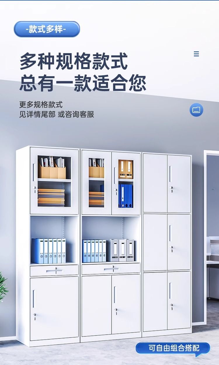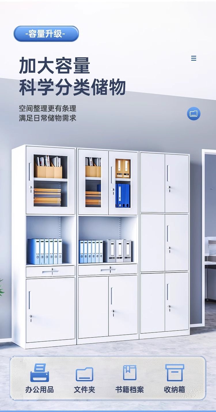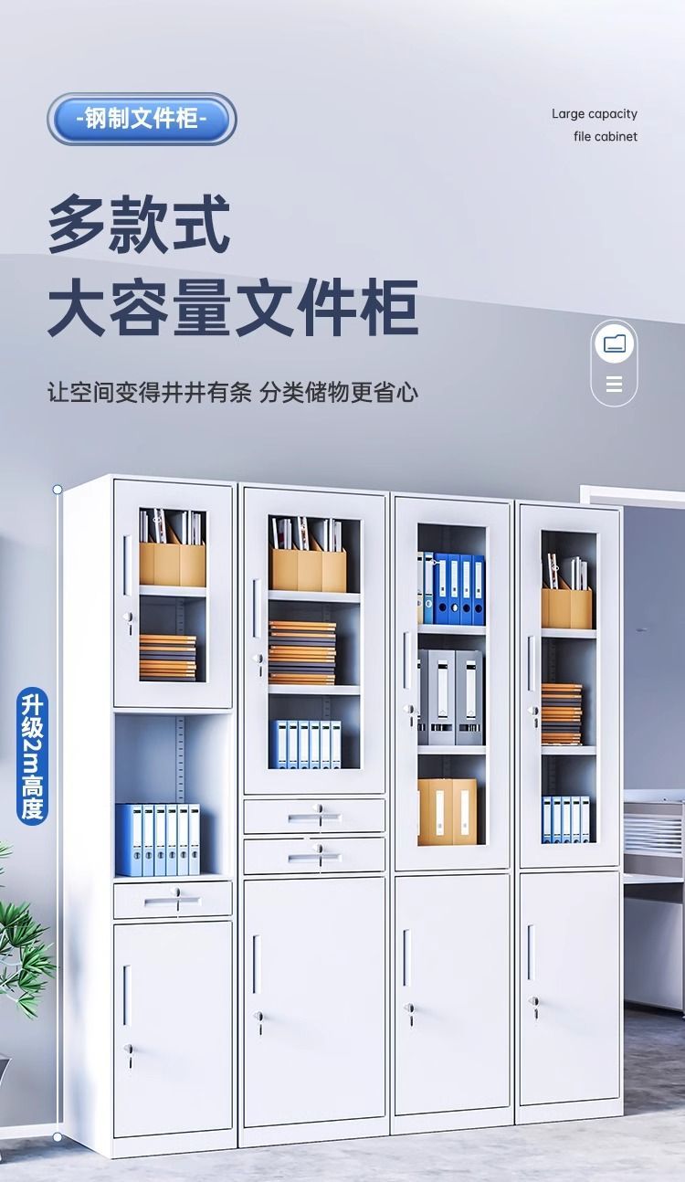 钢制落地家用夹缝单门收纳柜办公室文件柜资料书柜带锁储物带抽屉
