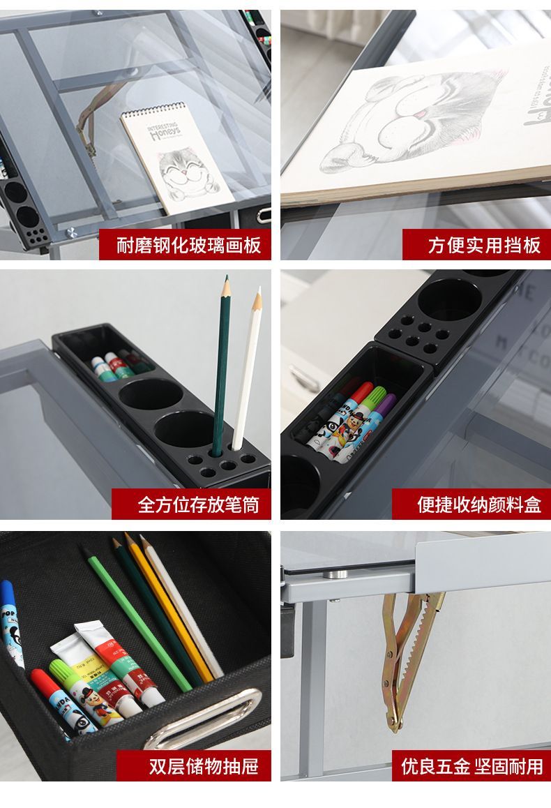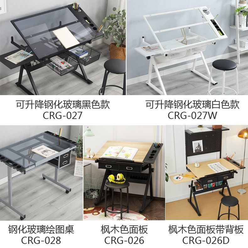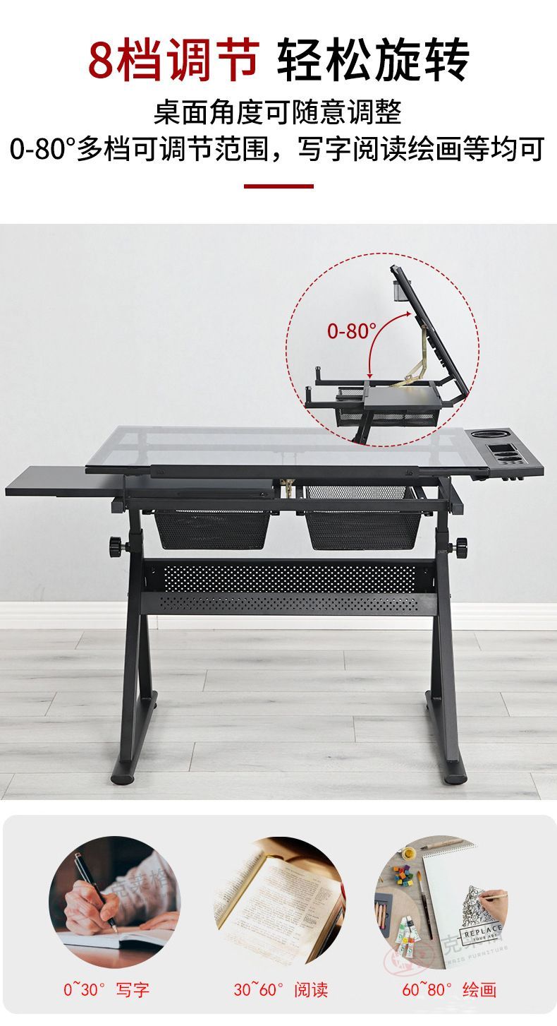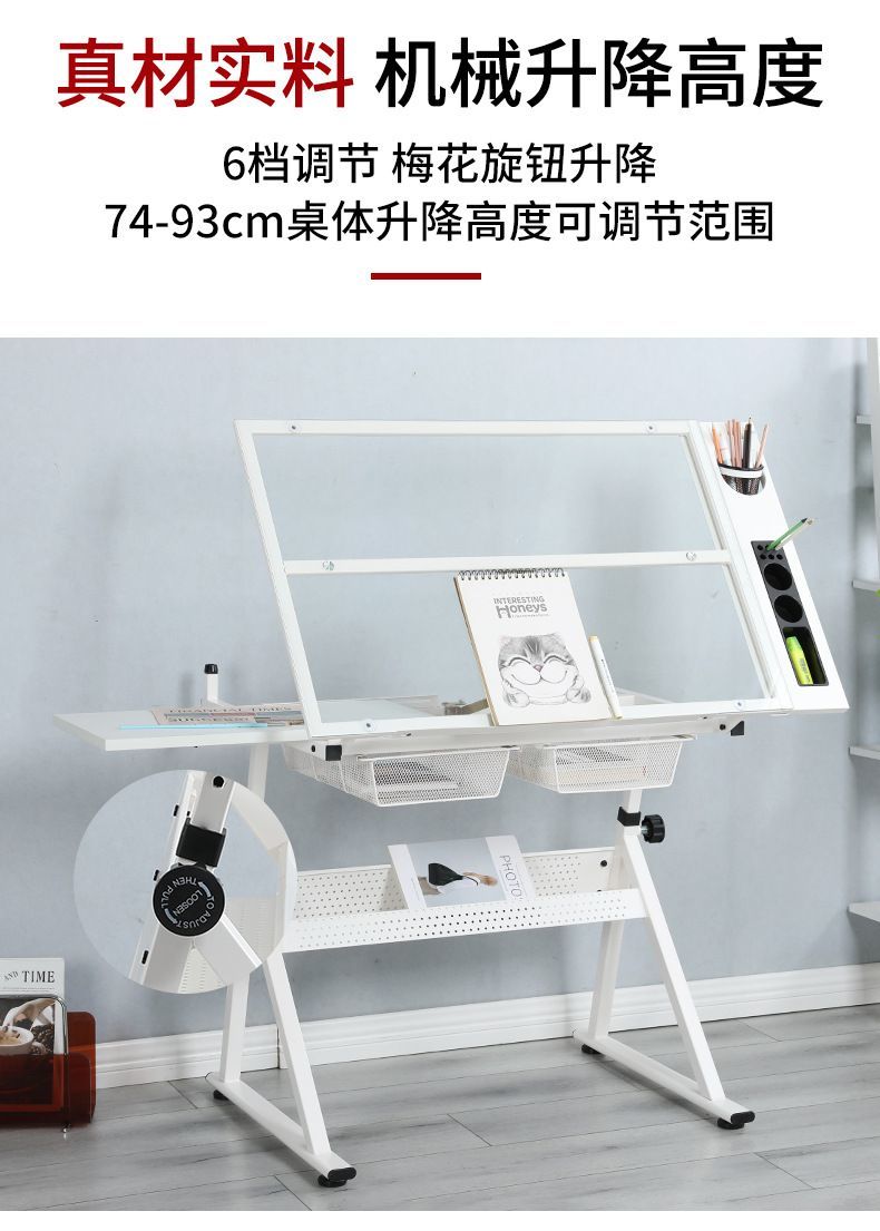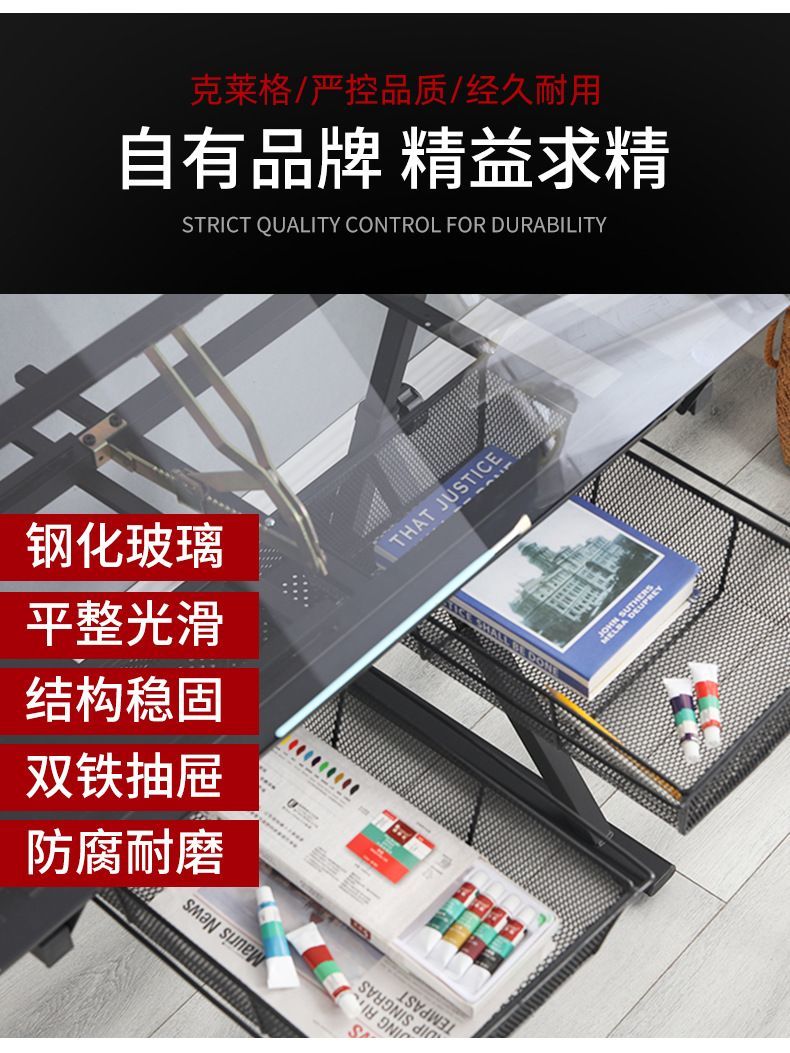 钢化玻璃可升降绘图桌美术绘画桌家用学习桌升降台简易设计工作台