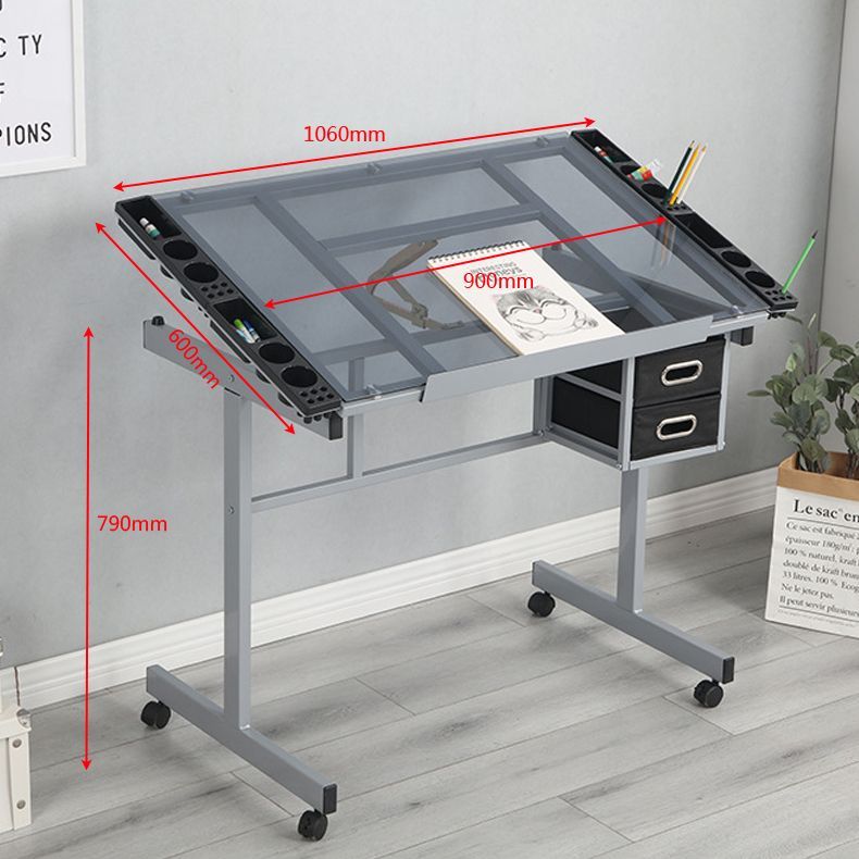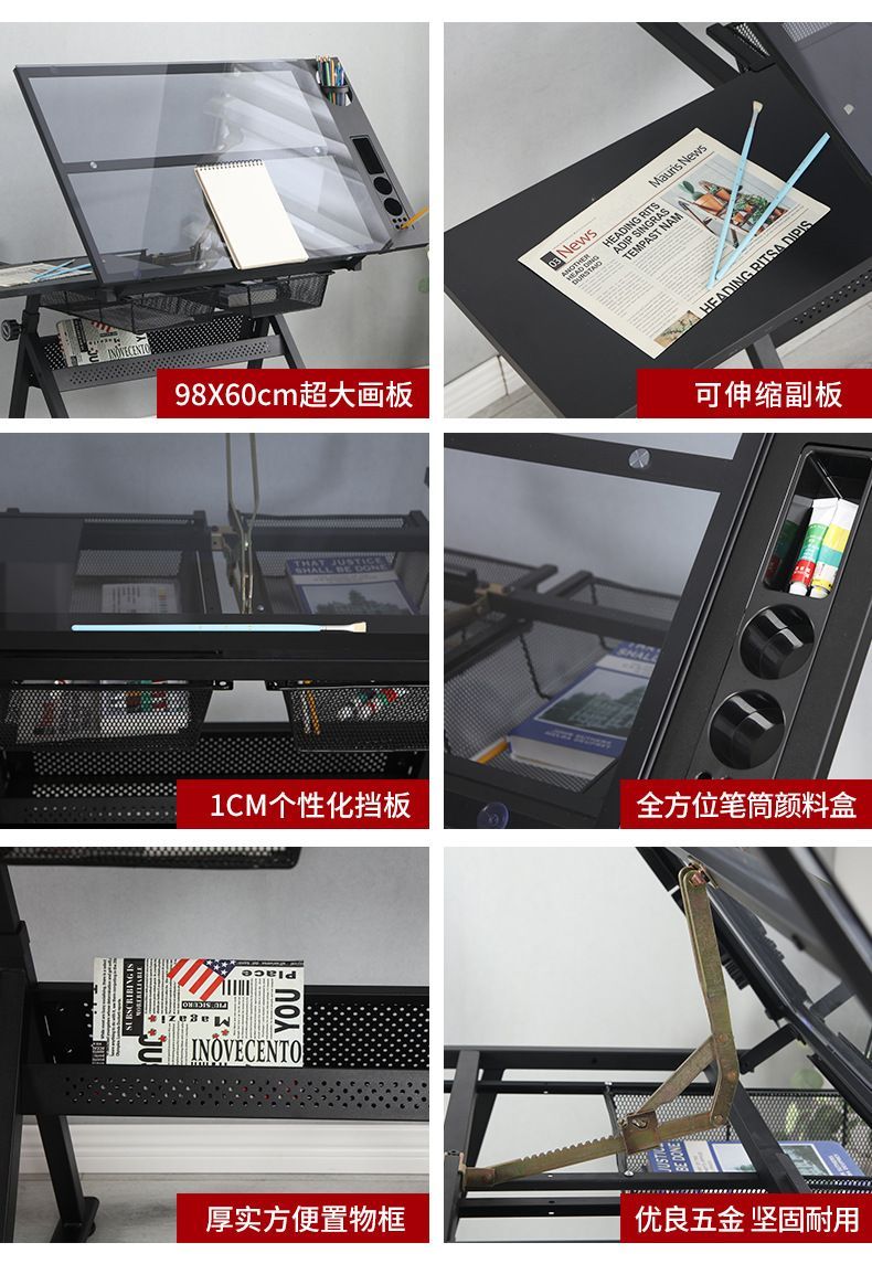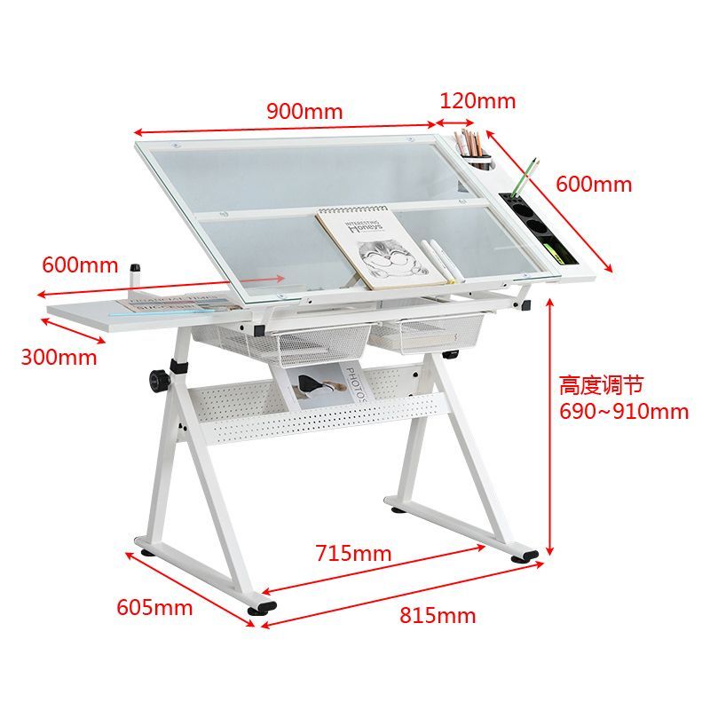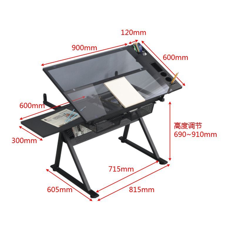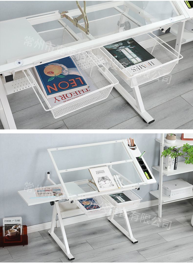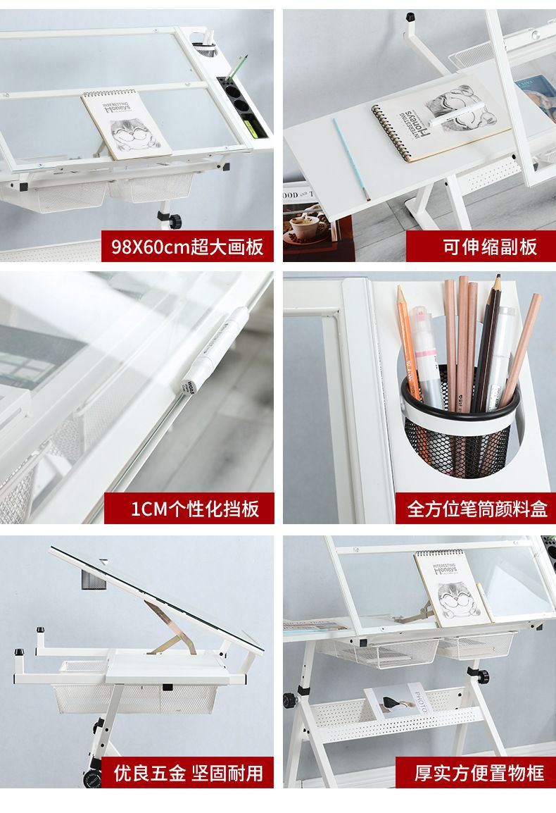 钢化玻璃可升降绘图桌美术绘画桌家用学习桌升降台简易设计工作台