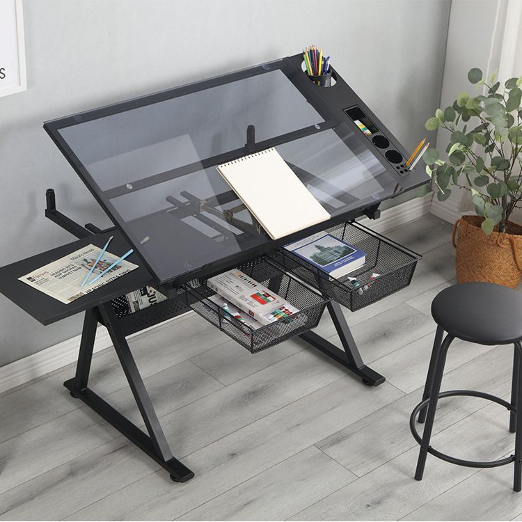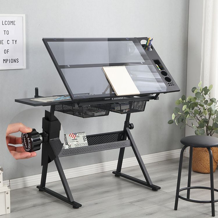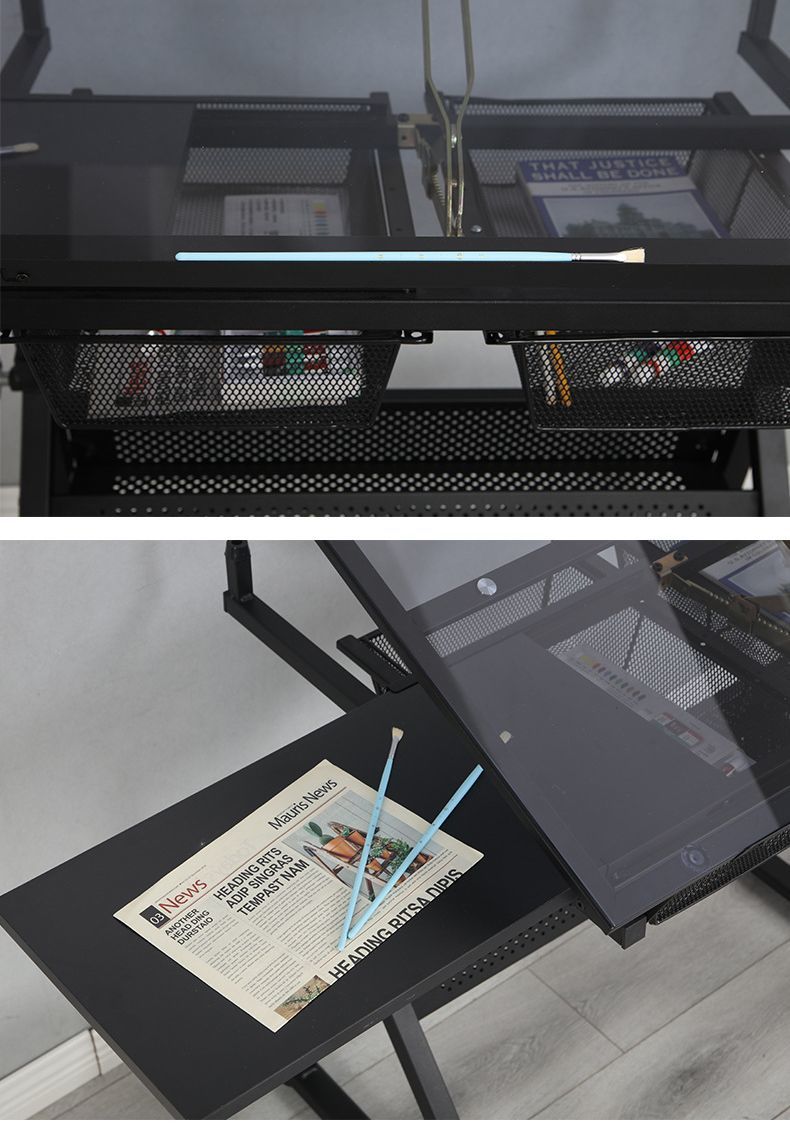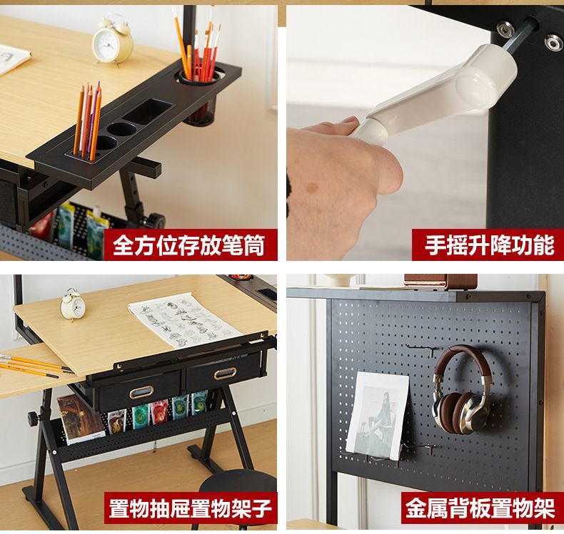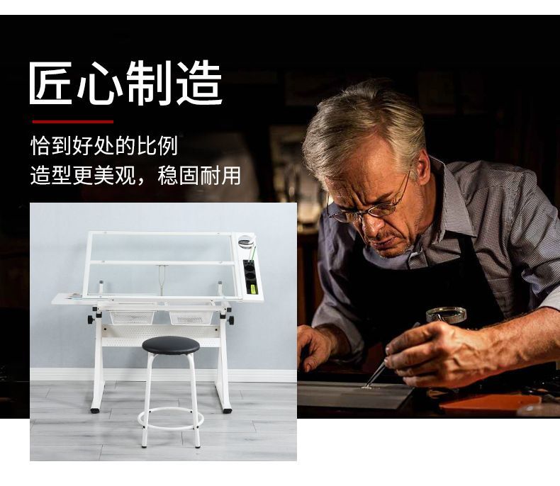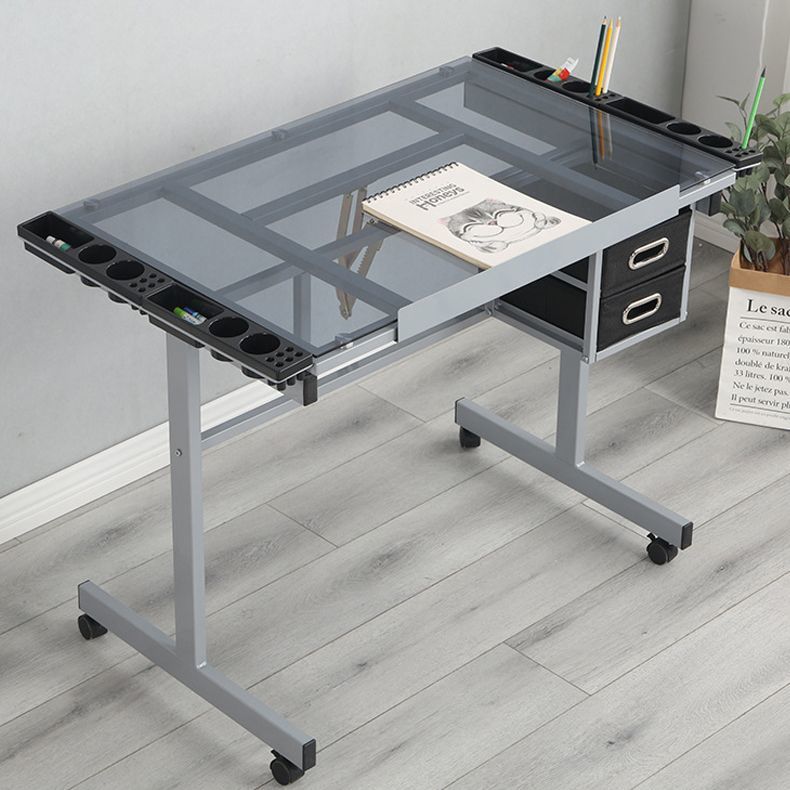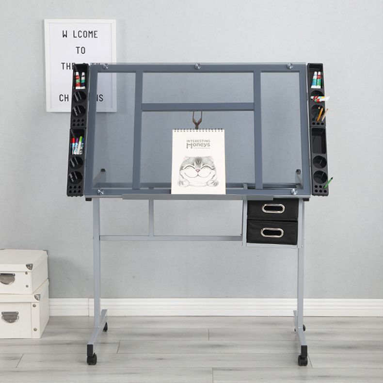 钢化玻璃可升降绘图桌美术绘画桌家用学习桌升降台简易设计工作台