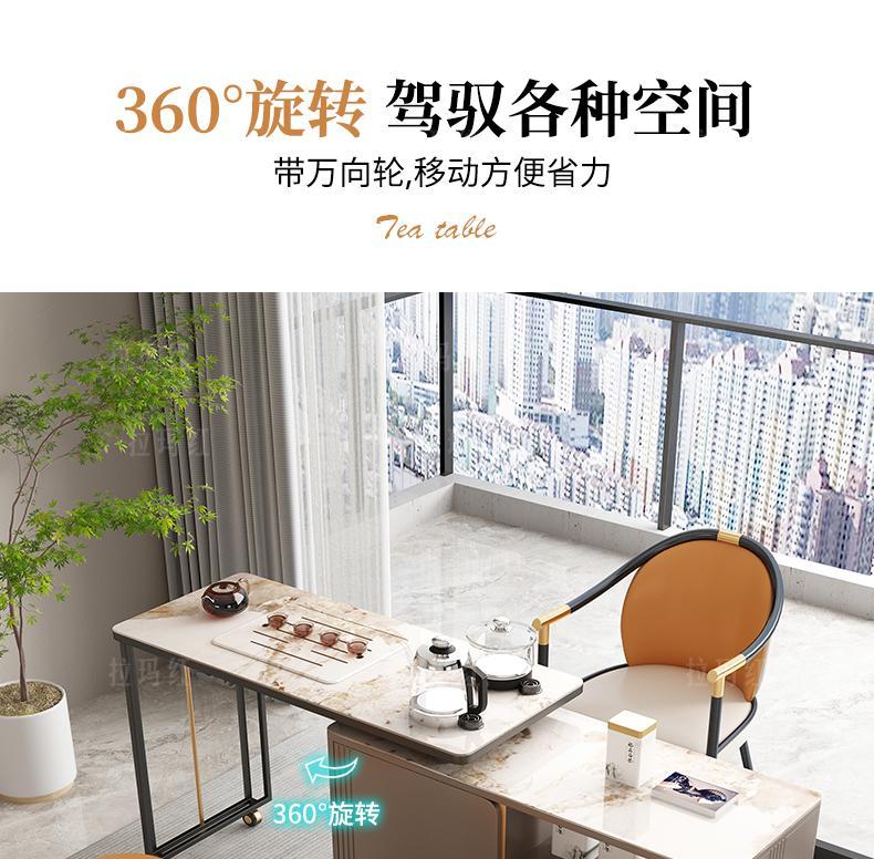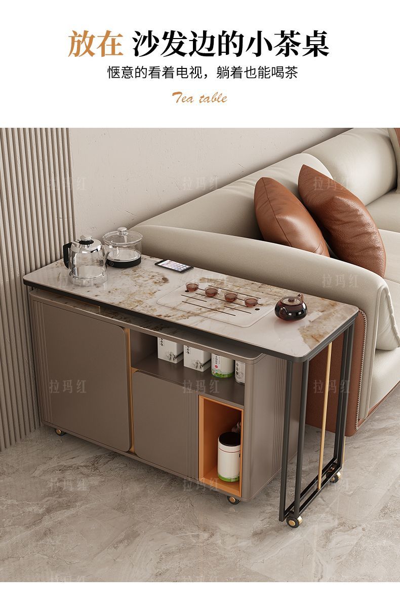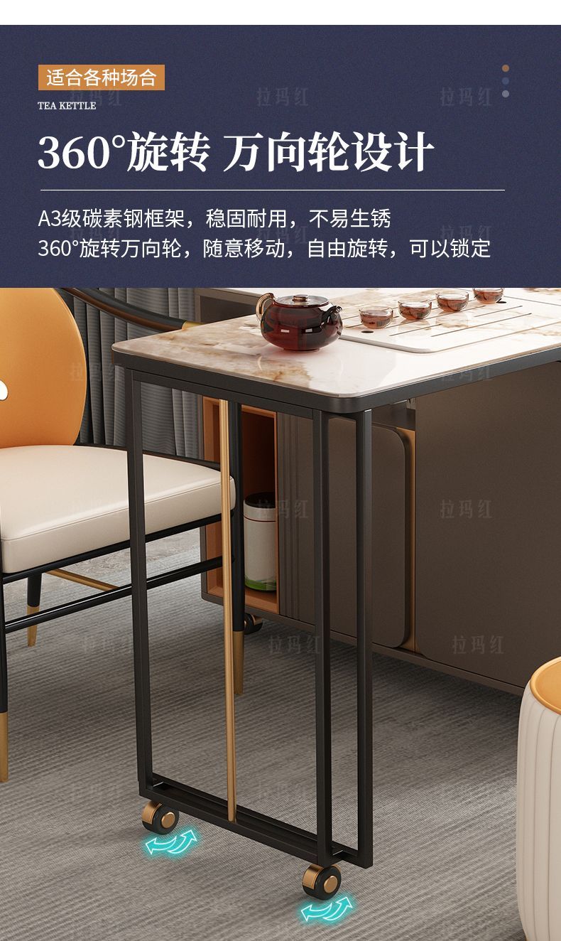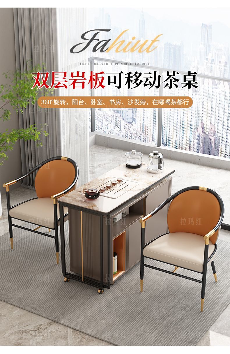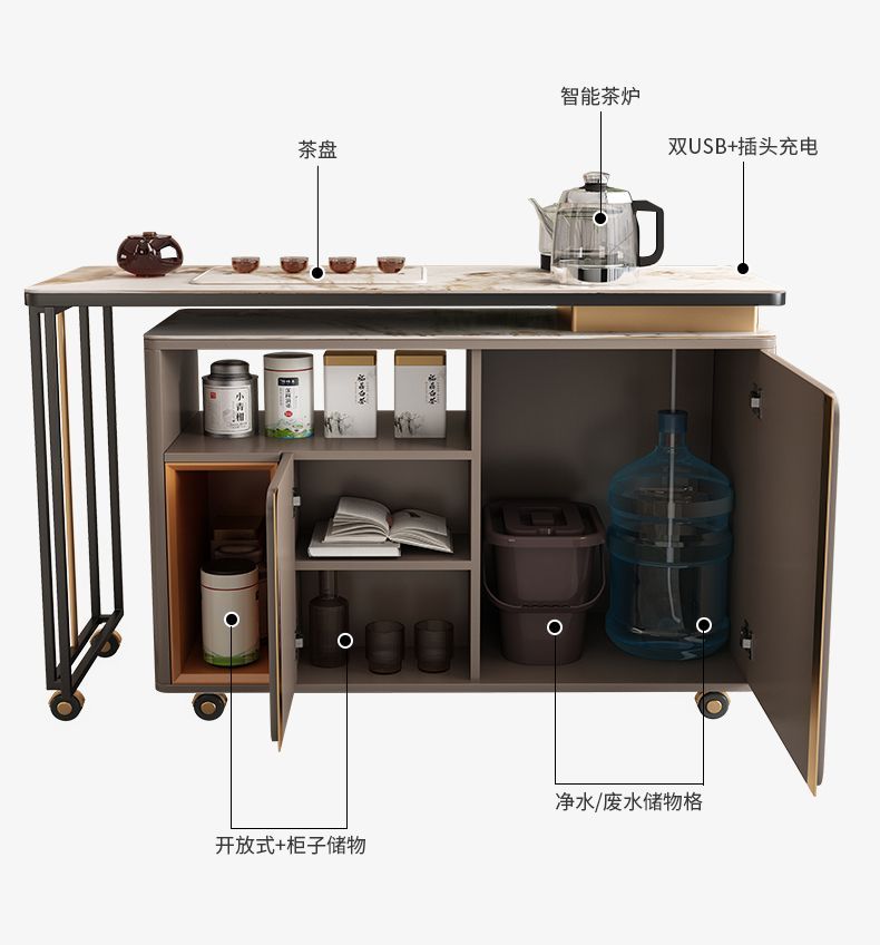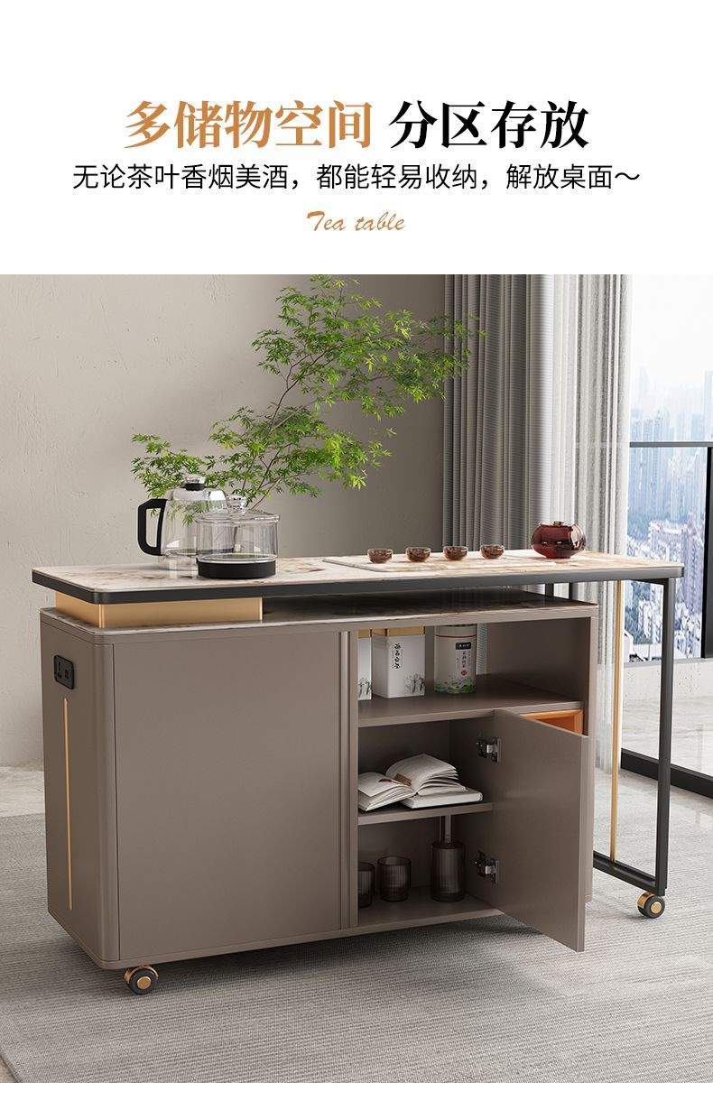 阳台可移动岩板茶台家用烧水壶一体的茶桌现代带轮茶几轻奢小茶车