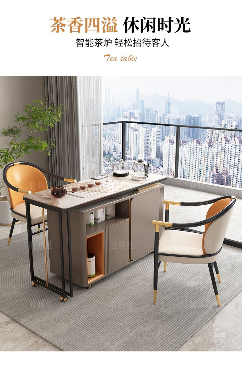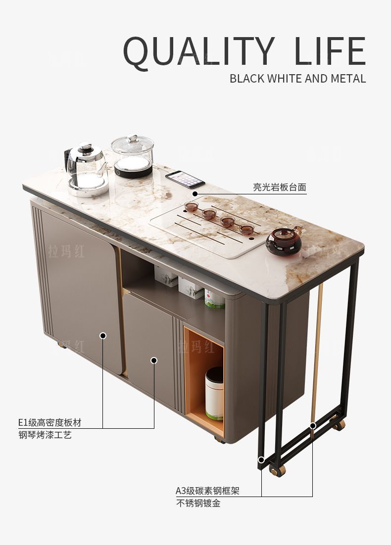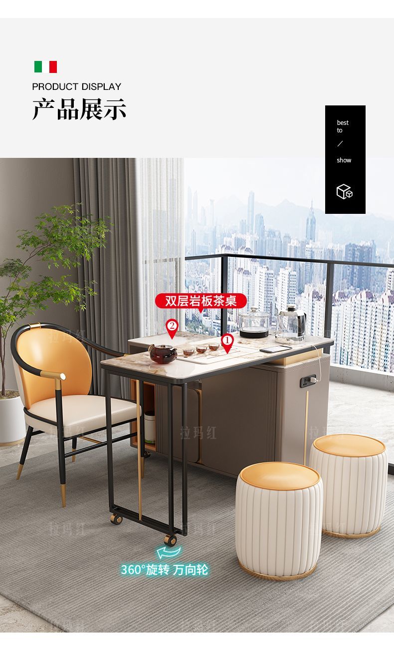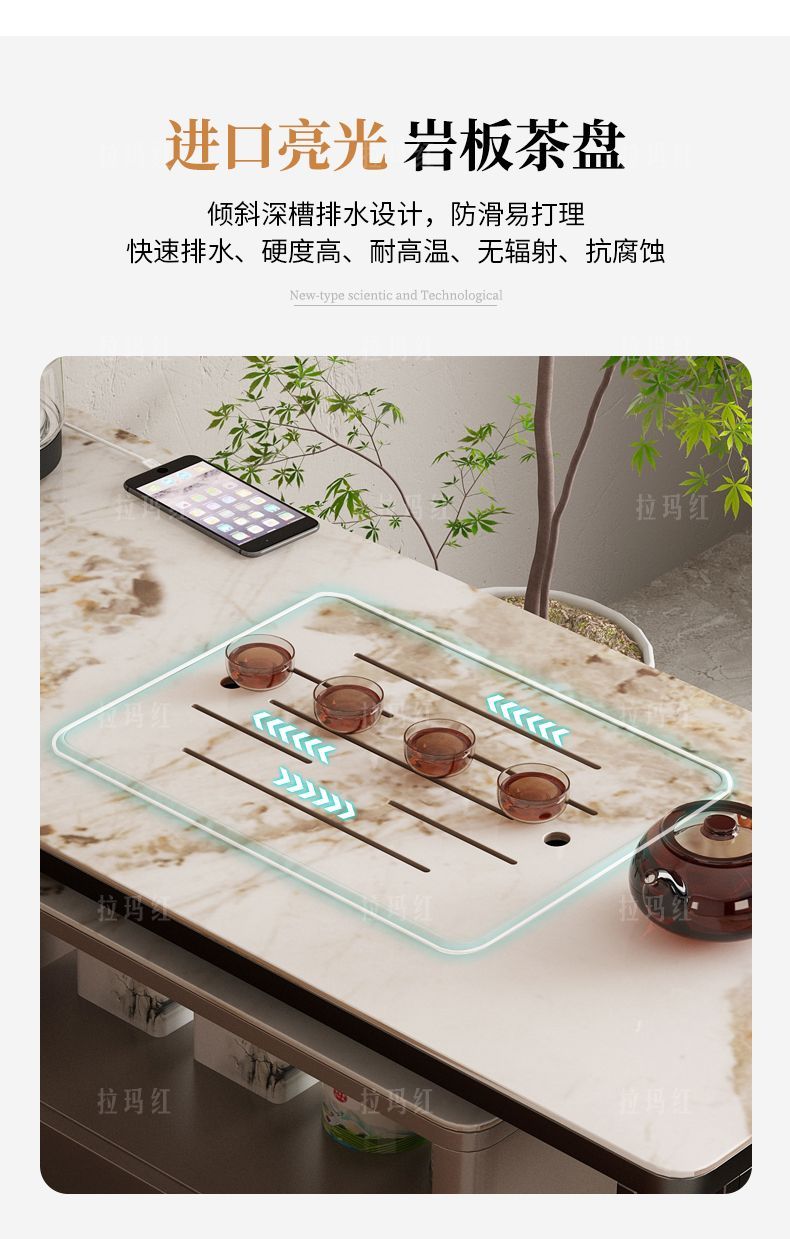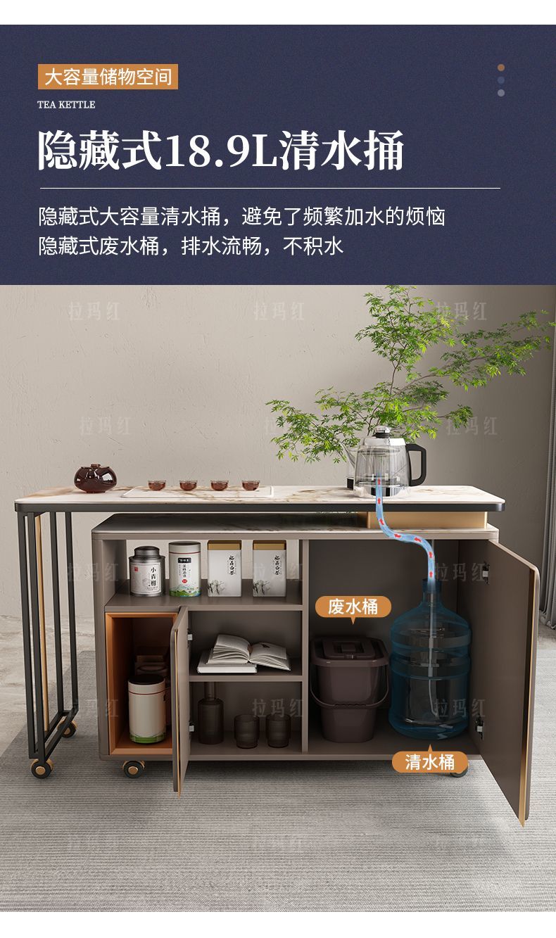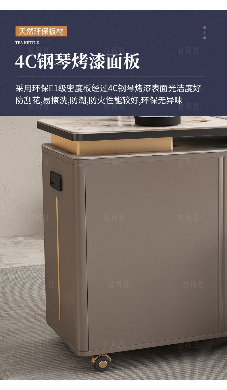 阳台可移动岩板茶台家用烧水壶一体的茶桌现代带轮茶几轻奢小茶车