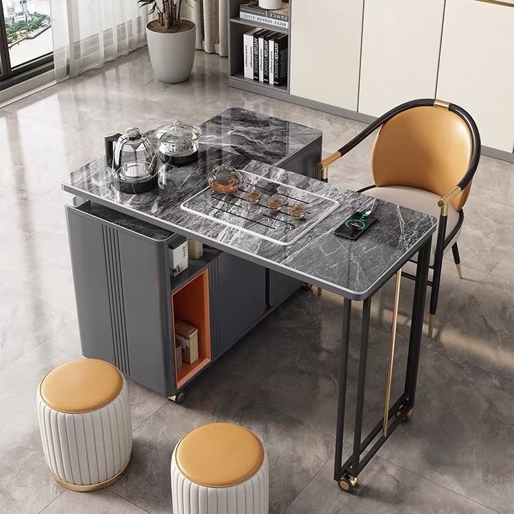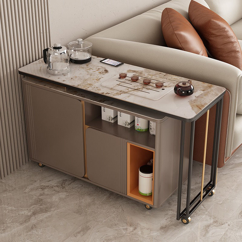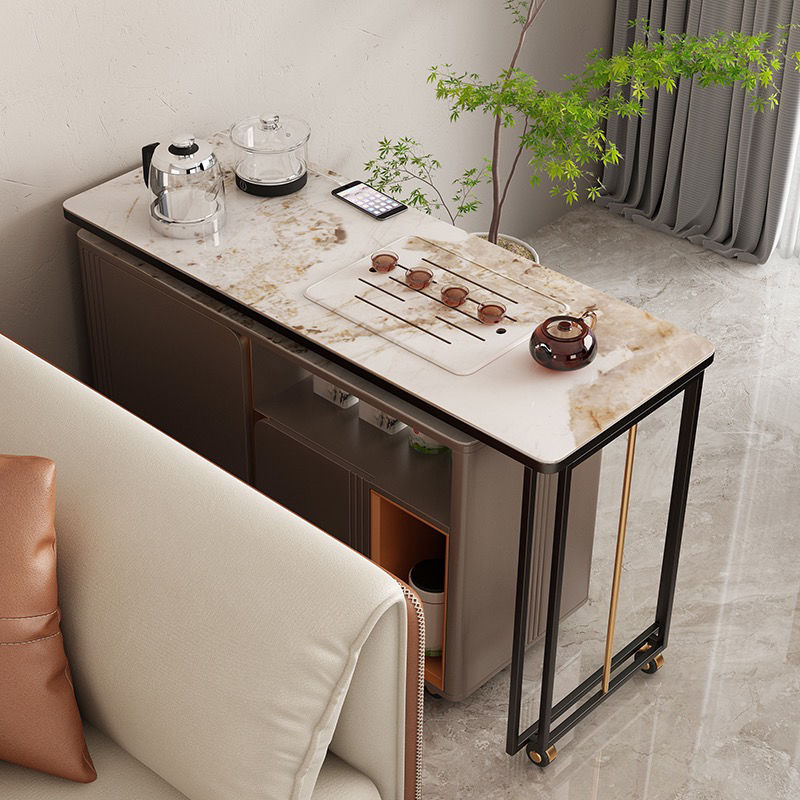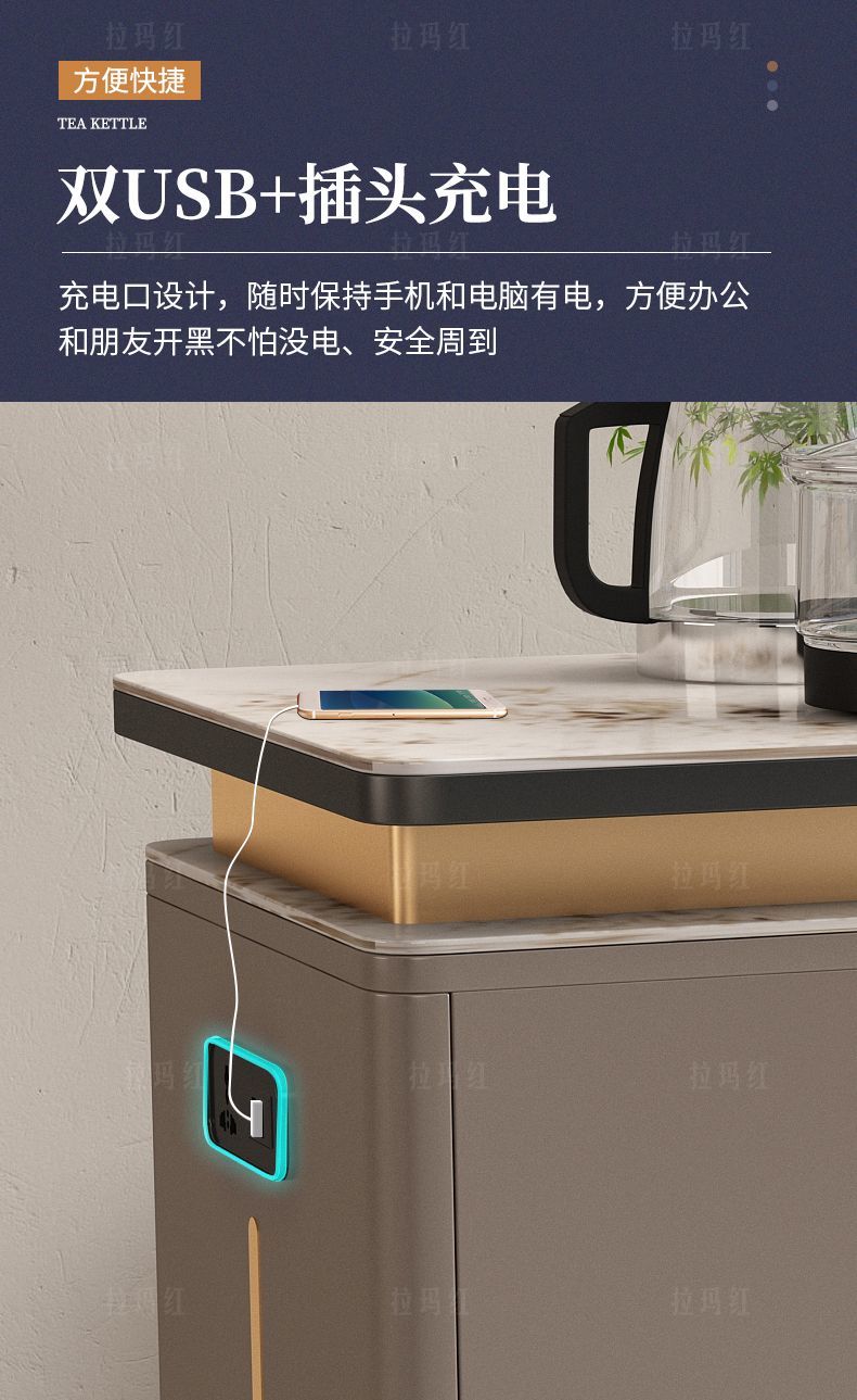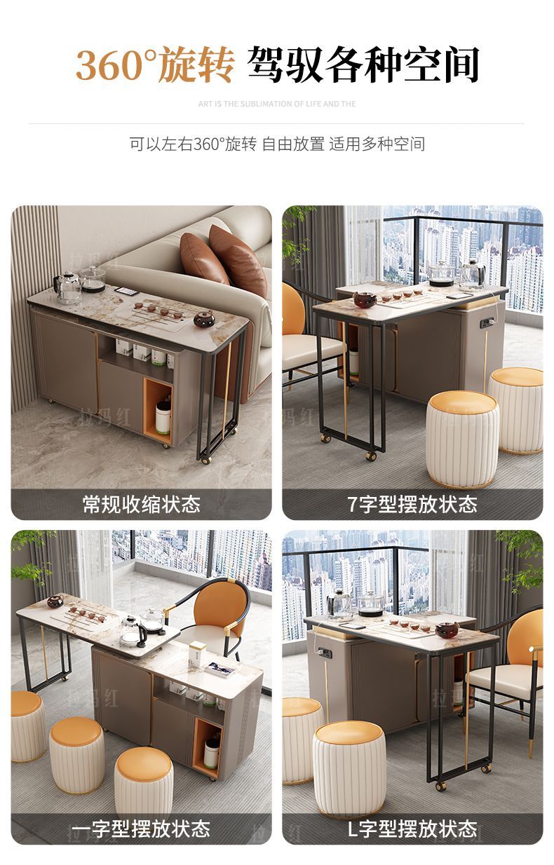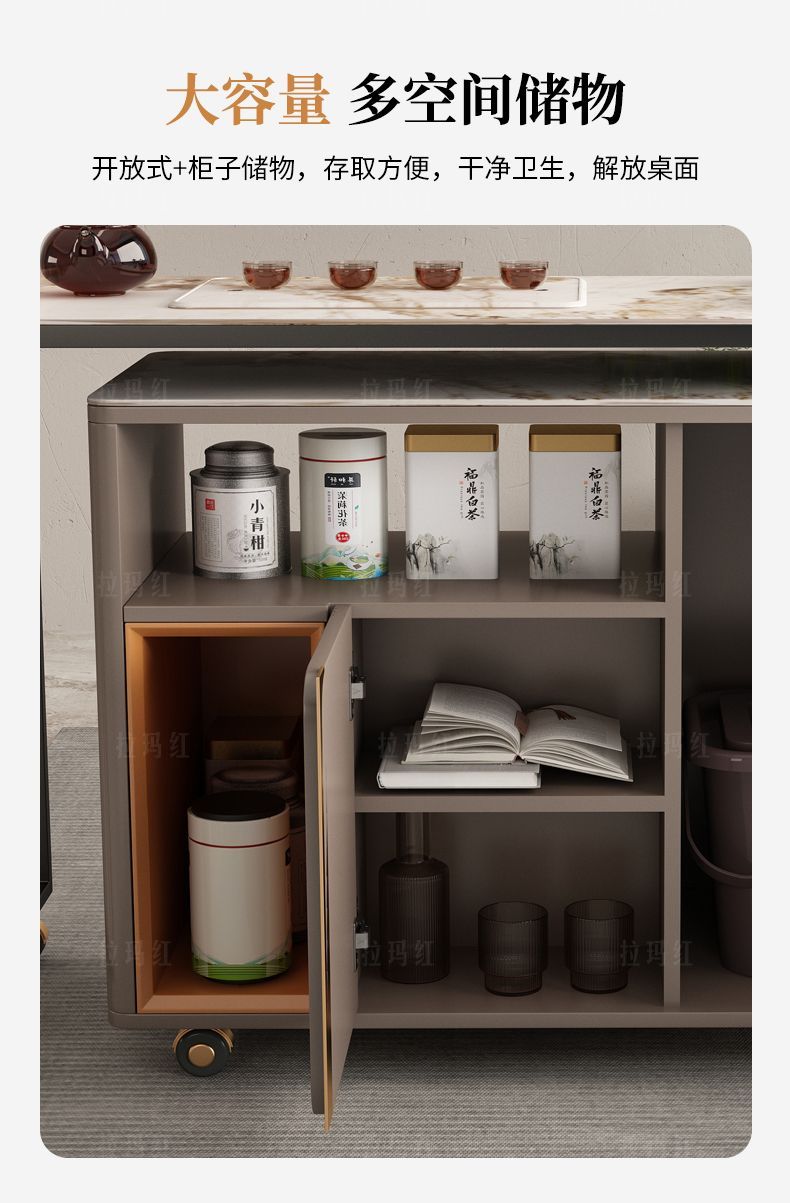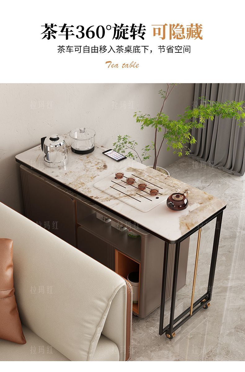 阳台可移动岩板茶台家用烧水壶一体的茶桌现代带轮茶几轻奢小茶车