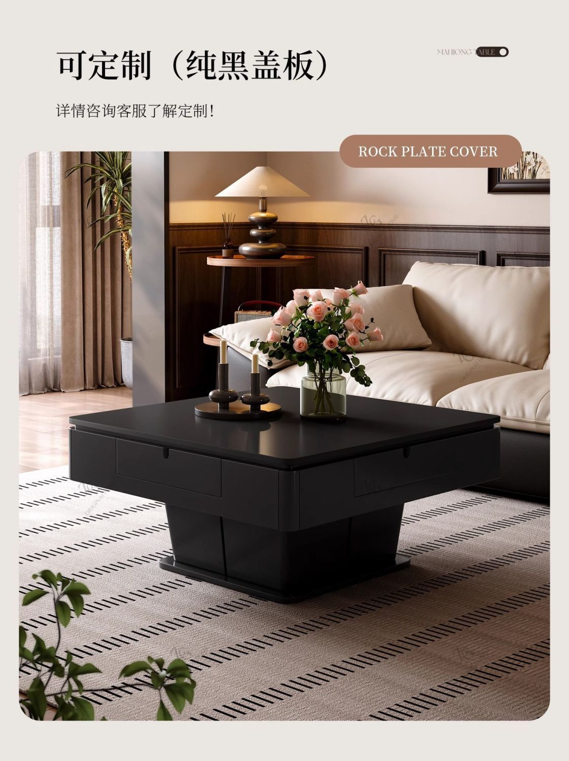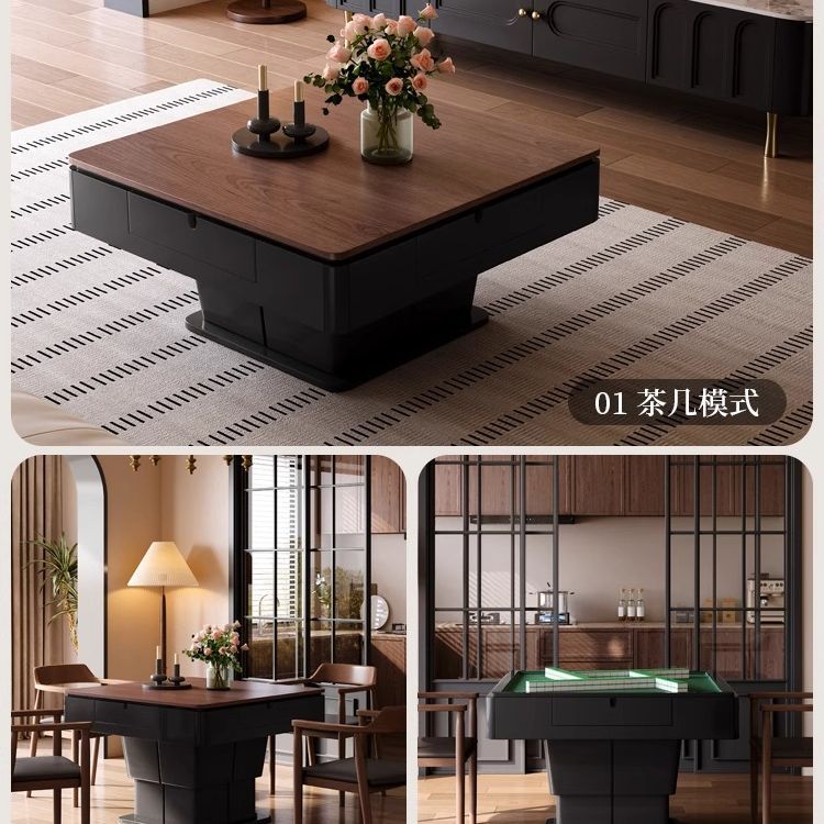 麻將桌餐桌茶几一體中古風輕奢多功能升降家用全自動麻將機