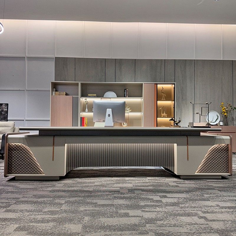 轻奢高端总裁桌办公桌老板桌简约现代大班台办公室桌经理桌带灯