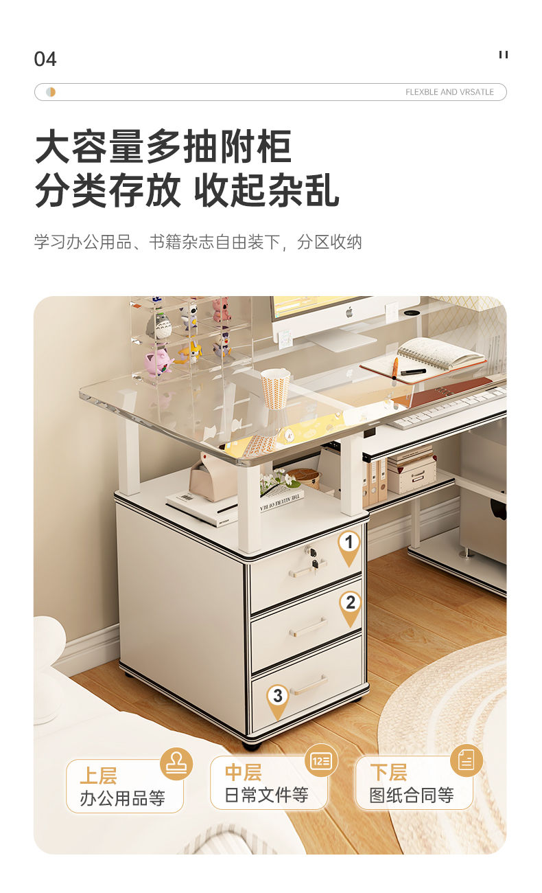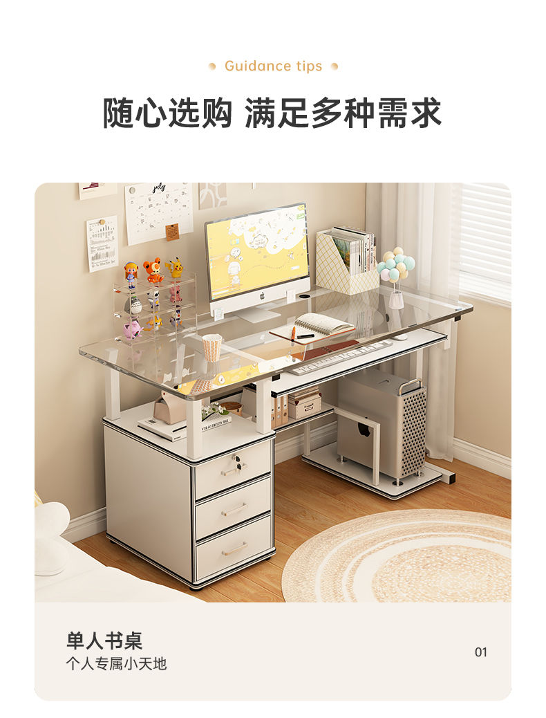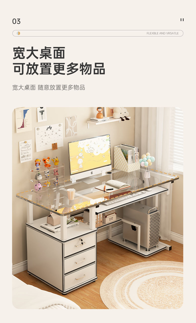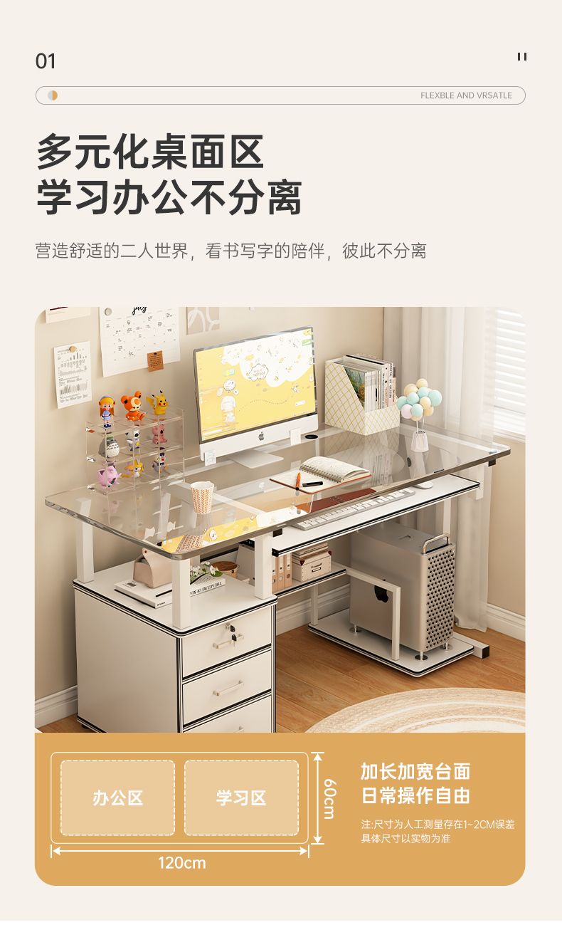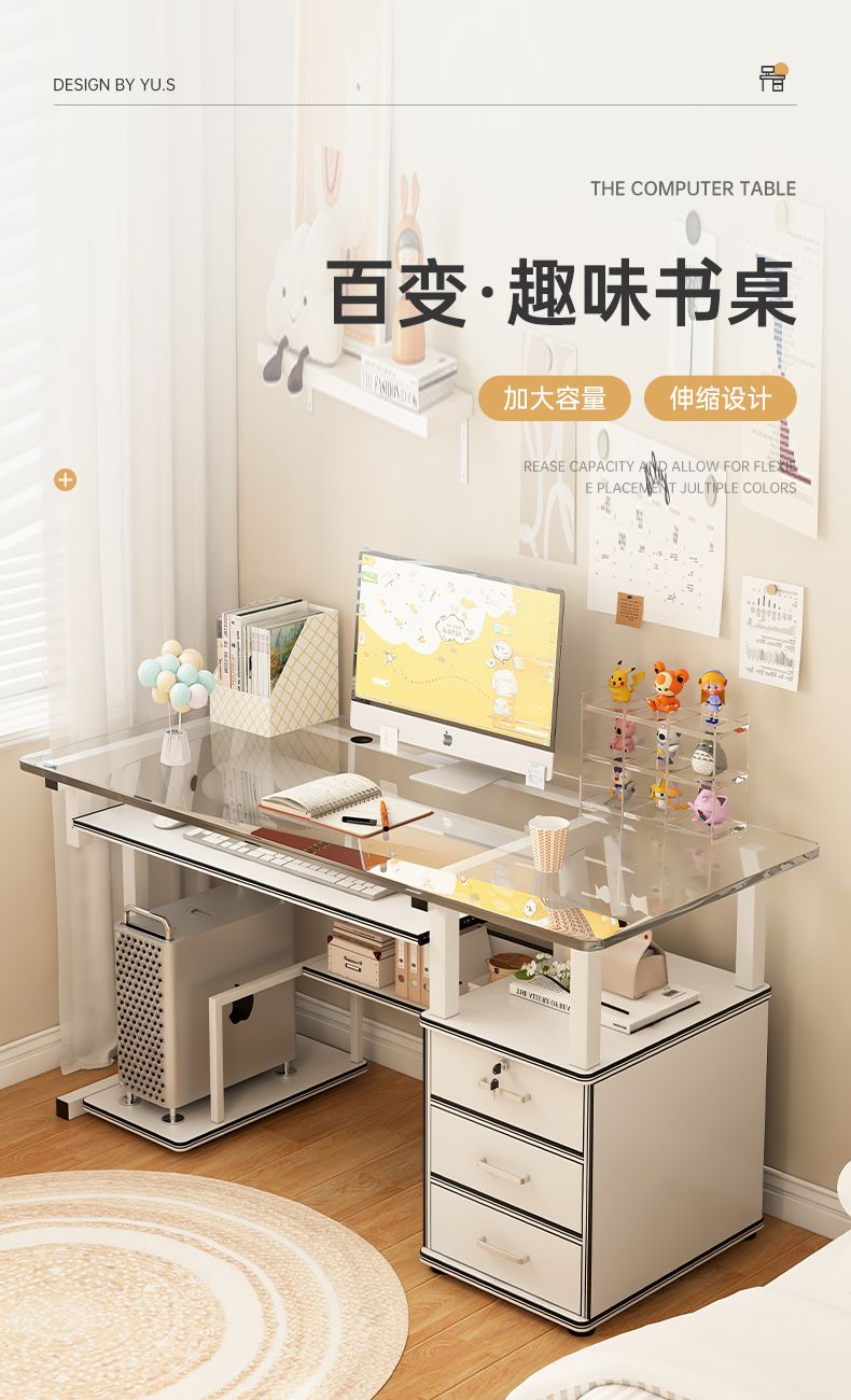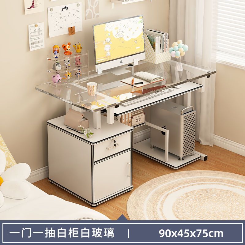 ins透明加厚钢化玻璃电脑台式桌家用客厅房间双层储物桌办公桌