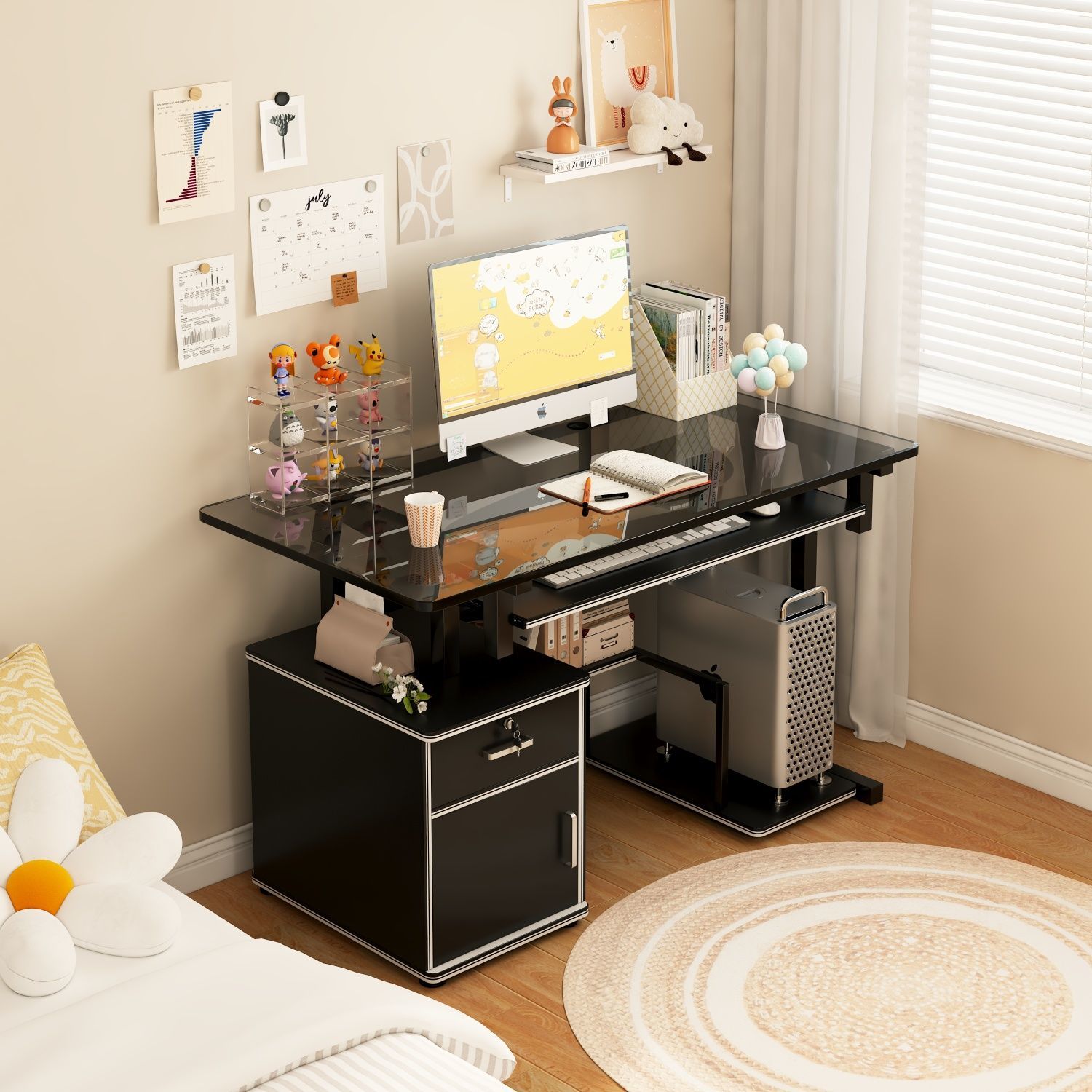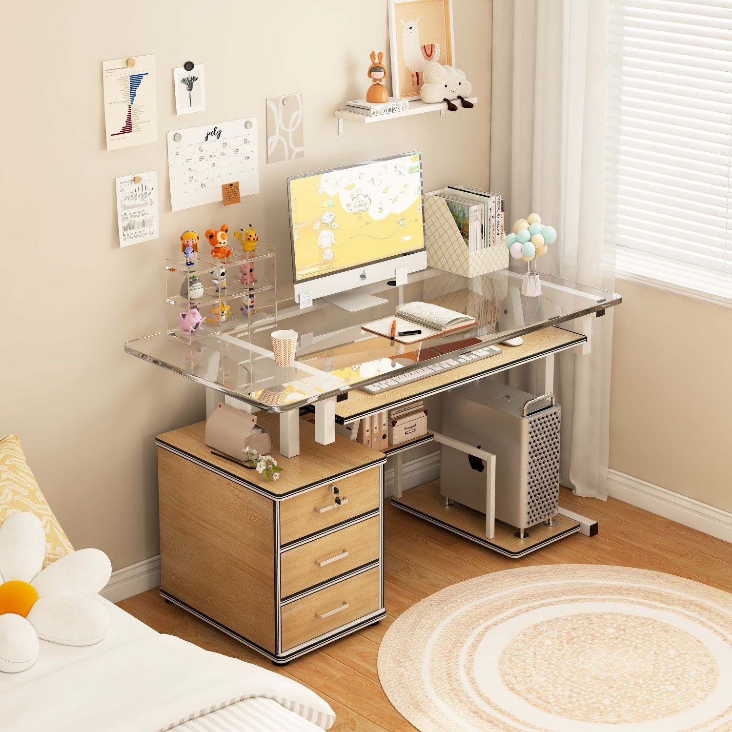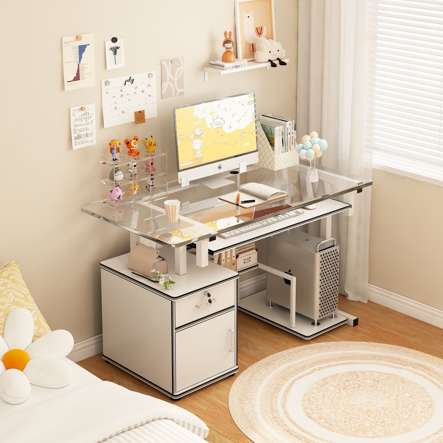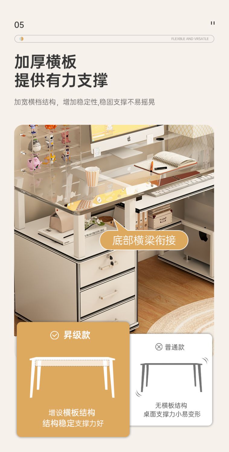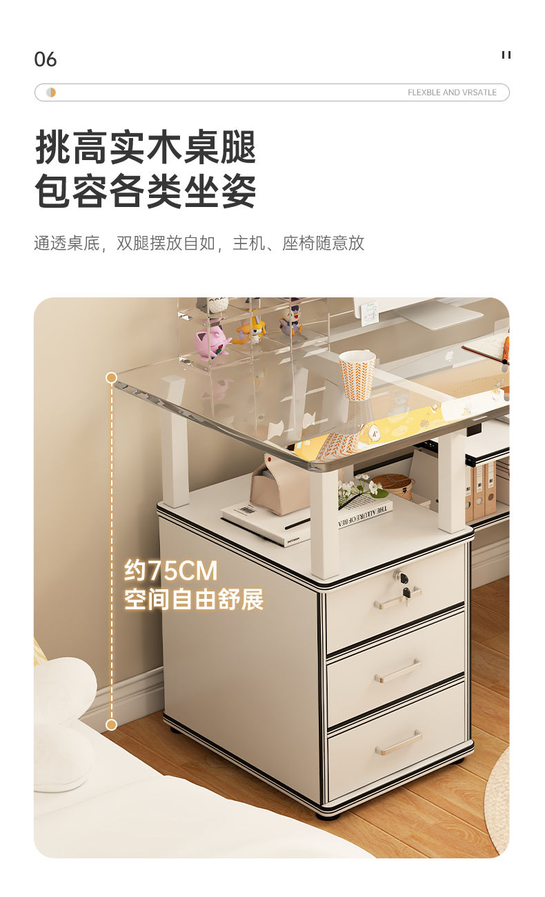 ins透明加厚钢化玻璃电脑台式桌家用客厅房间双层储物桌办公桌