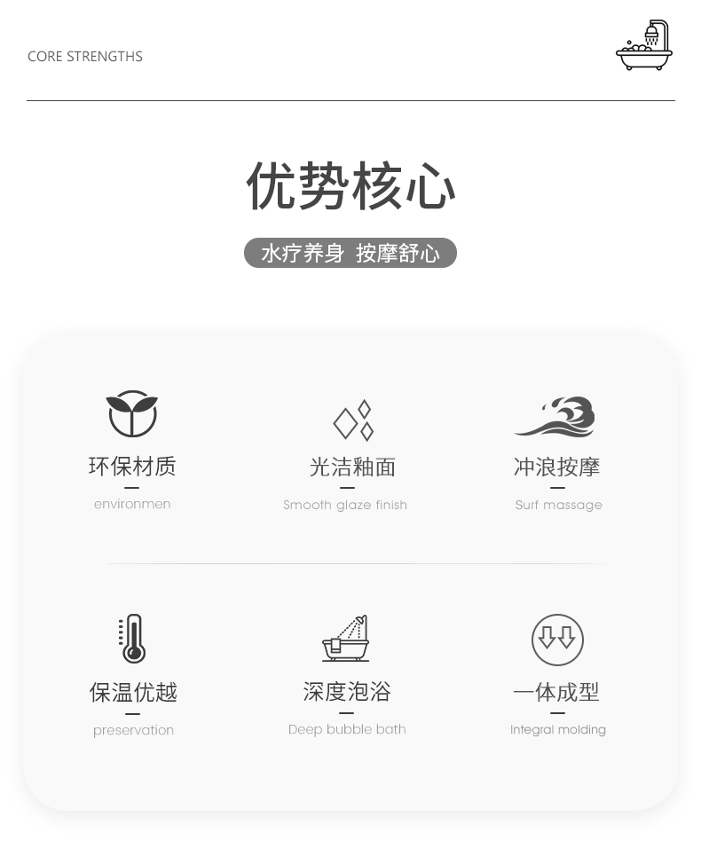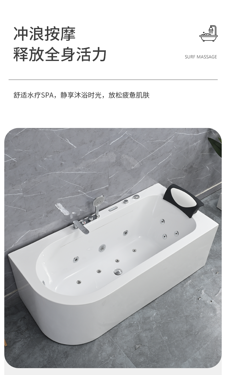 亚克力大瀑布智能恒温冲浪按摩浴缸卫生间家用成人小户型扇形浴池