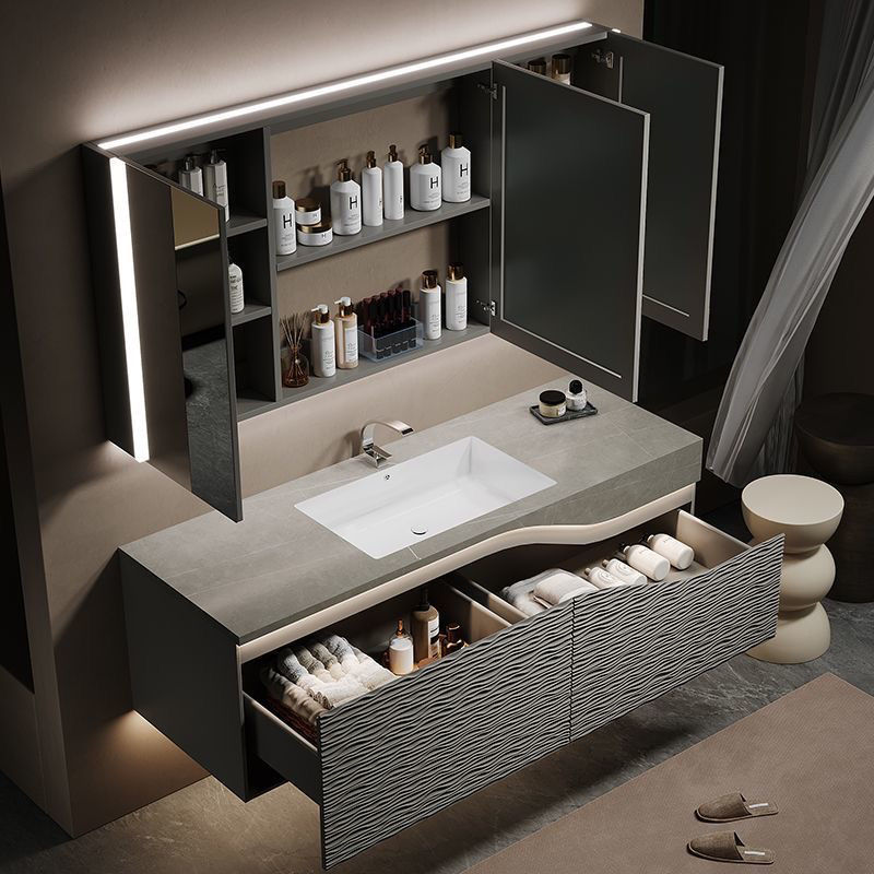 定制橡木烤漆浴室柜组合岩板无缝陶瓷一体盆意式洗手洗脸盆柜实木